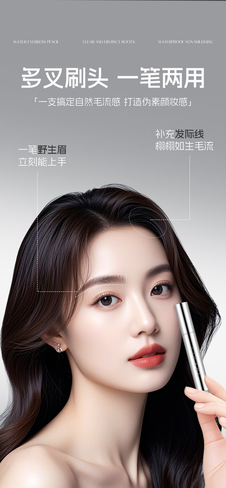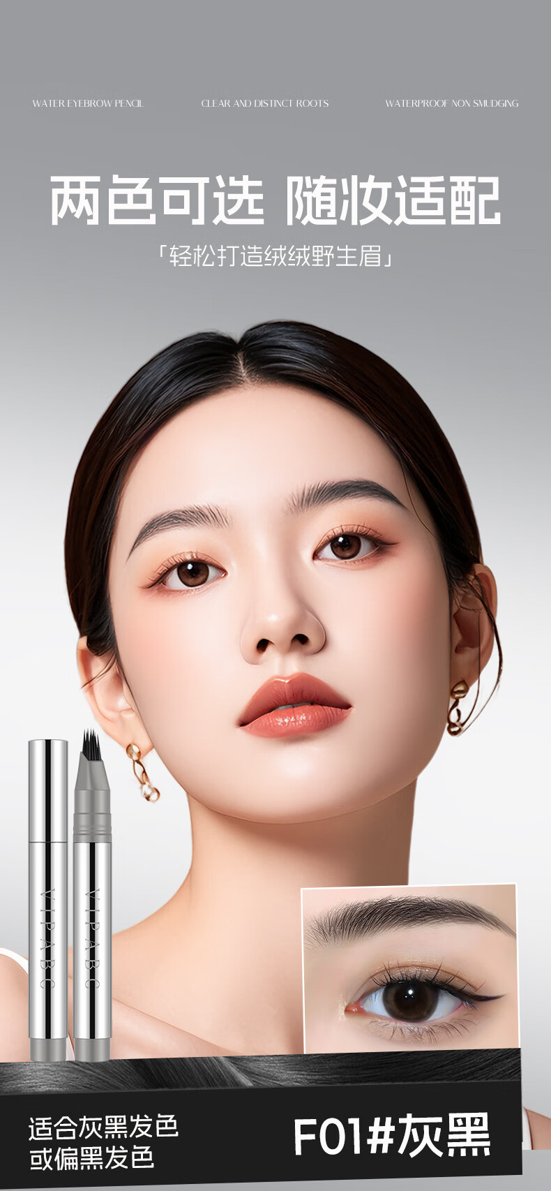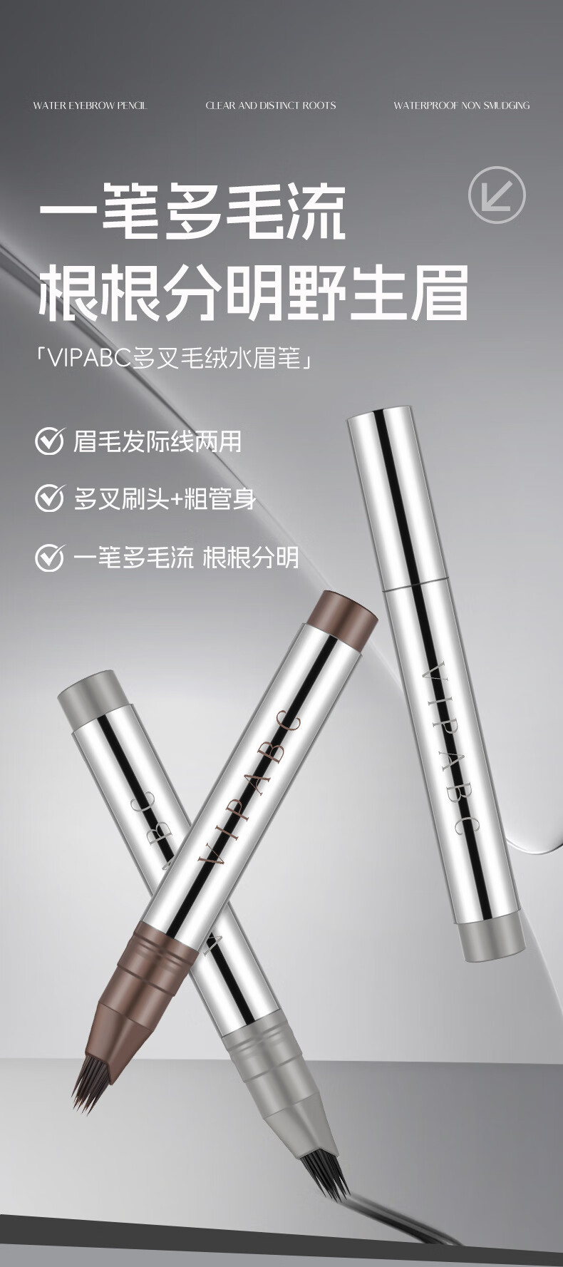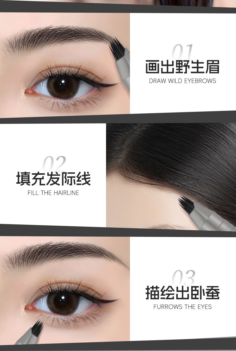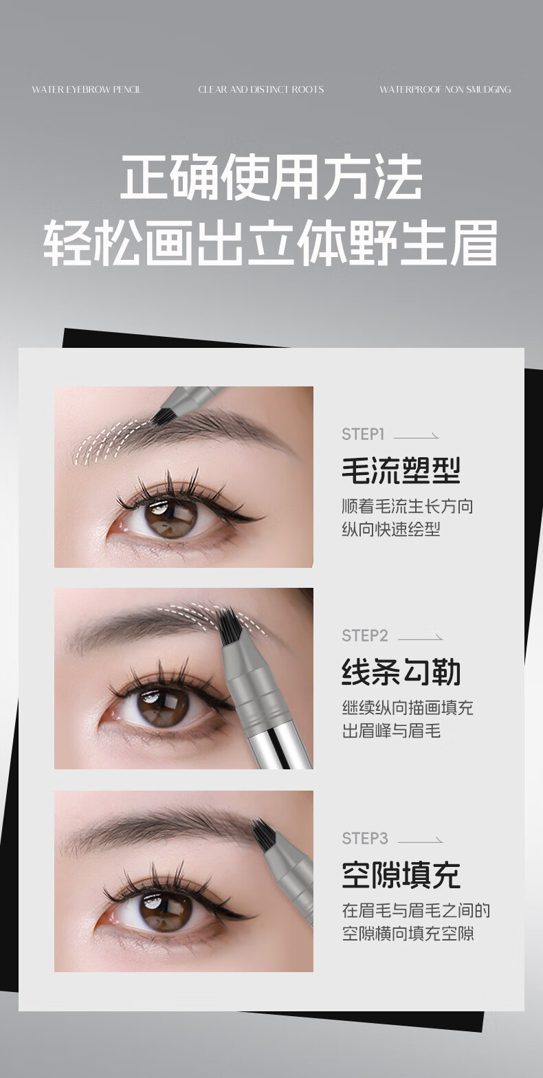 VIPABC Water Eyebrow Pen Quick Water Eyebrow Pen Multi-pronged Brush Head Beauty Modification Wild Eyebrow Roots and Clear Hairline 2-in-1z 1# Gray Black 1 Pack