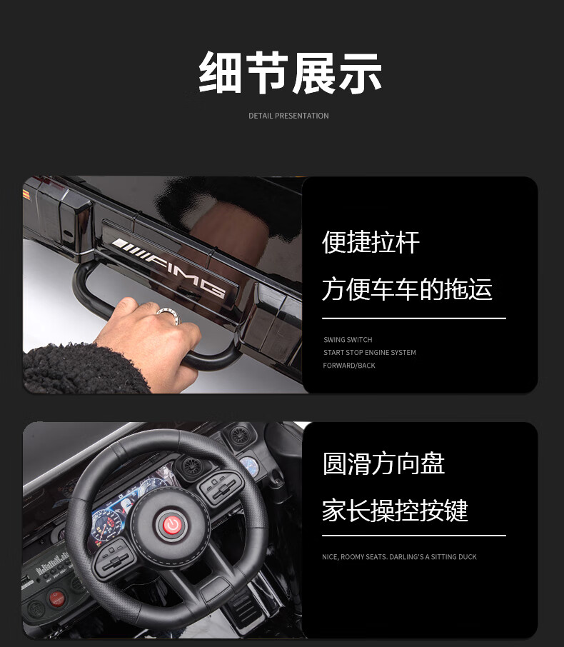 Black rice children's electric car big g four-wheeled with remote control toy car can sit people off-road car men and women baby stroller black/six-wheel drive 12V adult seat + leather seat + portable electric drive