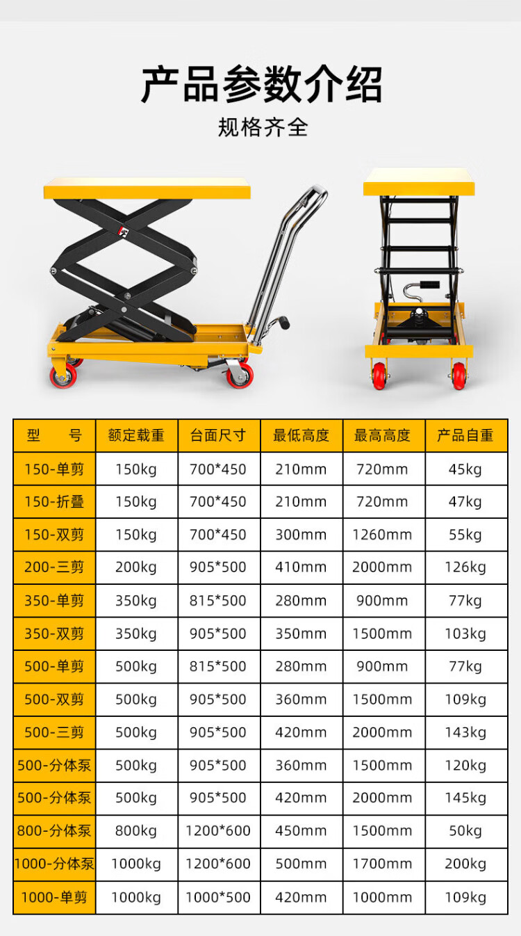 H&G manual hydraulic lifting platform truck mobile scissor electric lift small lift simple trolley 150kg1.26m table 700*450