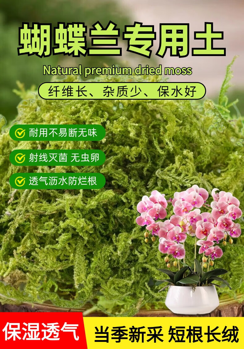 Moss sphagnum moss Phalaenopsis special soil dry moss orchid nutritious soil plant material potted pavement natural planting breathable premium moss 400g plush moss spread 24 liters
