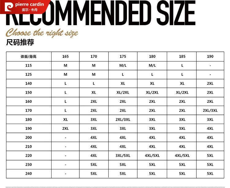 China (cm) 165 / 88-90 170 / 96-98 175 / 108-110 180 / 118-122 185 / 126-130