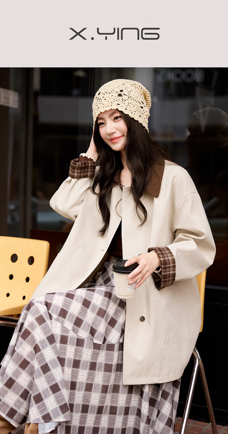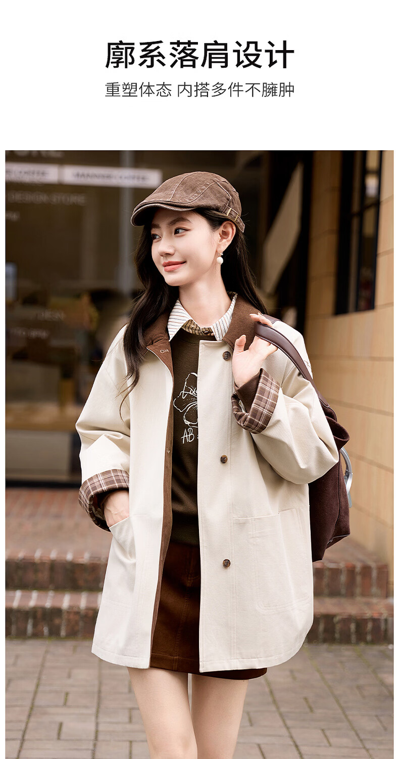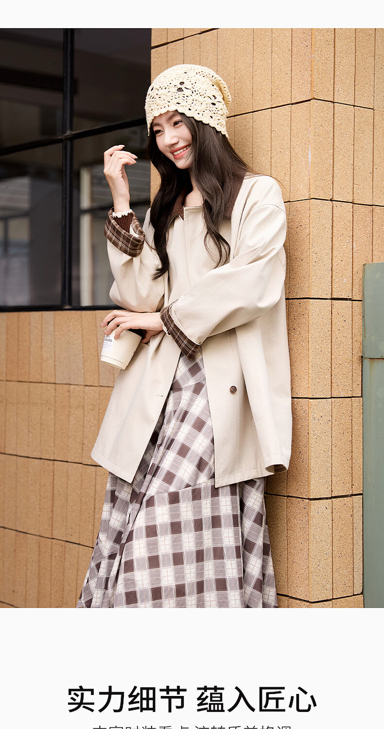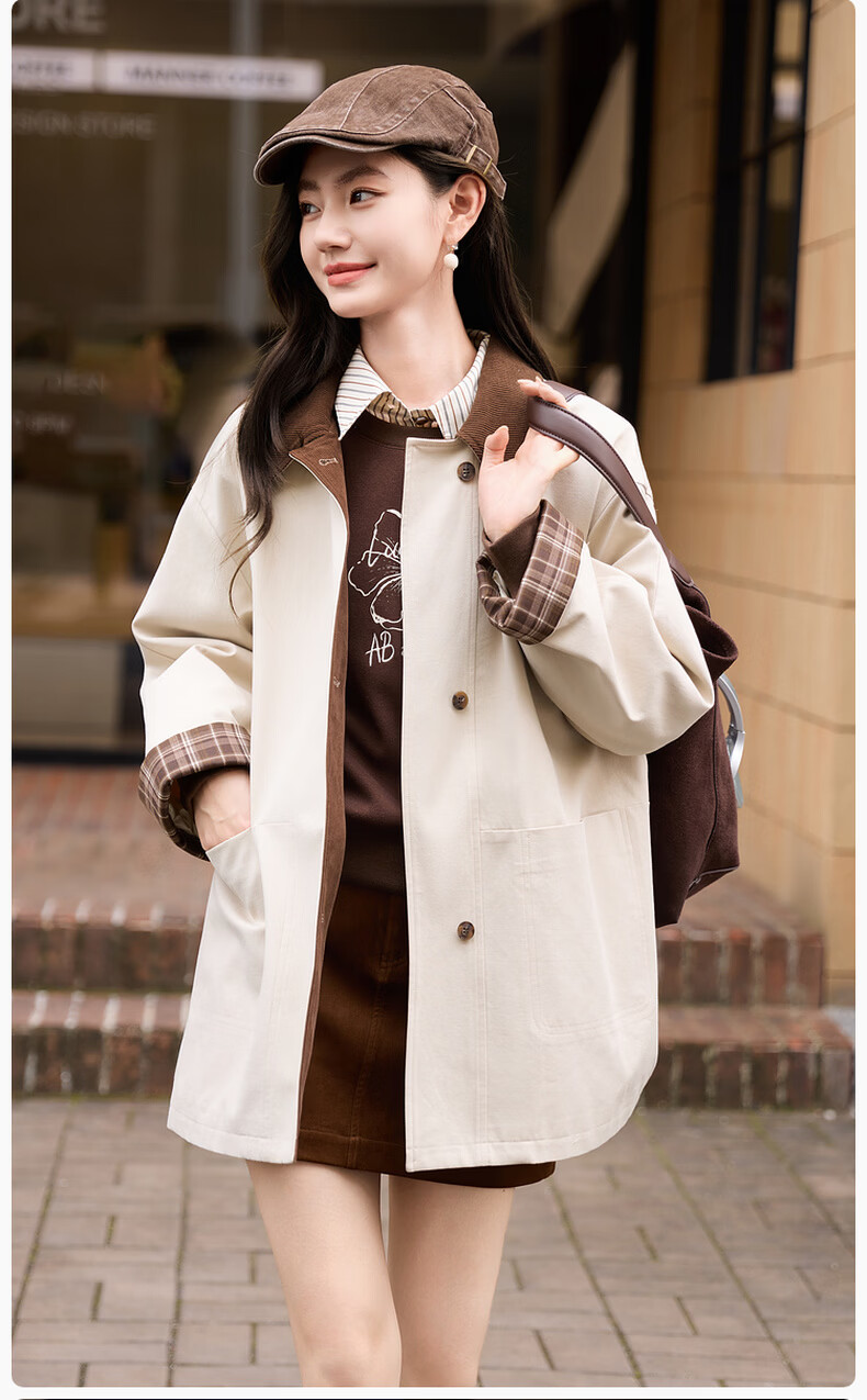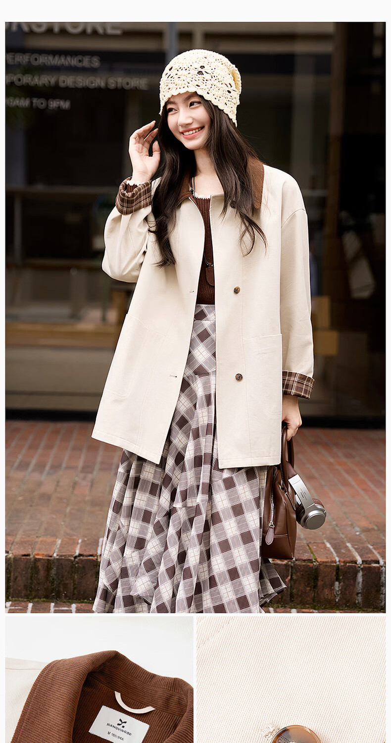 Xiangying Lapel Windbreaker Women's Mid-Length 2026 Spring New Lyocell Contrast Color Splicing Small Casual Jacket Camel S