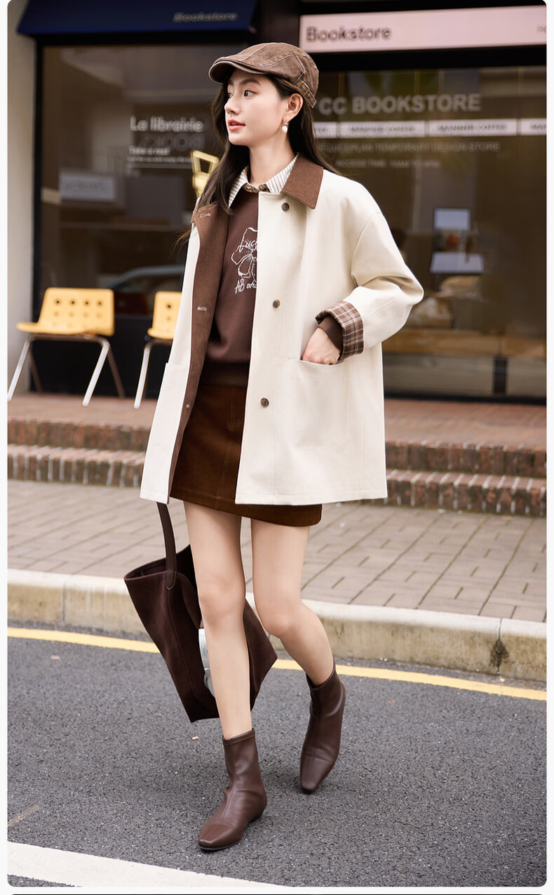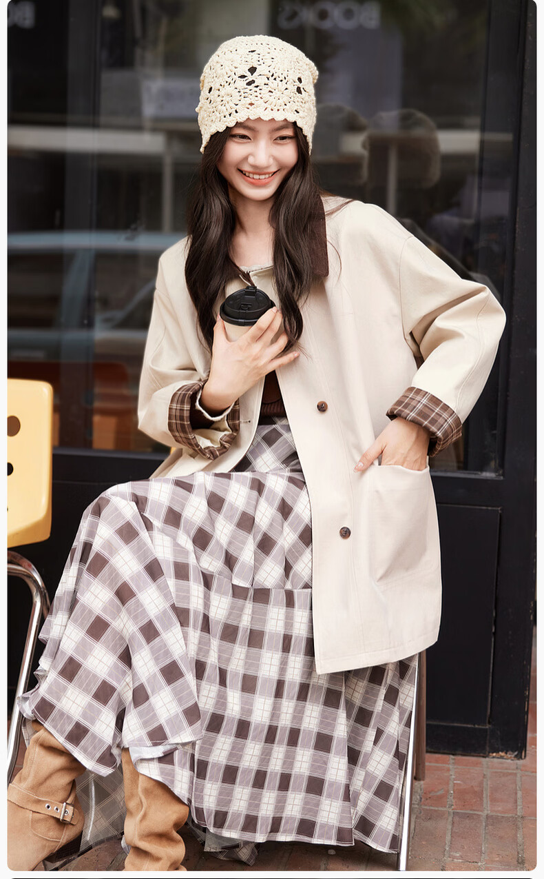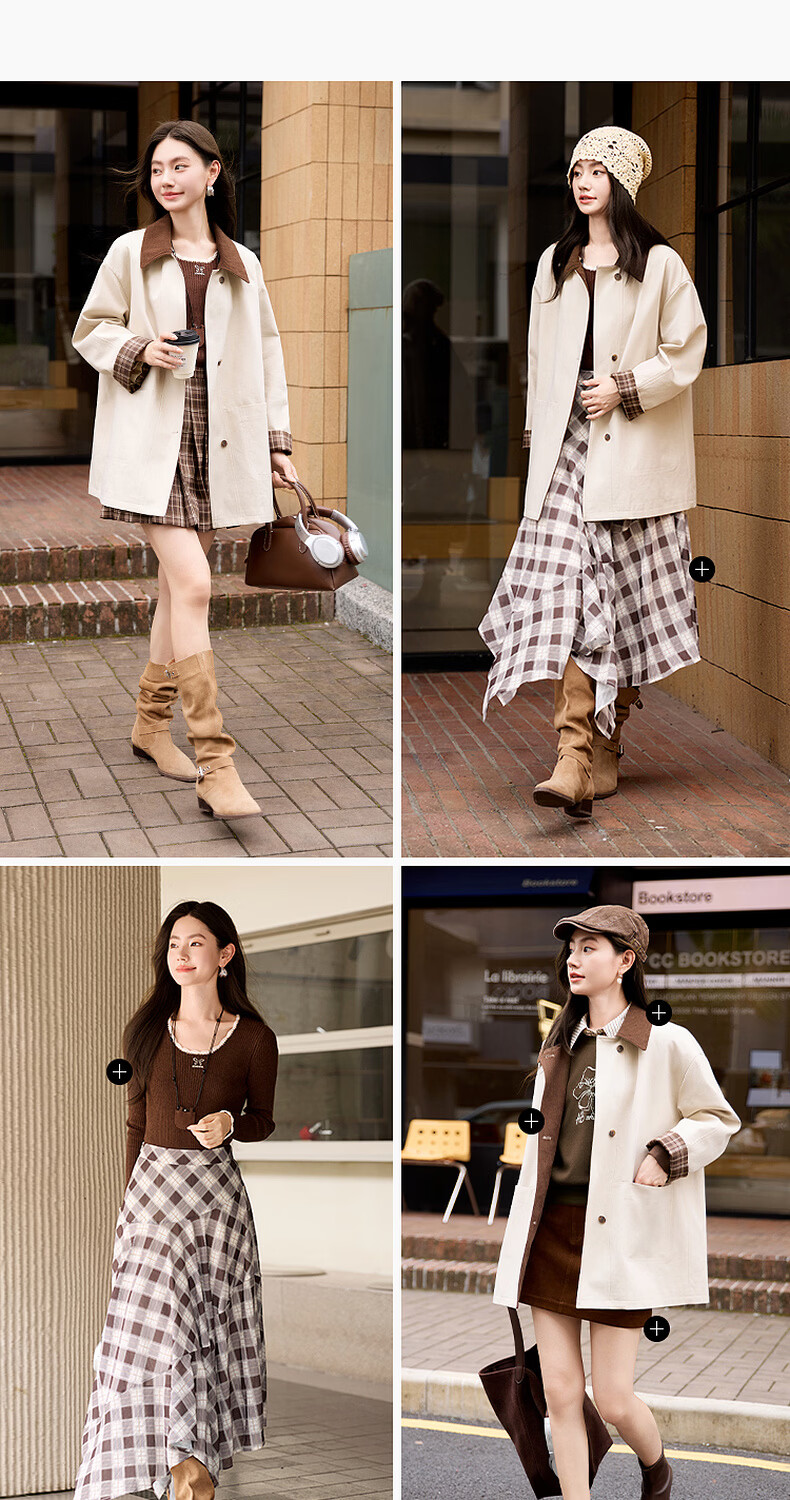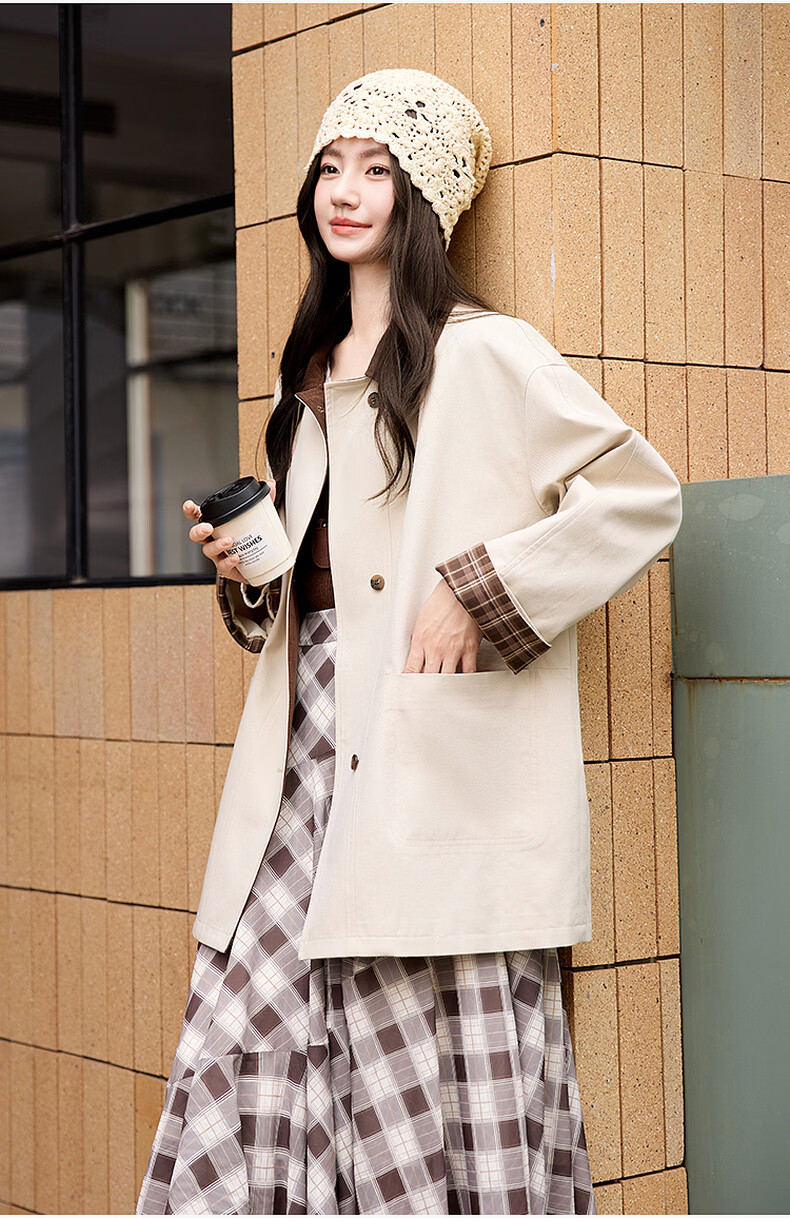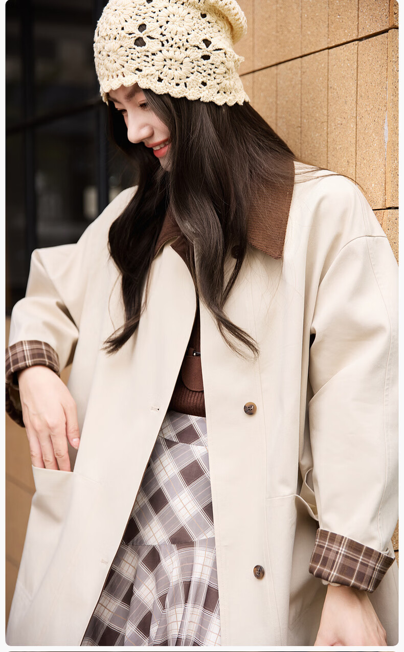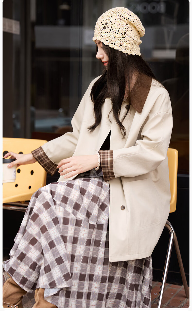 Xiangying Lapel Windbreaker Women's Mid-Length 2026 Spring New Lyocell Contrast Color Splicing Small Casual Jacket Camel S