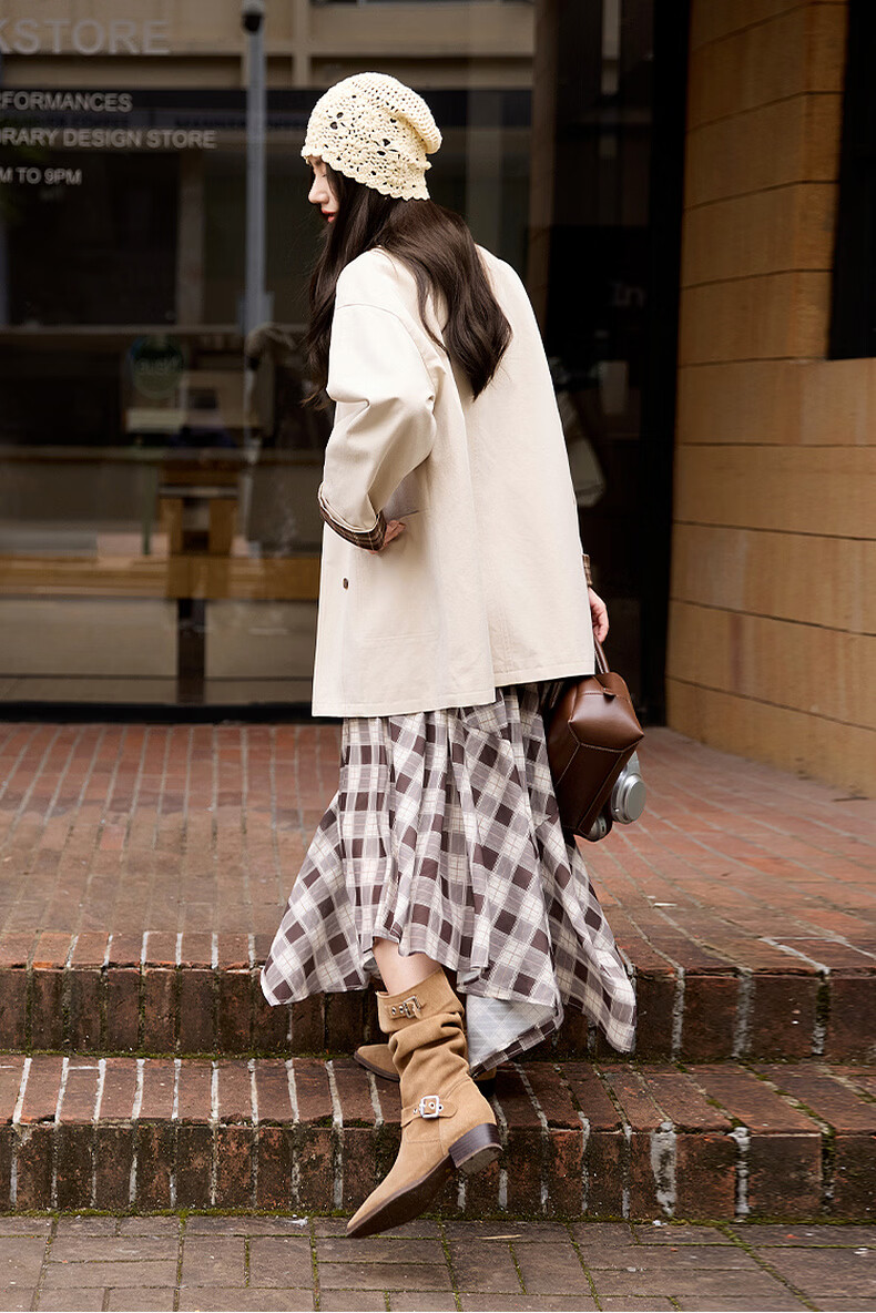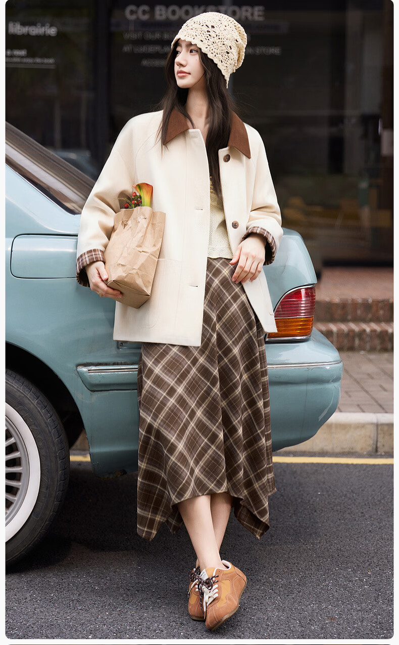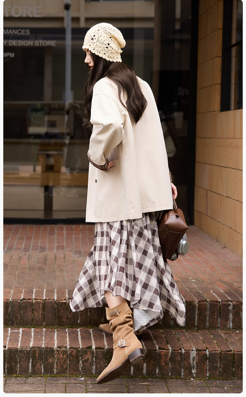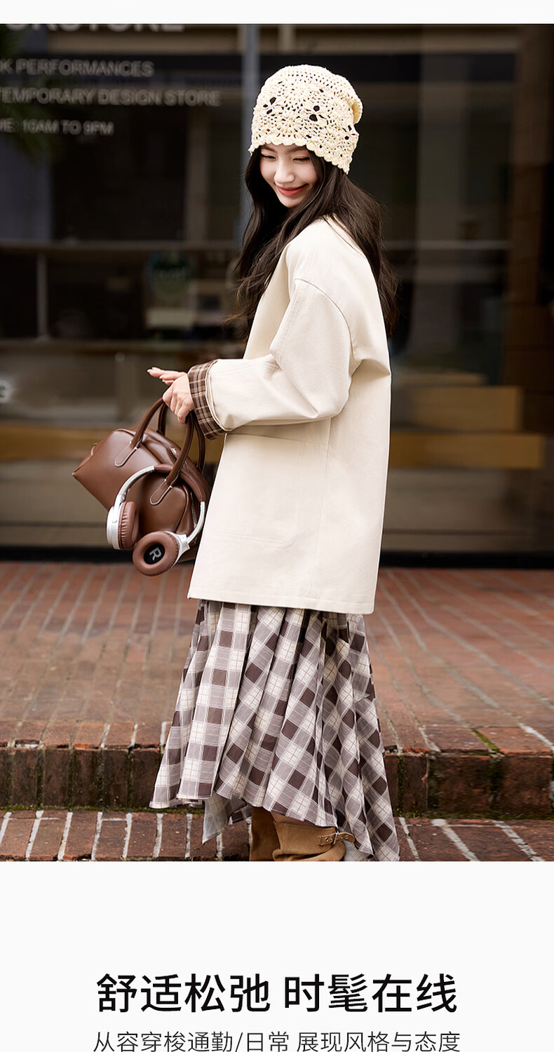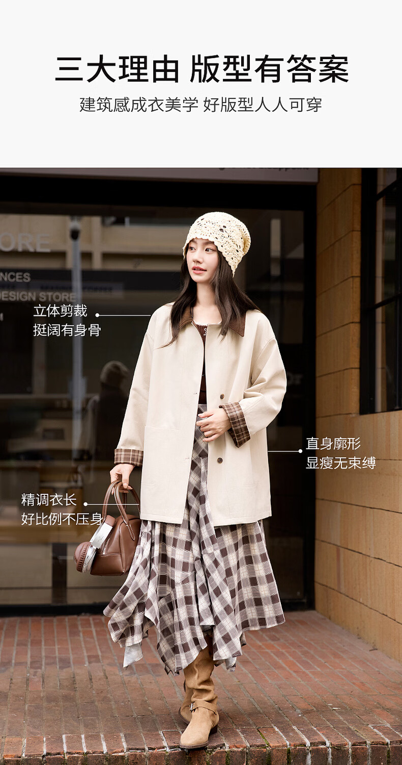 Xiangying Lapel Windbreaker Women's Mid-Length 2026 Spring New Lyocell Contrast Color Splicing Small Casual Jacket Camel S