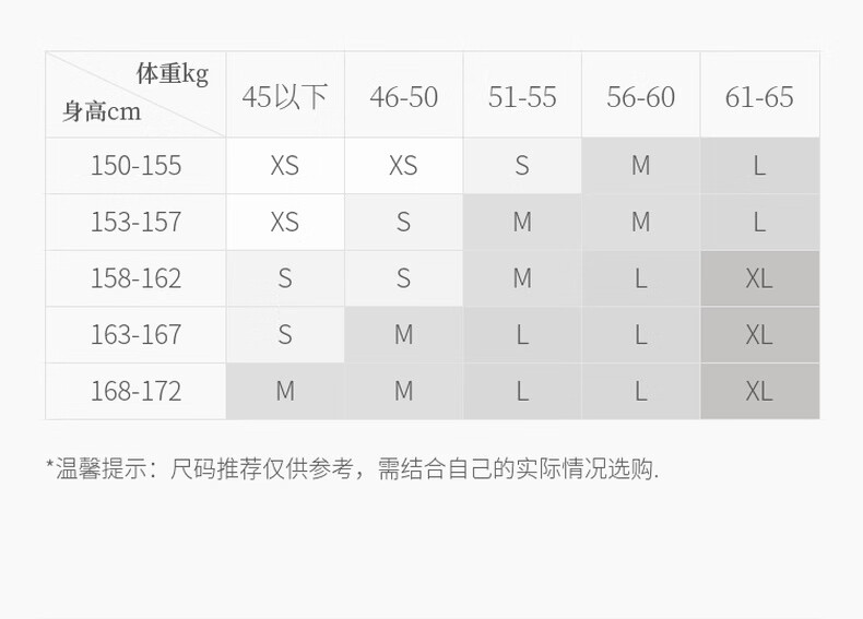 China (cm) 160-165/84-86 165-170 / 88-90 167-172 / 92-96 168-173 / 98-102 170-176 / 106-110