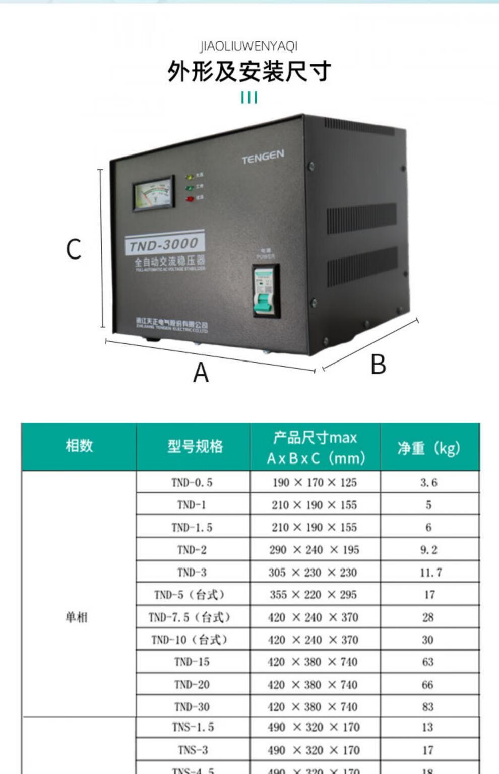Tianzheng voltage regulator 220v fully automatic single-phase high-power single-phase voltage regulating AC computer TV power supply TND 500W
