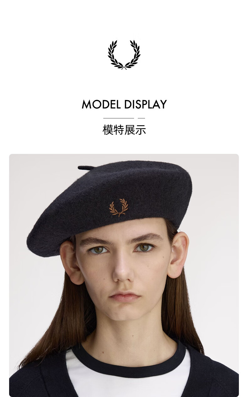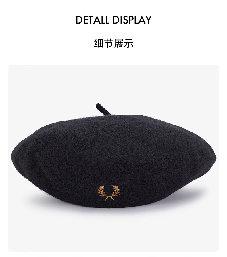Fred Perry Men's Woolen Painter Hat 2025 Autumn New British Retro Literary Pumpkin Hat Beret BKX/Black One Size