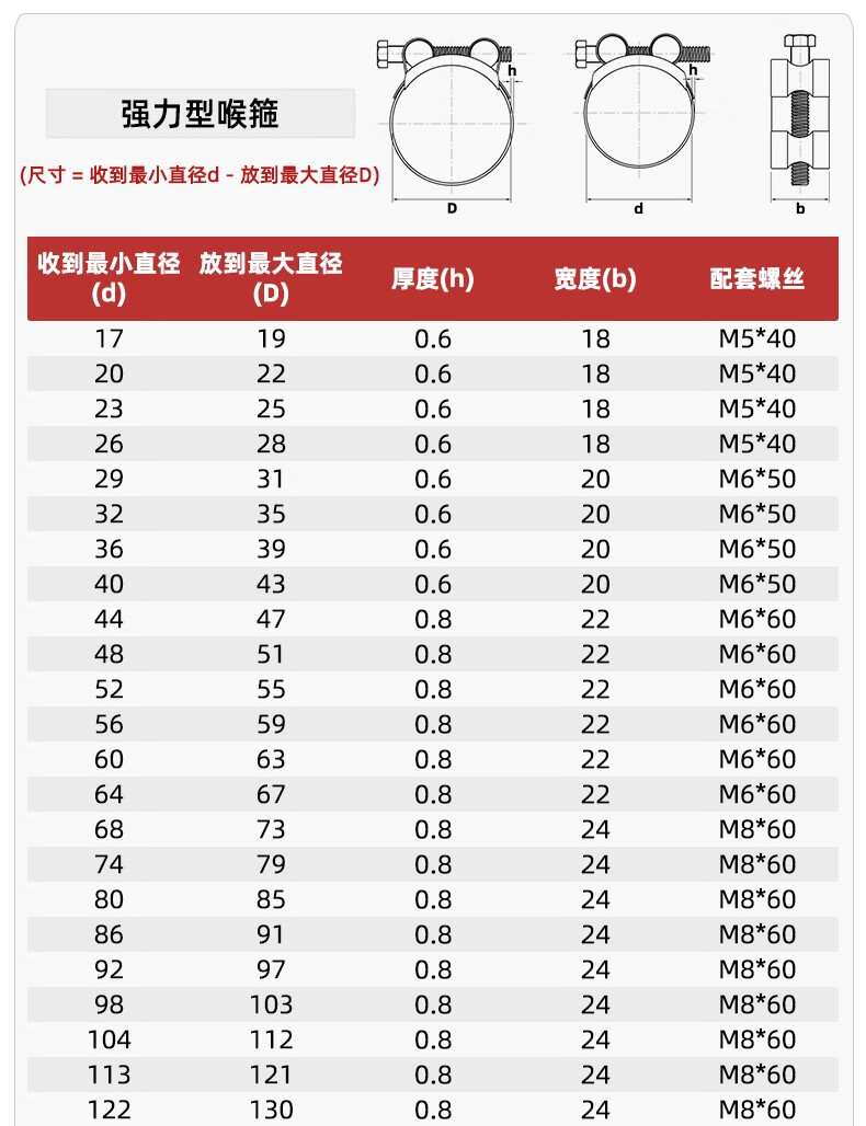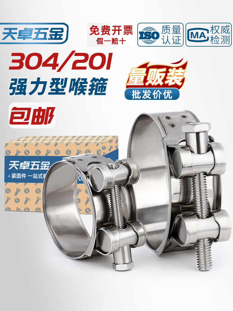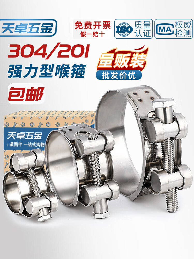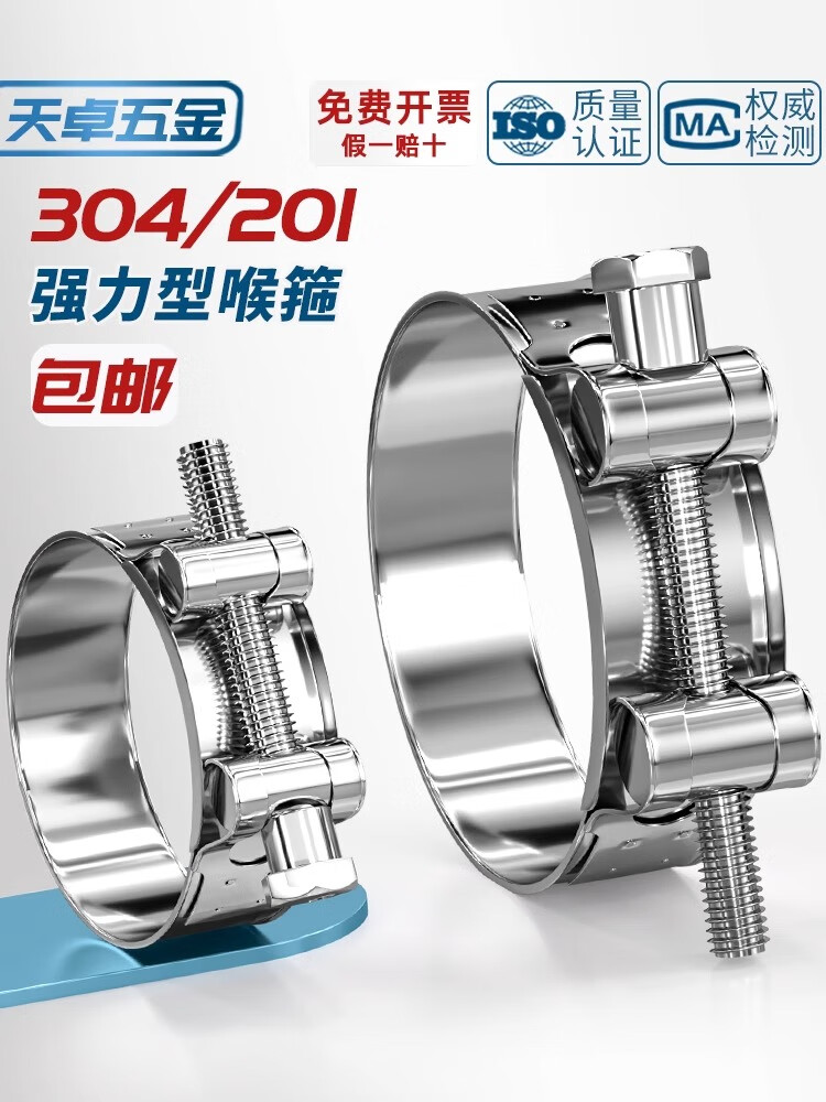 Tianzhuo Hardware 304/201 stainless steel powerful hose hoop European style single-head hoop thickened pipe hoop widened pipe clamp 74-79mm 5 pieces color zinc 3 inches