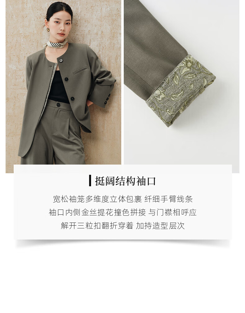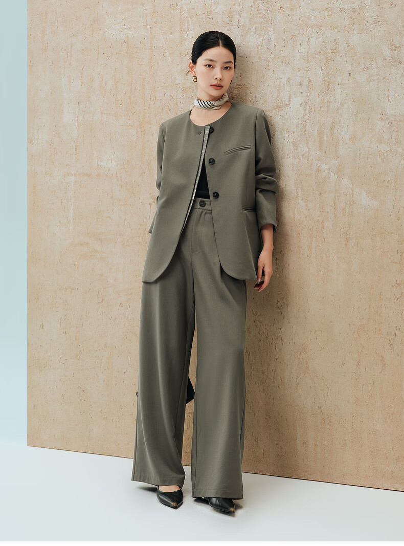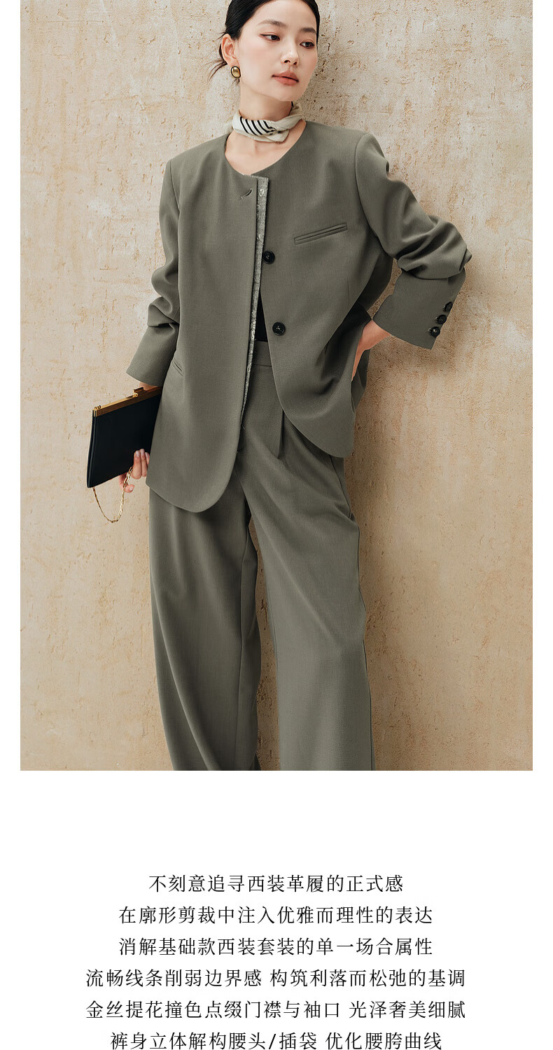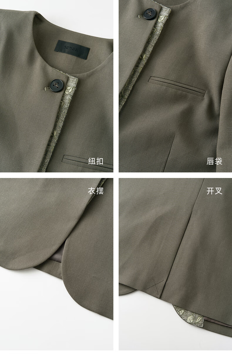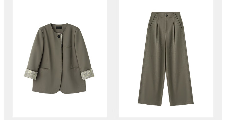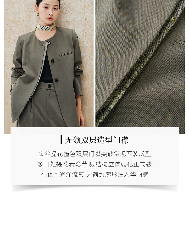 SUSHE Gold Jacquard Contrast Color Collarless Suit Jacket High Waist Cut Drape Suit Comet Green - Pants M