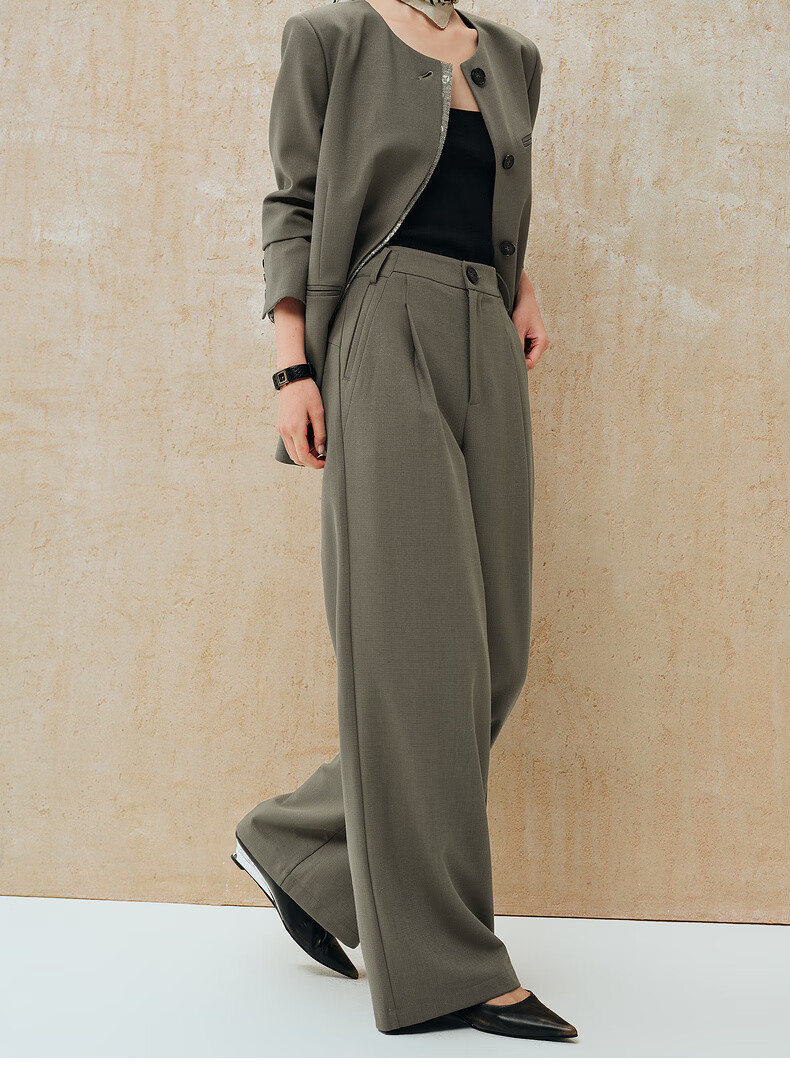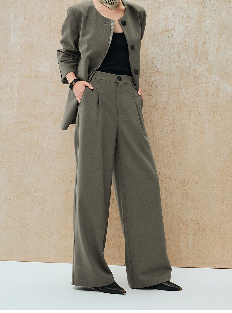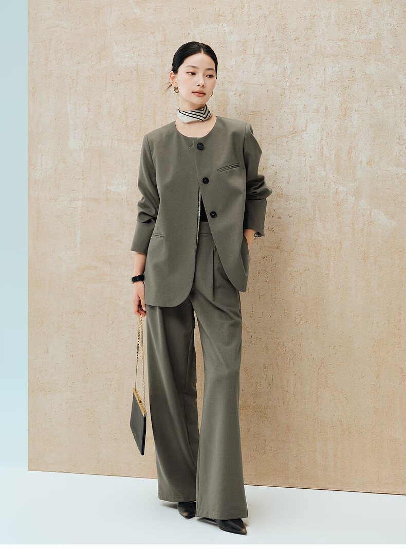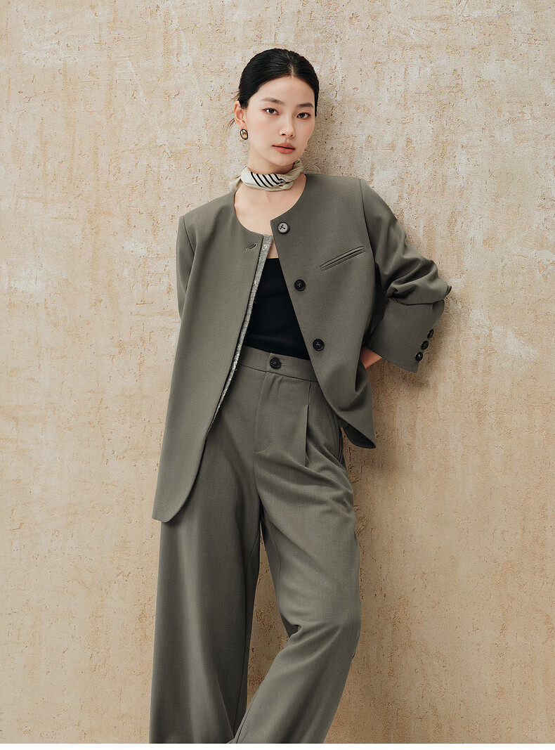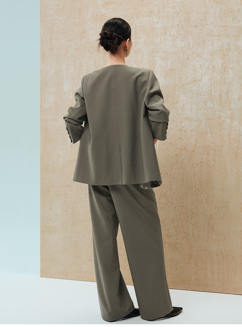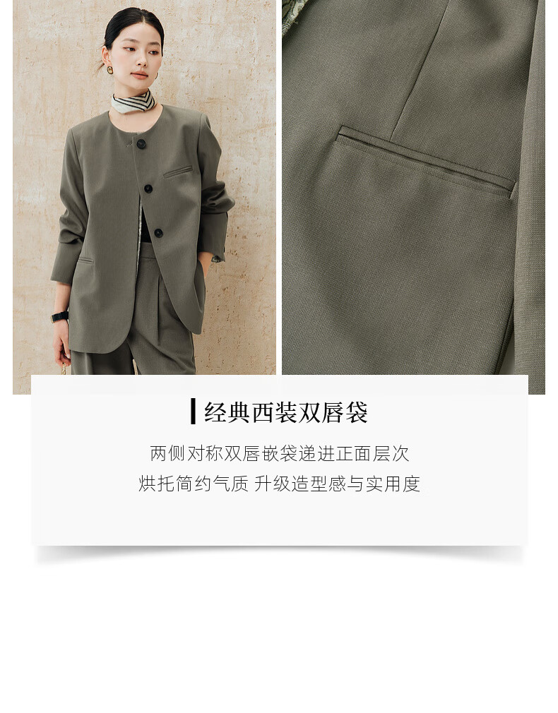 SUSHE Gold Jacquard Contrast Color Collarless Suit Jacket High Waist Cut Drape Suit Comet Green - Pants M