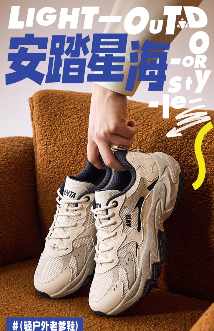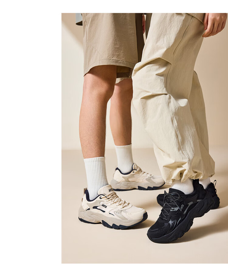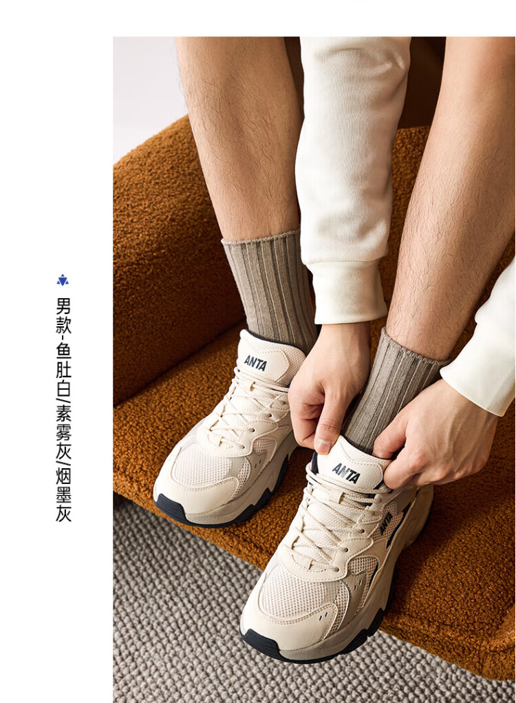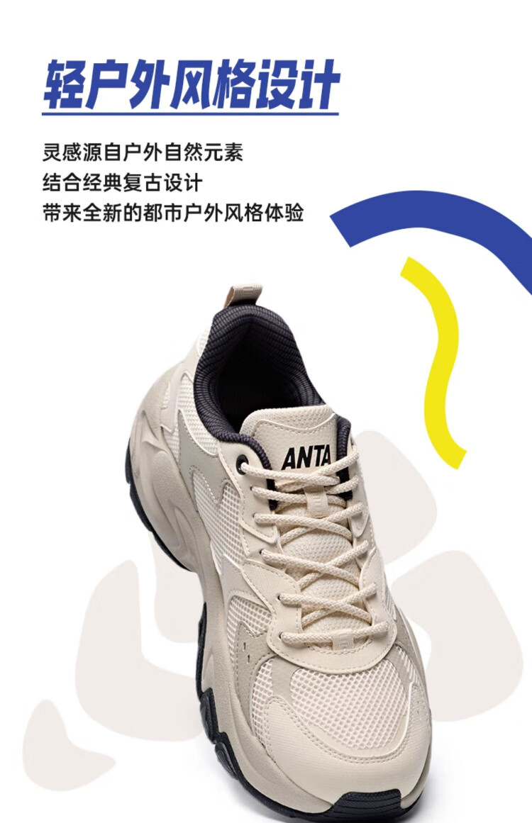 ANTA Xinghai 2.0 casual shoes men's shoes 2025 autumn new trendy mesh dad shoes student running sports shoes fish belly white/plain matte gray/smoke gray leather 42