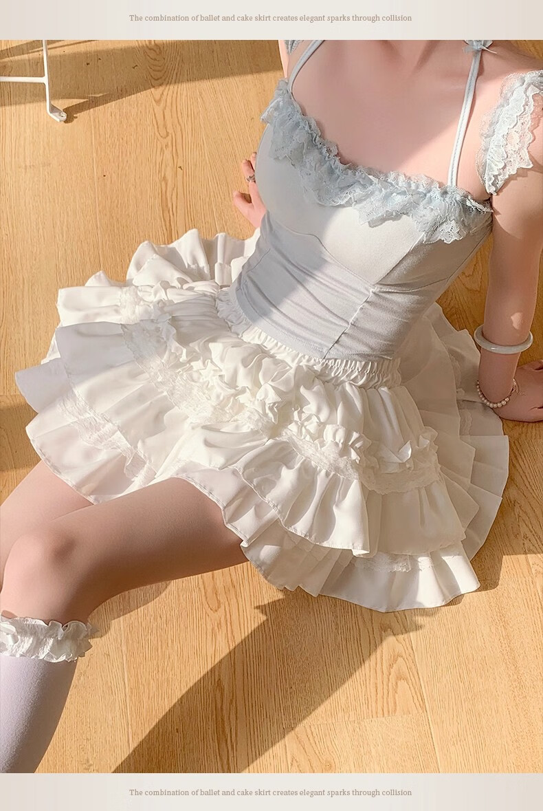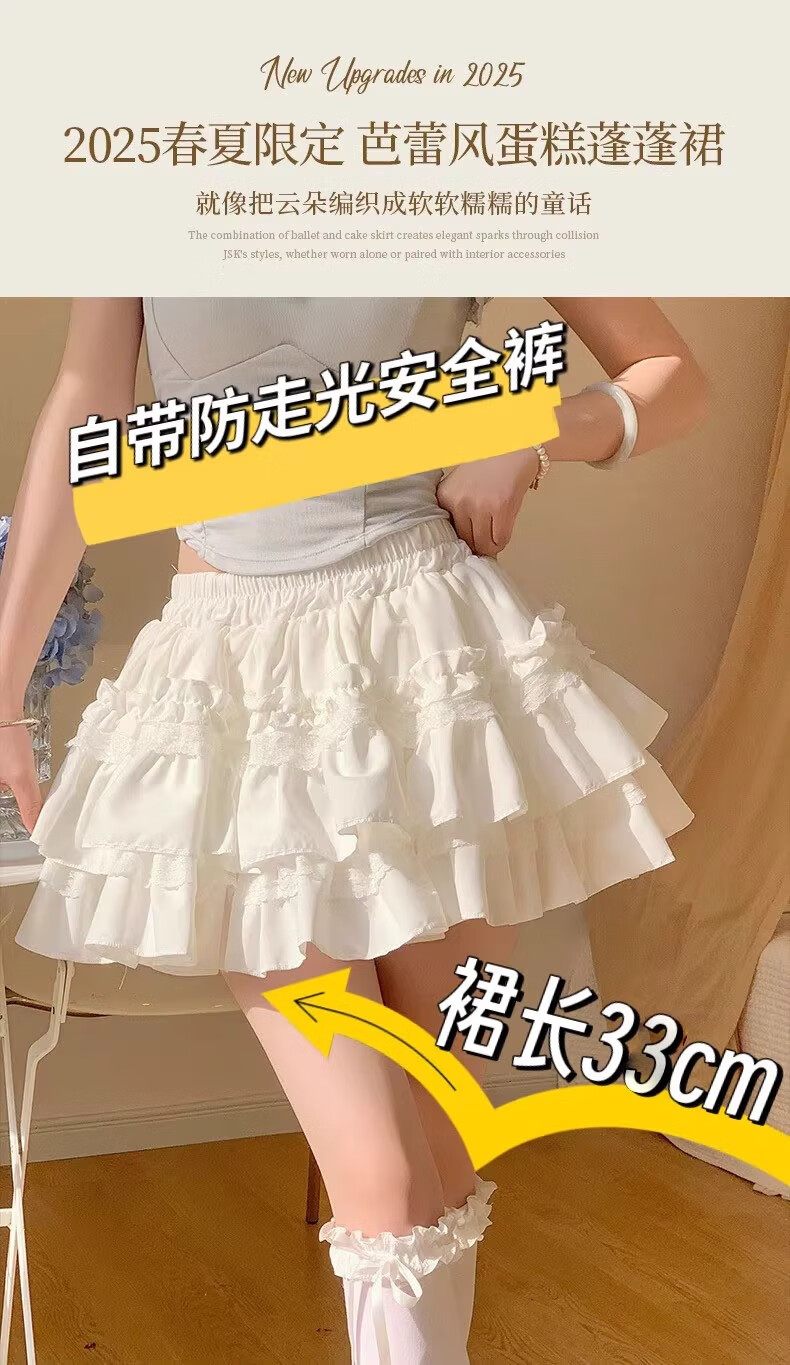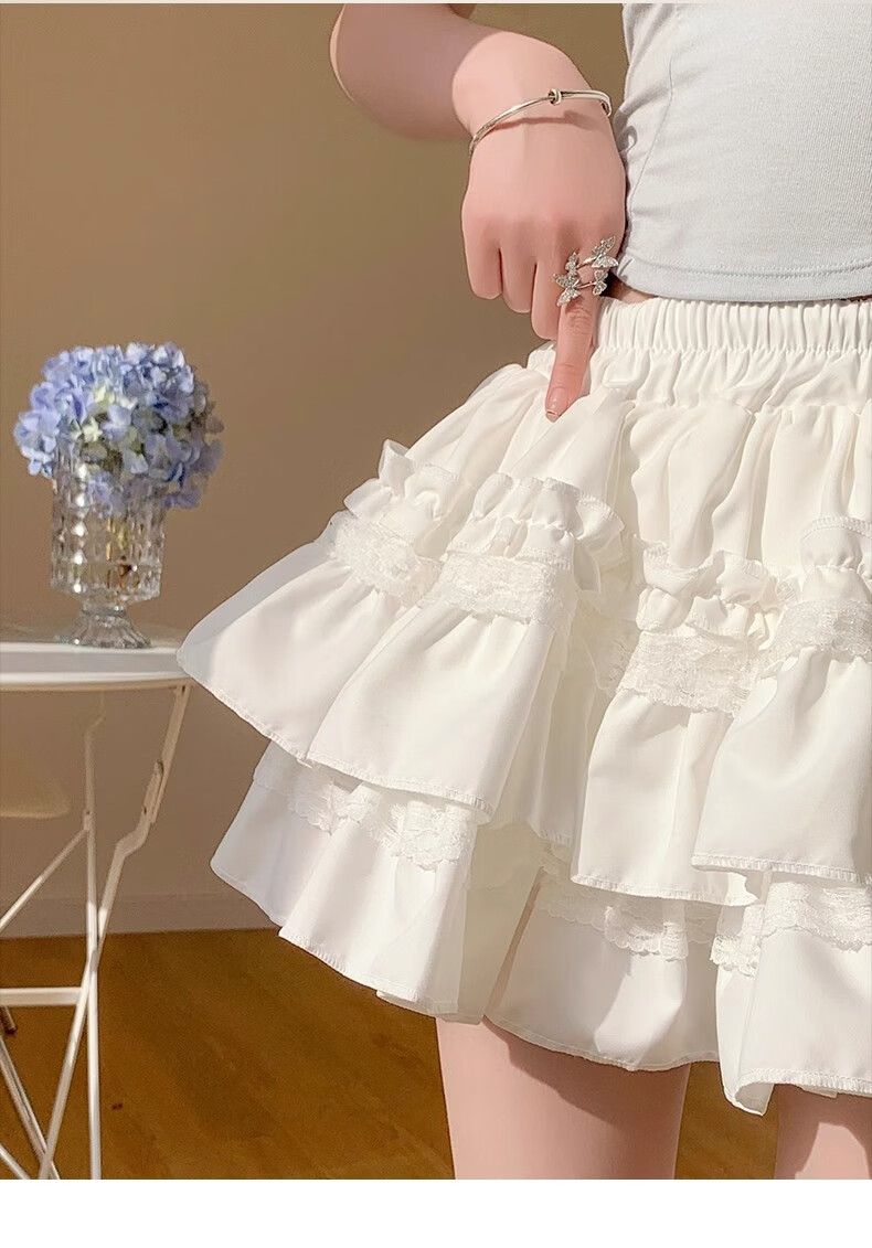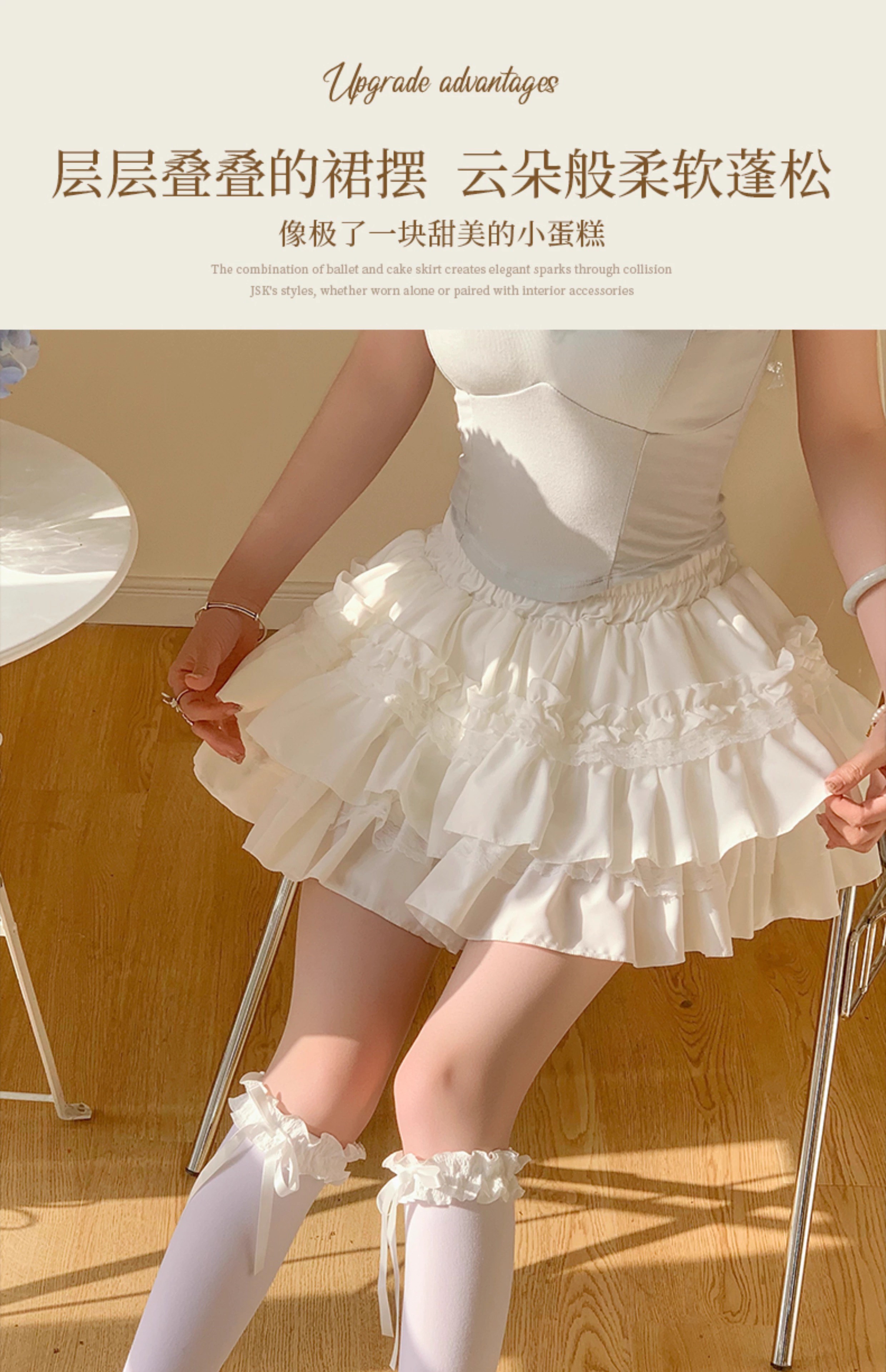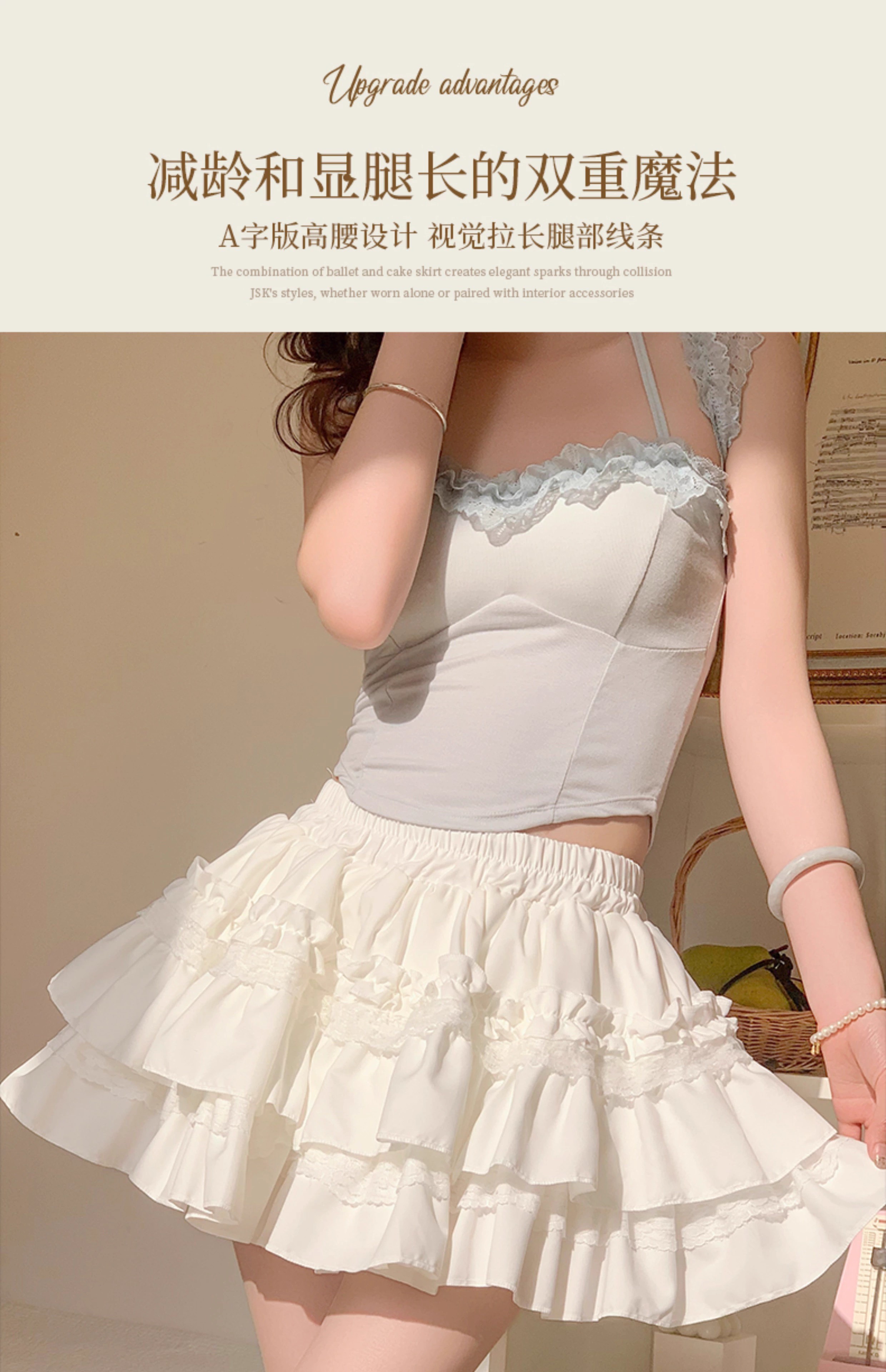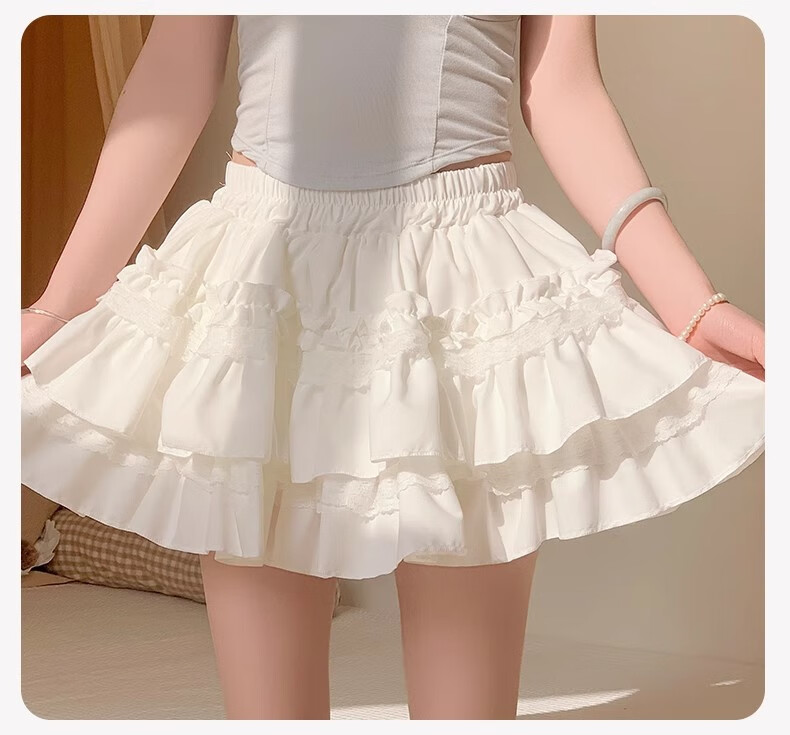 JIOESC white lace cake tutu skirt for women sweet skirt A-line skirt high waist slim anti-exposure ballet style skirt white M 95-110Jin Jin equals 0.5 kg