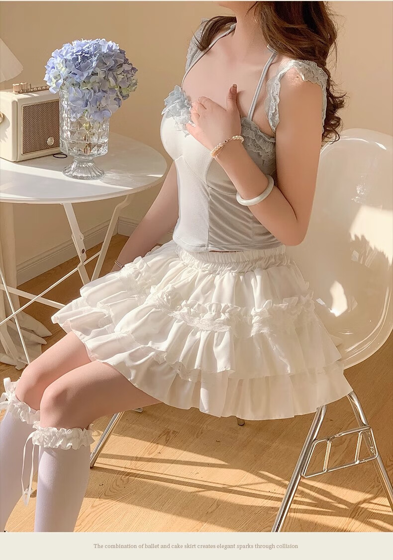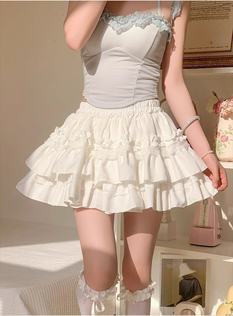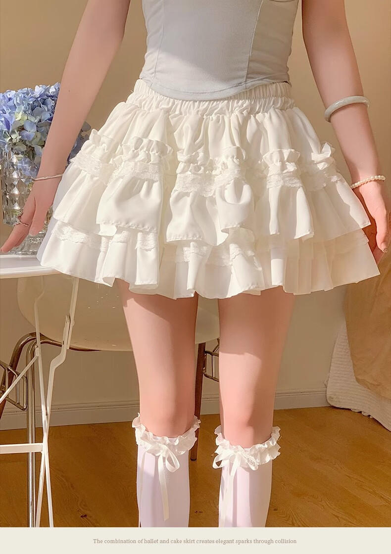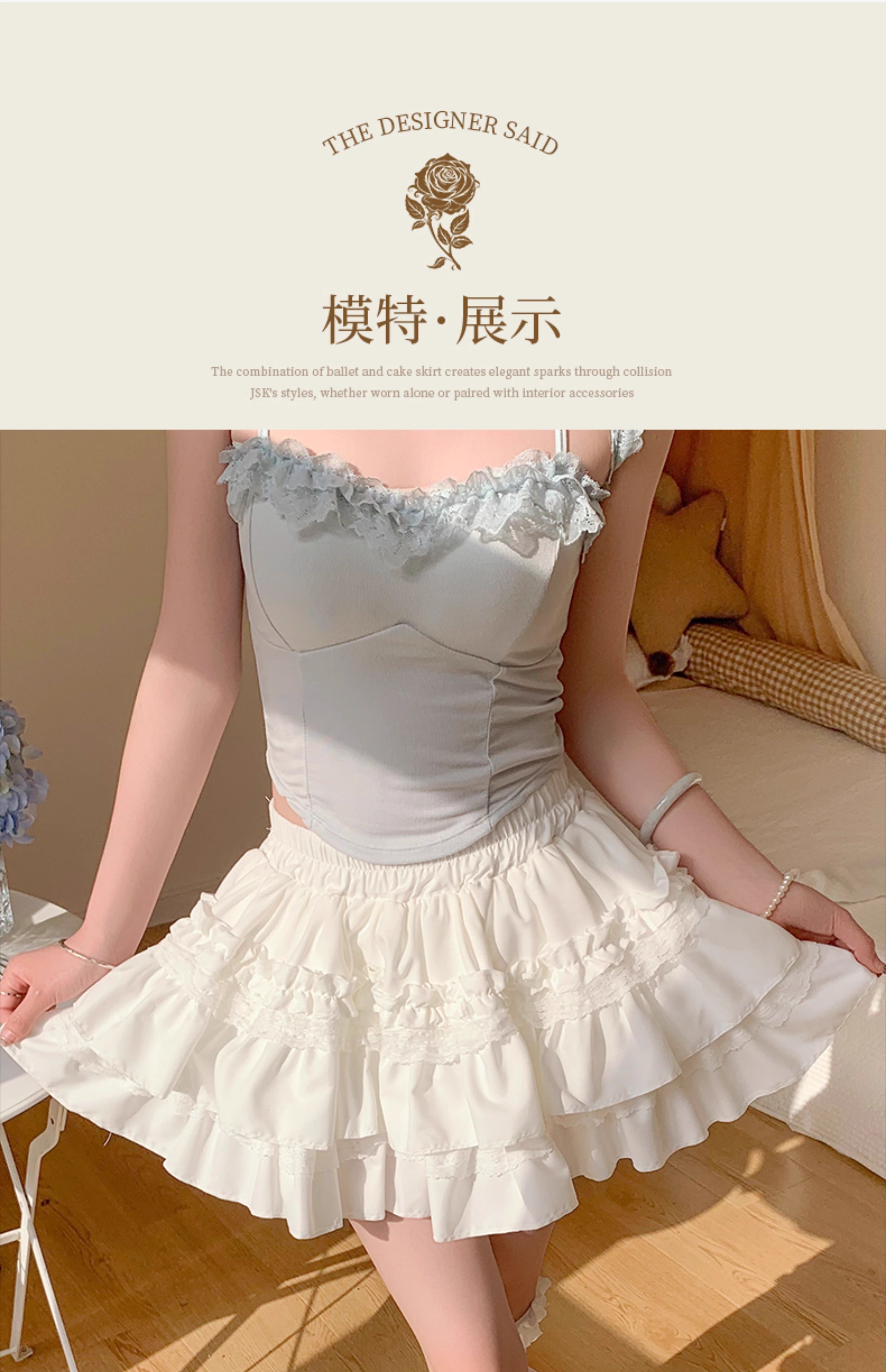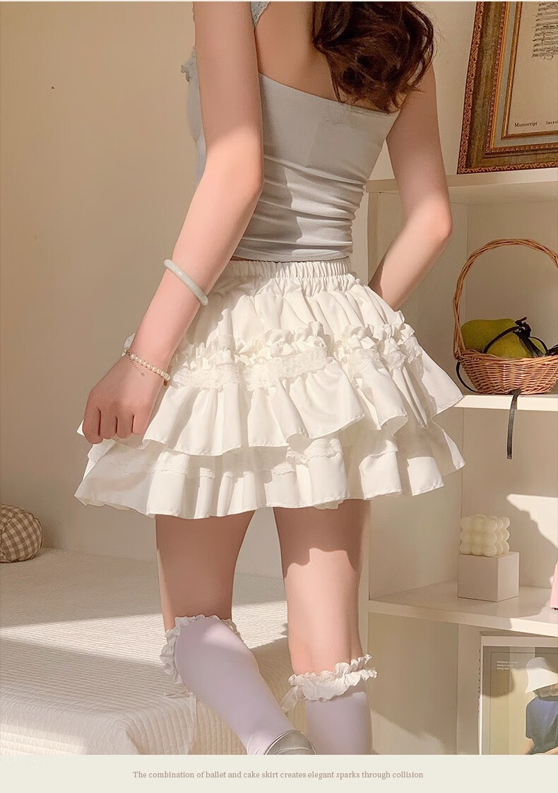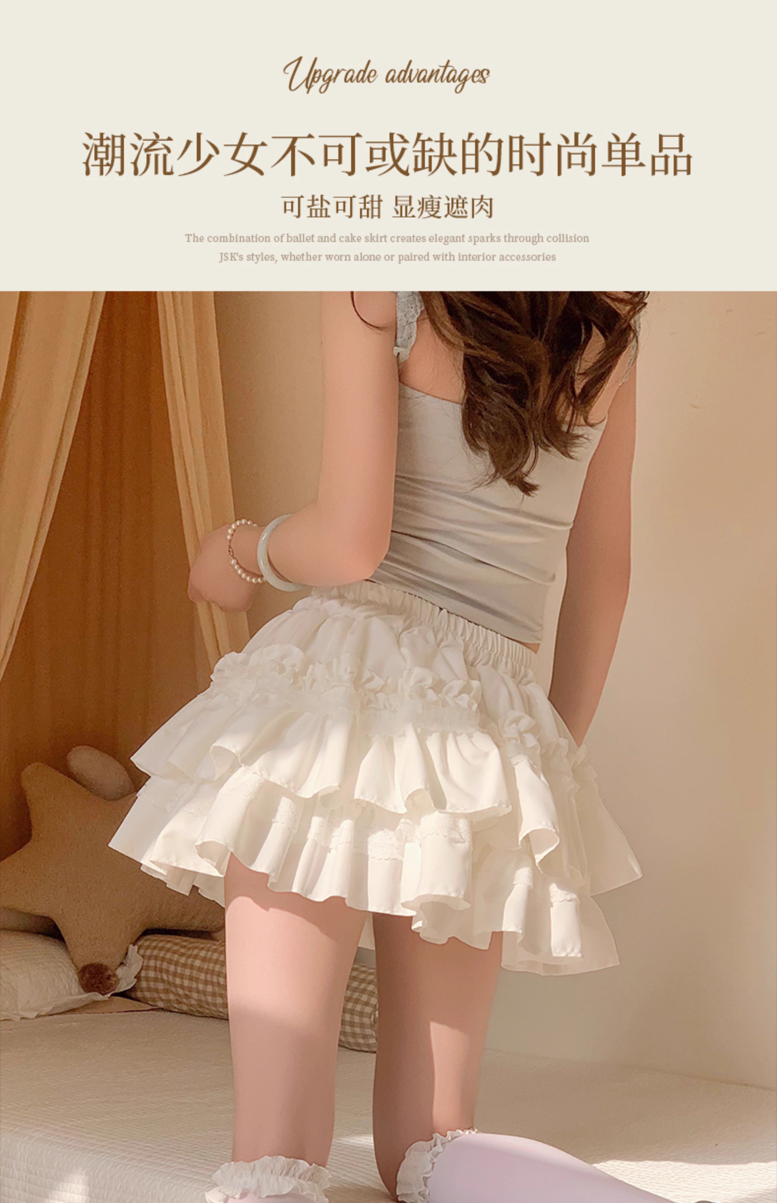 JIOESC white lace cake tutu skirt for women sweet skirt A-line skirt high waist slim anti-exposure ballet style skirt white M 95-110Jin Jin equals 0.5 kg