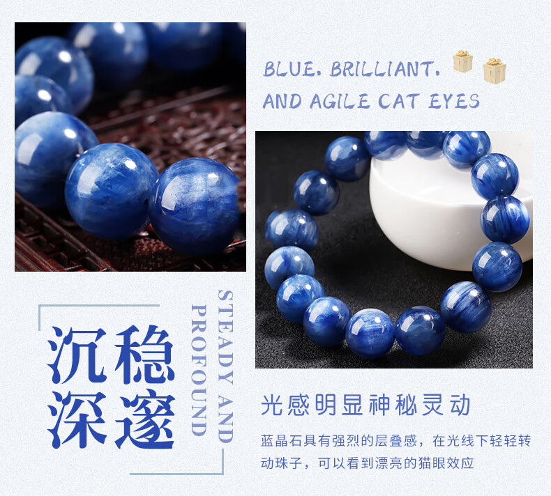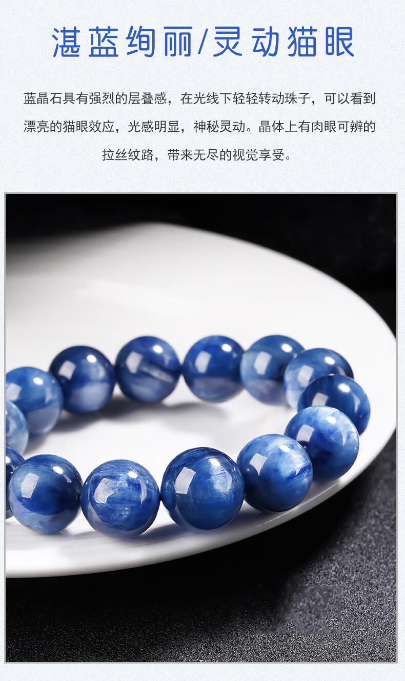 Layun Feiyin collectible old mine natural cat's eye kyanite bracelet for men and women cat's eye bracelet high-end blue velvet crystal collectible cat's eye kyanite 11mm