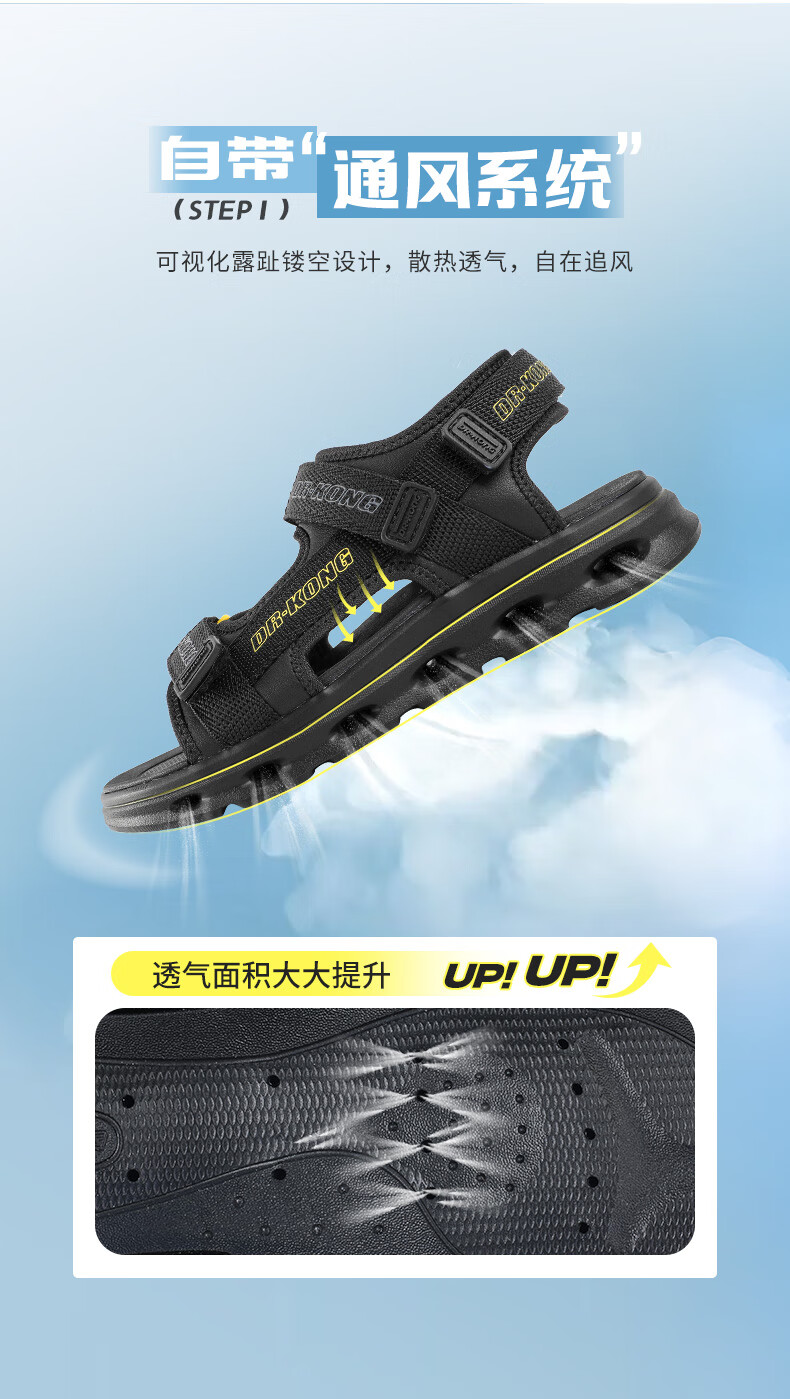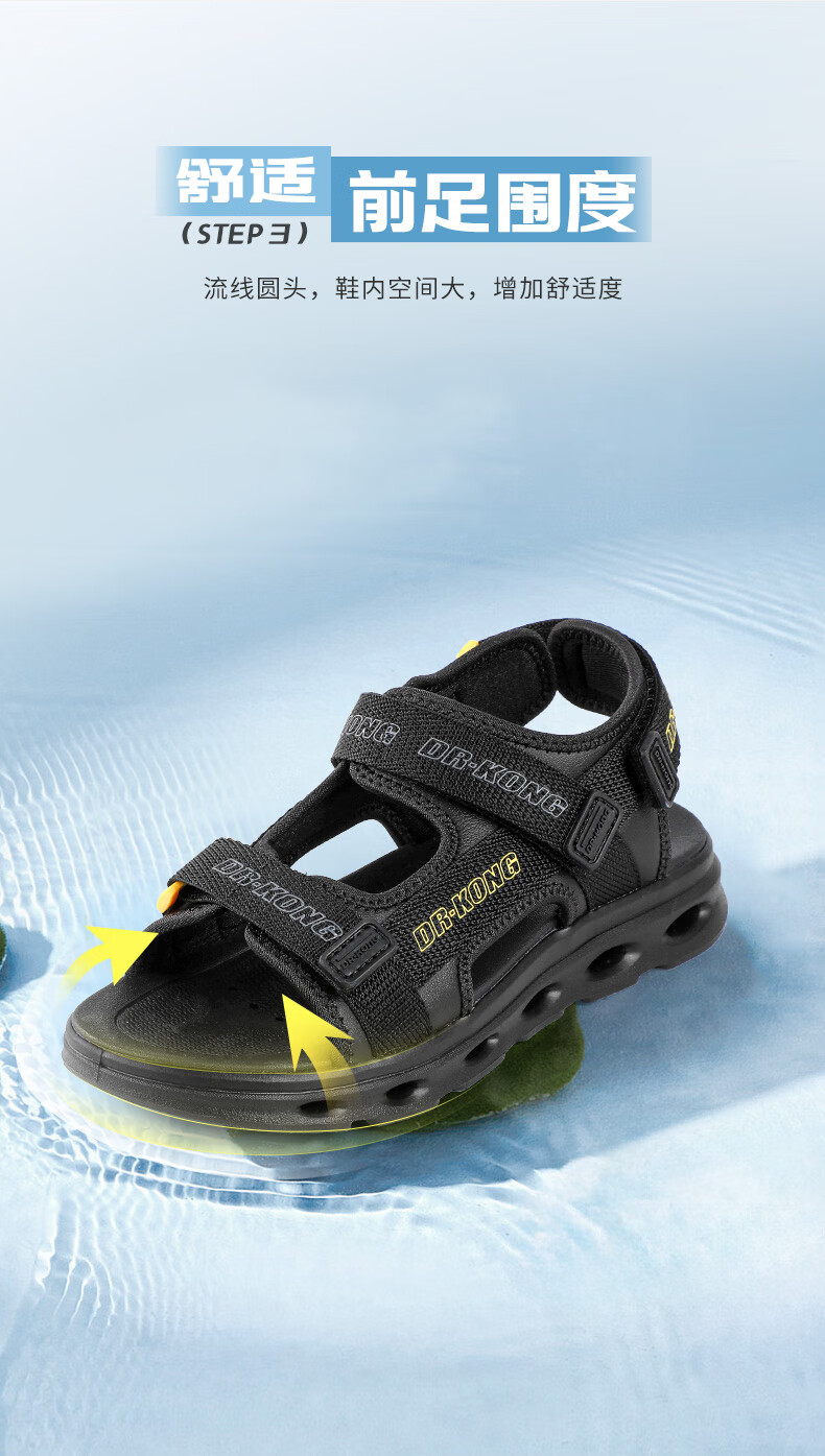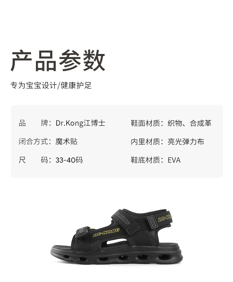 Dr. Jiang's Summer Boys' Simple Solid Color Children's Sandals Simple Sports Style Big Children's Sandals Black 33 Foot Length Approximately 20.9-21.4