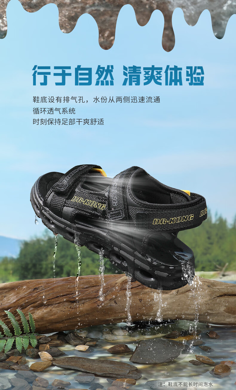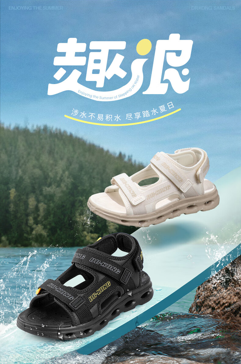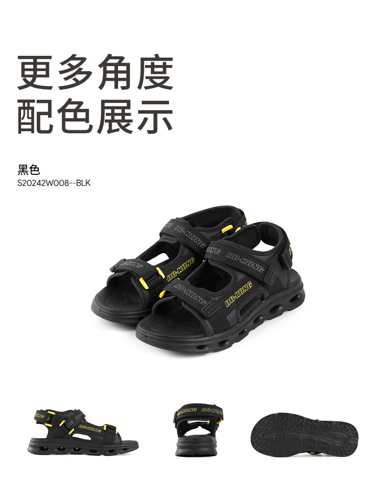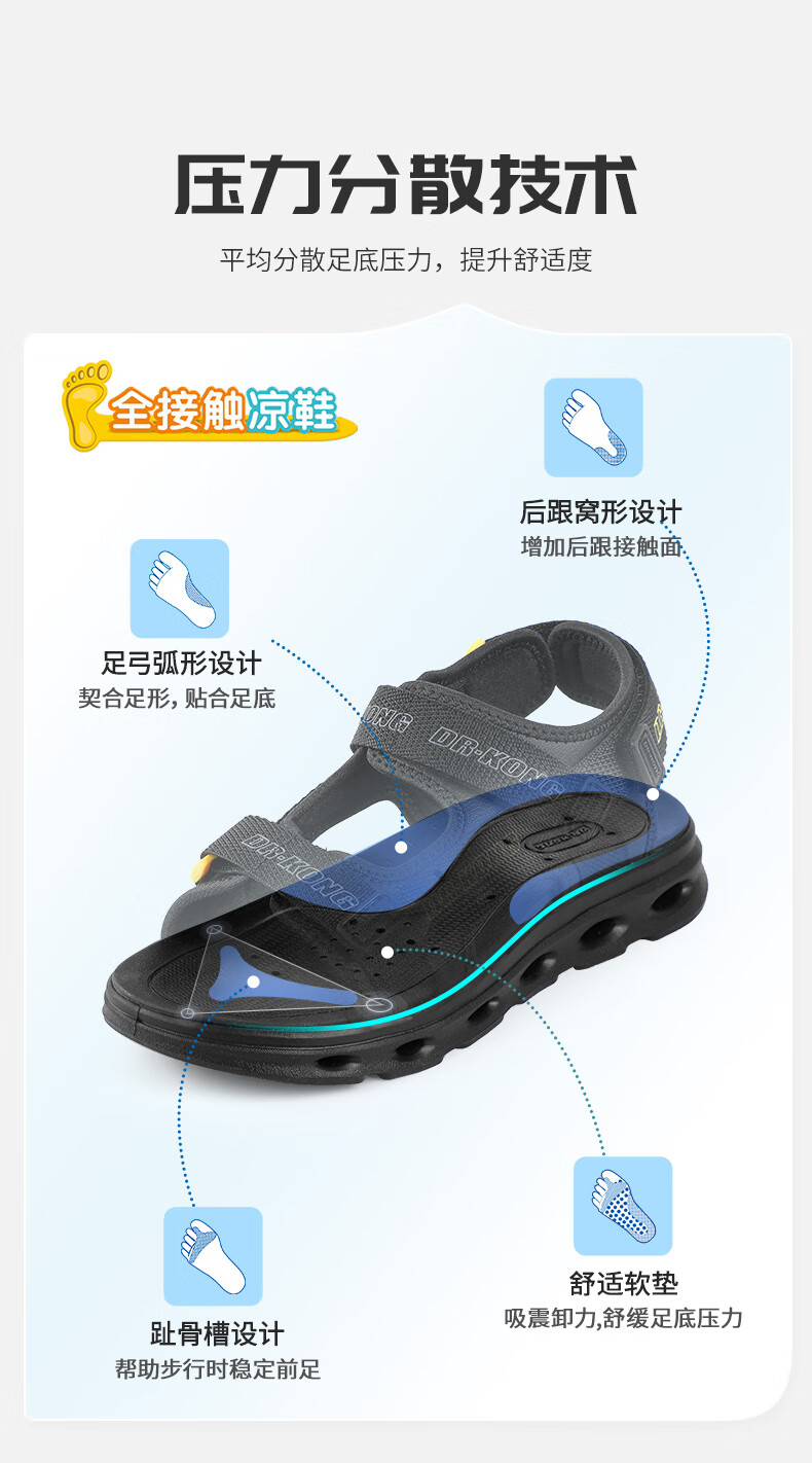 Dr. Jiang's Summer Boys' Simple Solid Color Children's Sandals Simple Sports Style Big Children's Sandals Black 33 Foot Length Approximately 20.9-21.4