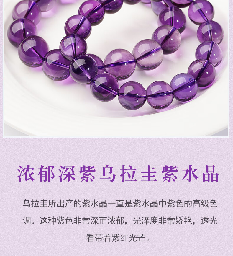 La Yun Feiyin Collection Natural Amethyst Bracelet Uruguay Amethyst Bracelet for Men and Women Bolivian Brazilian Crystal Body Purification Uruguay Amethyst 16mm