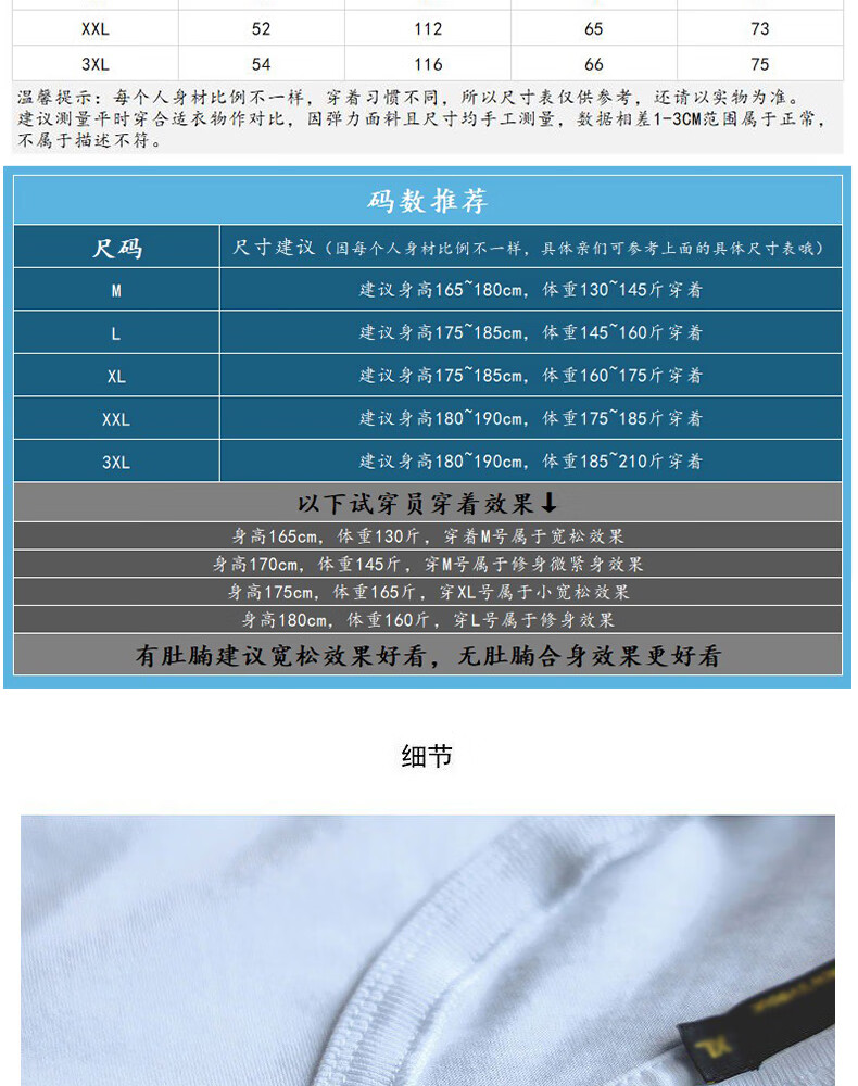 China (cm) 165 / 88-90 170 / 96-98 175 / 108-110 180 / 118-122 185 / 126-130
