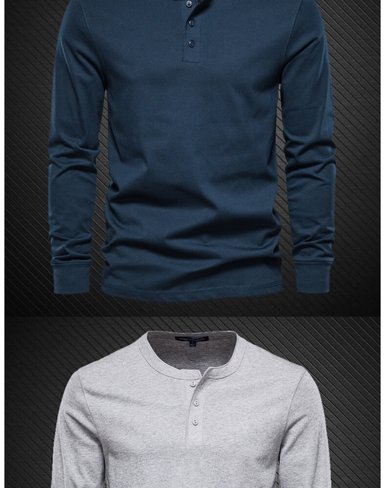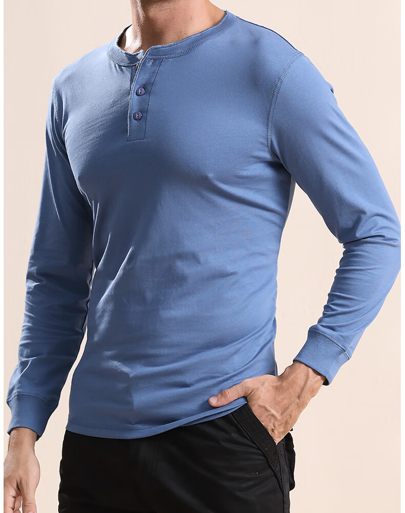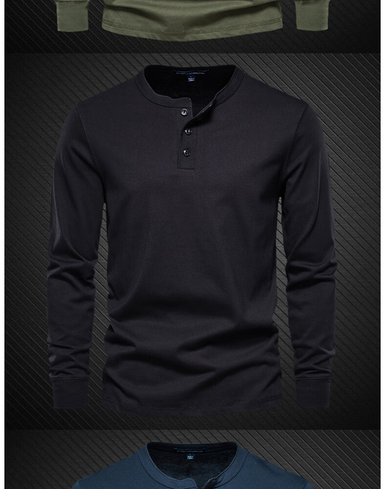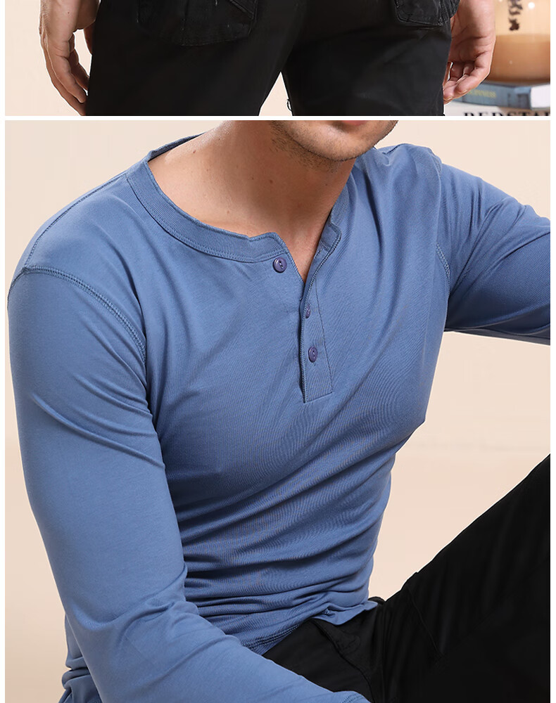 ROMON Henley shirt men's autumn heavyweight t-shirt cotton long-sleeved Henley collar men's business bottoming shirt slim fit top Navy S Weight 100-125 Jin Jin equals 0.5 kg