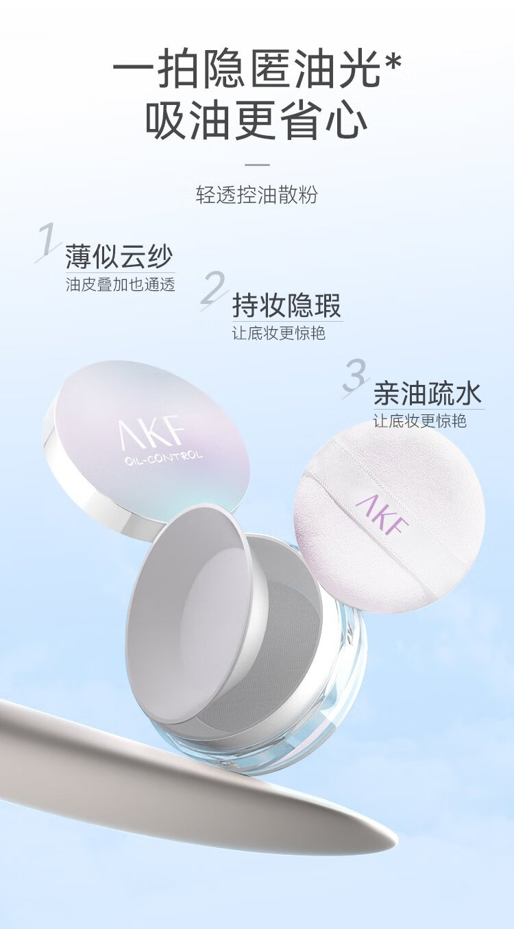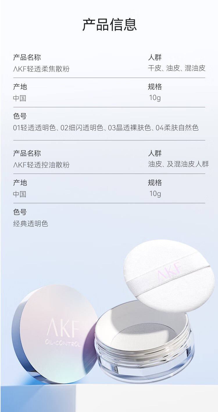 AKF Loose Powder New Oil-Controlling Makeup Long-Lasting Waterproof and Sweatproof Oily Skin Non-removing Makeup Setting Powder Powder Affordable Soft Focus Style #01 Light Mist Transparent Color