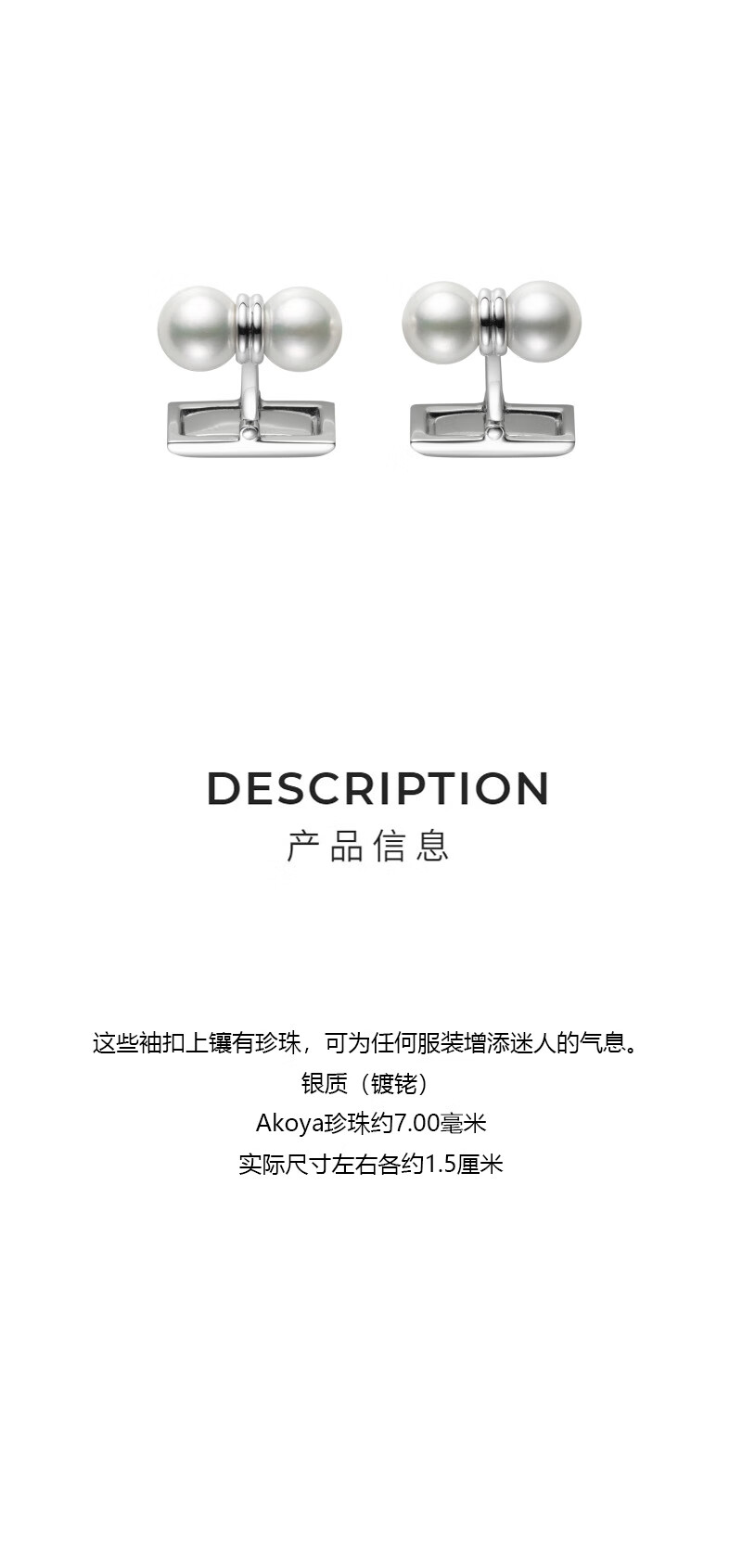 Mikimoto men's pearl cufflinks, exquisite and simple, silver, low-key, luxury, formal suit accessories, gift for husband, PF-307S | 7mm pearls, 2 pieces