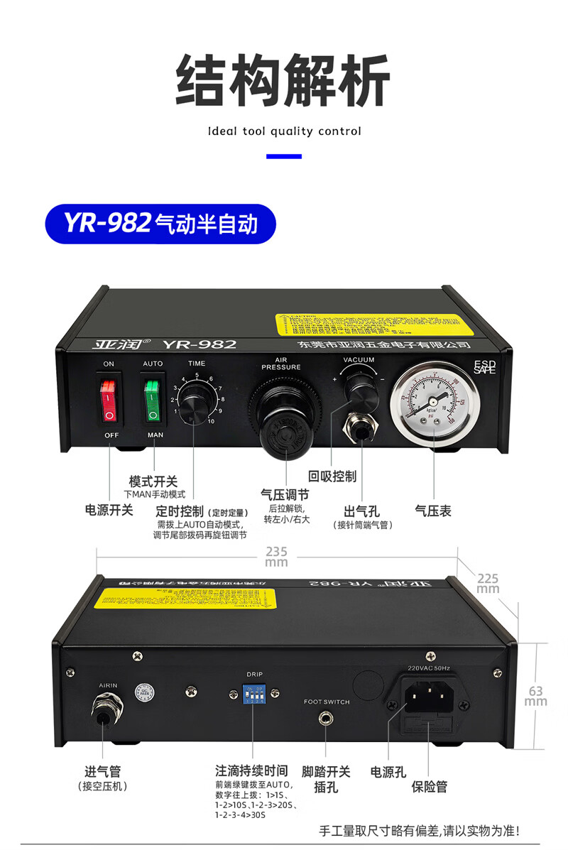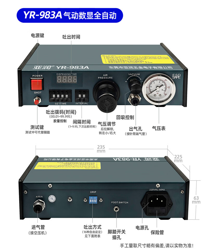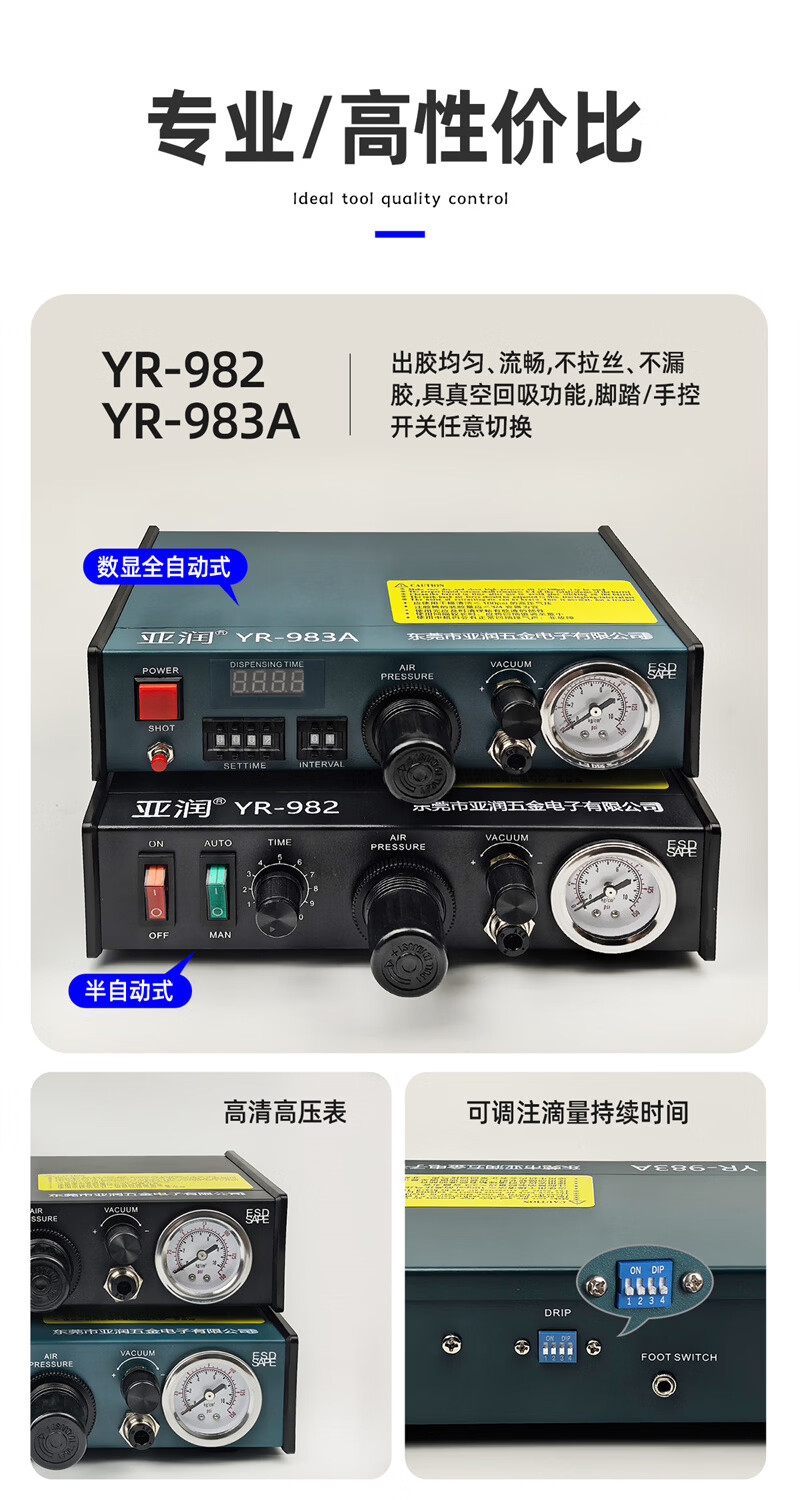 Yarun glue dispensing machine, fully automatic high-precision glue filling, AB glue dispensing, semi-automatic manual foot-operated glass glue injection machine YR-983A pneumatic-digital display fully automatic
