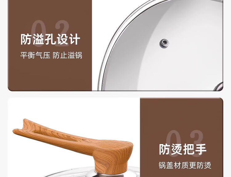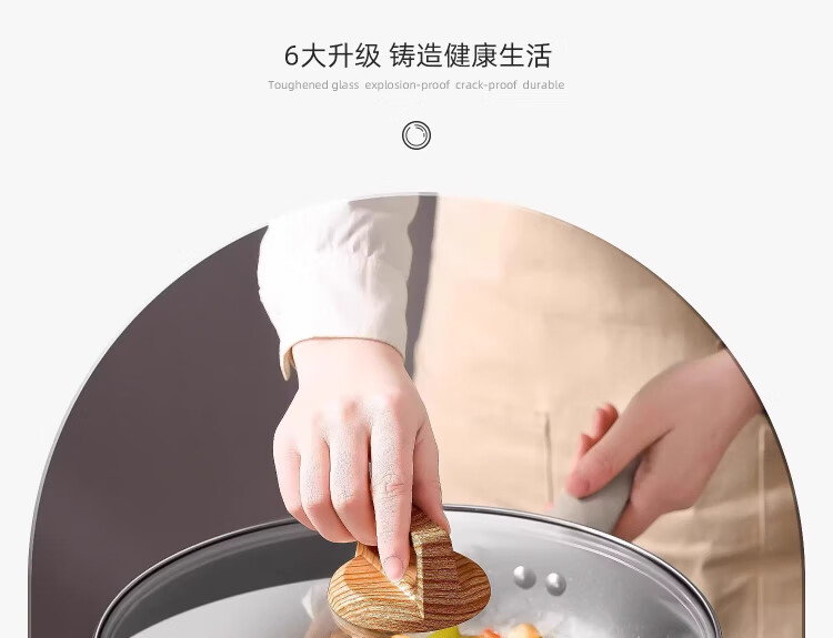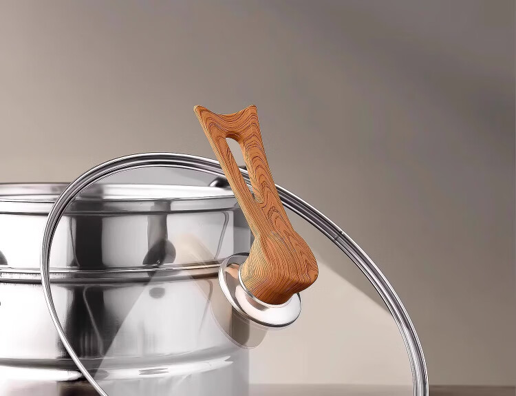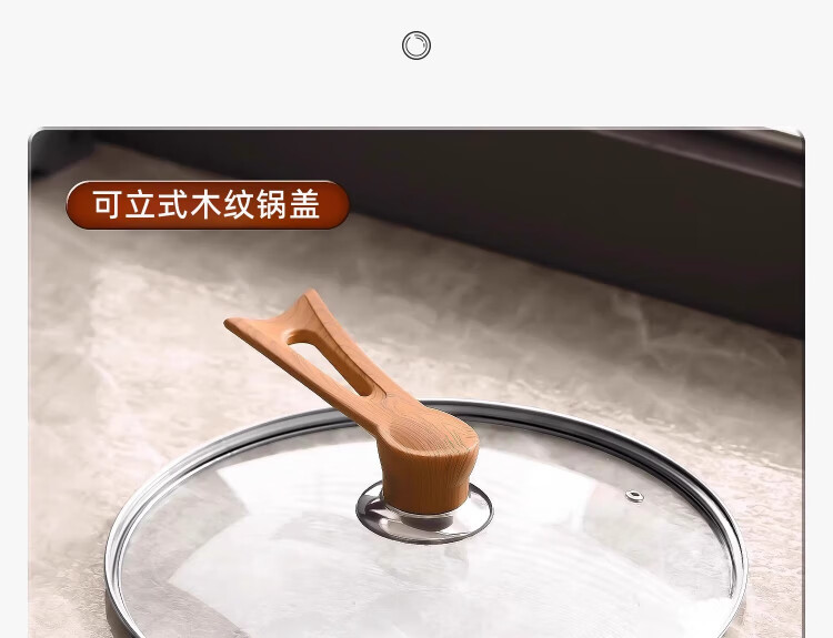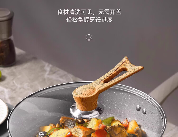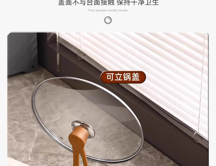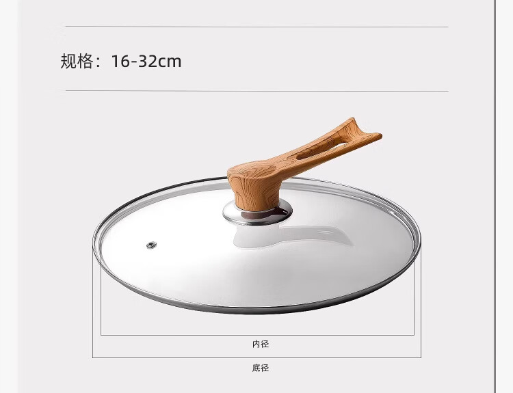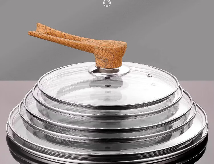 Yinjue pot lid can stand up to see tempered glass pot lid transparent household frying pan milk pot steamer wok lid high temperature resistant 16cm tempered glass lid (can stand up wood grain handle)
