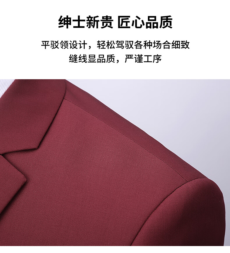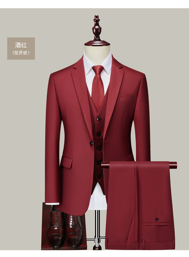 Pierre Cardin Suit Men's No-Iron Slim Three-piece Red Casual Suit Jacket Men's Business Formal Wear Groom Wedding Burgundy Suit+Trousers+XL 180 Weight 140-155Jin Jin equals 0.5 kg