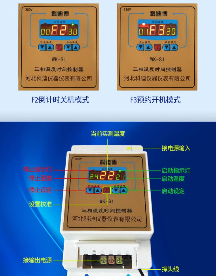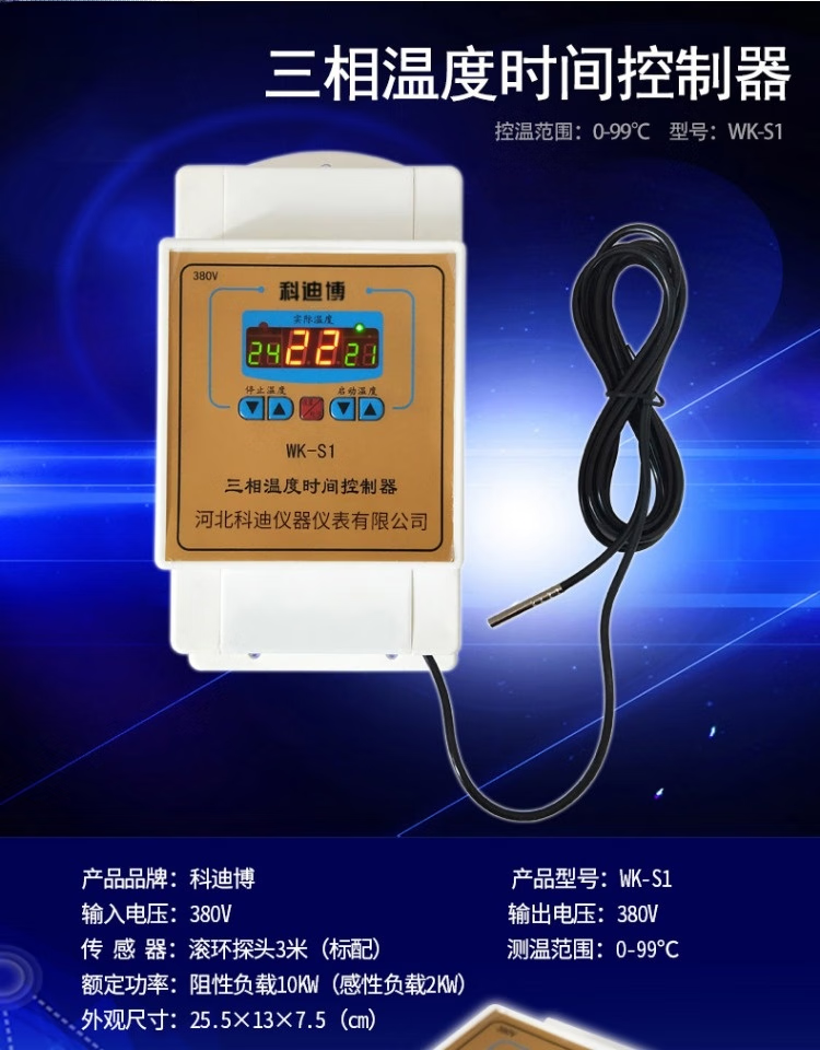 S1 three-phase 380V intelligent temperature control switch fan water pump floor heating hot air stove boiler thermostat S1-380V-20 meters waterproof probe