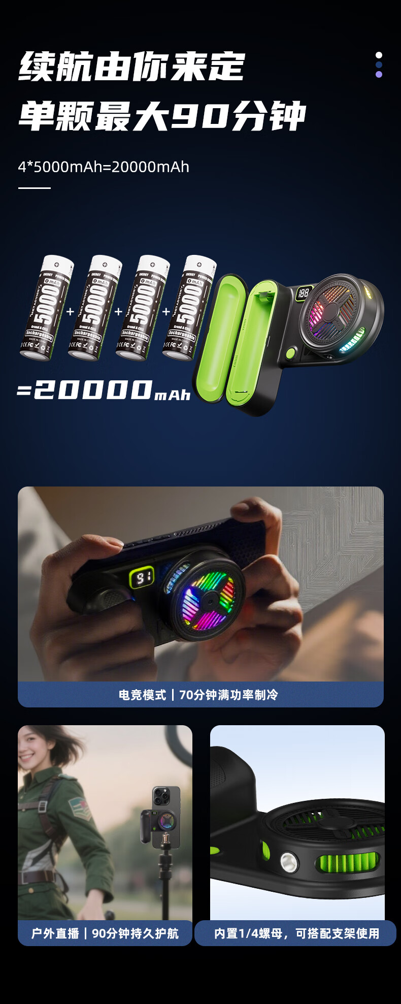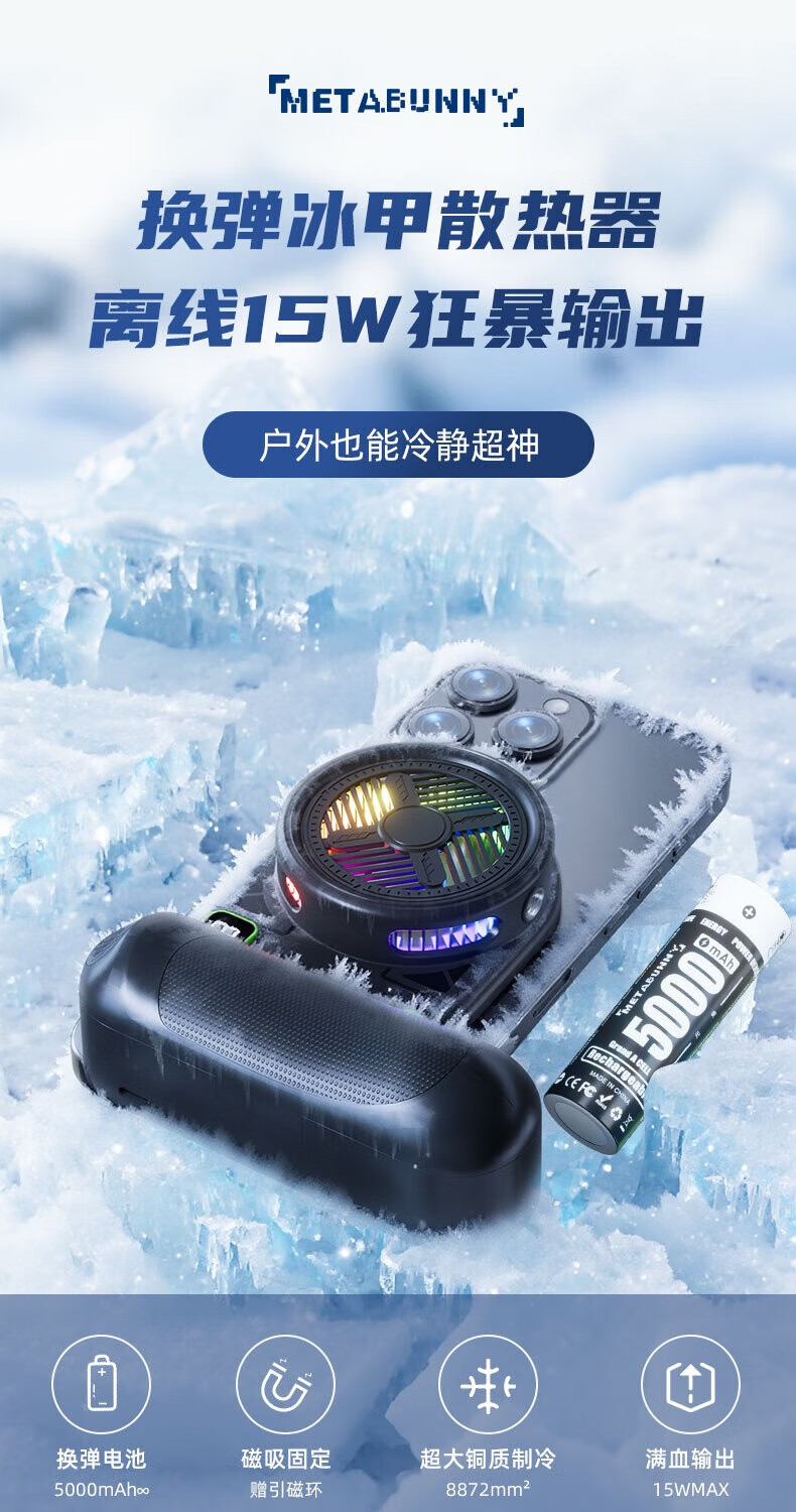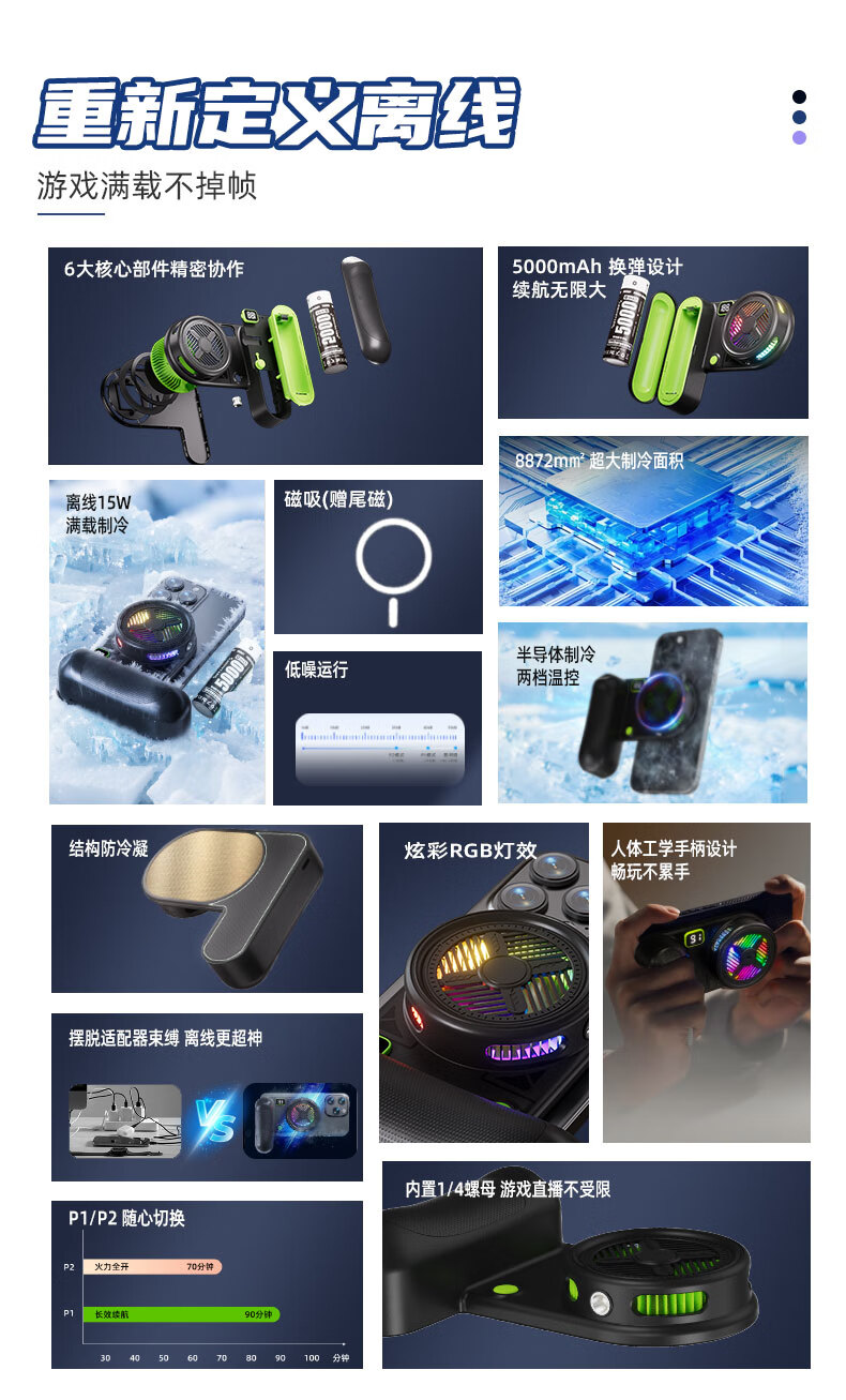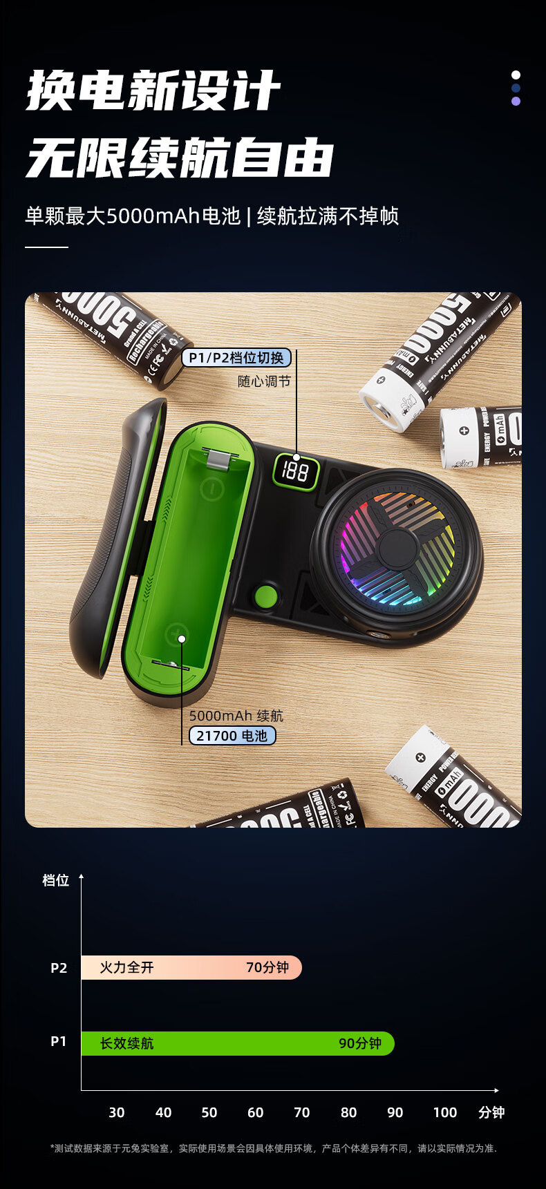 Yuantu radiator replaceable battery 5000mAh offline mobile phone radiator 15W magnetic semiconductor cooling artifact game live broadcast long battery life offline 21700 battery e-sports black | bare metal with live broadcast nut