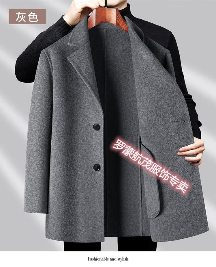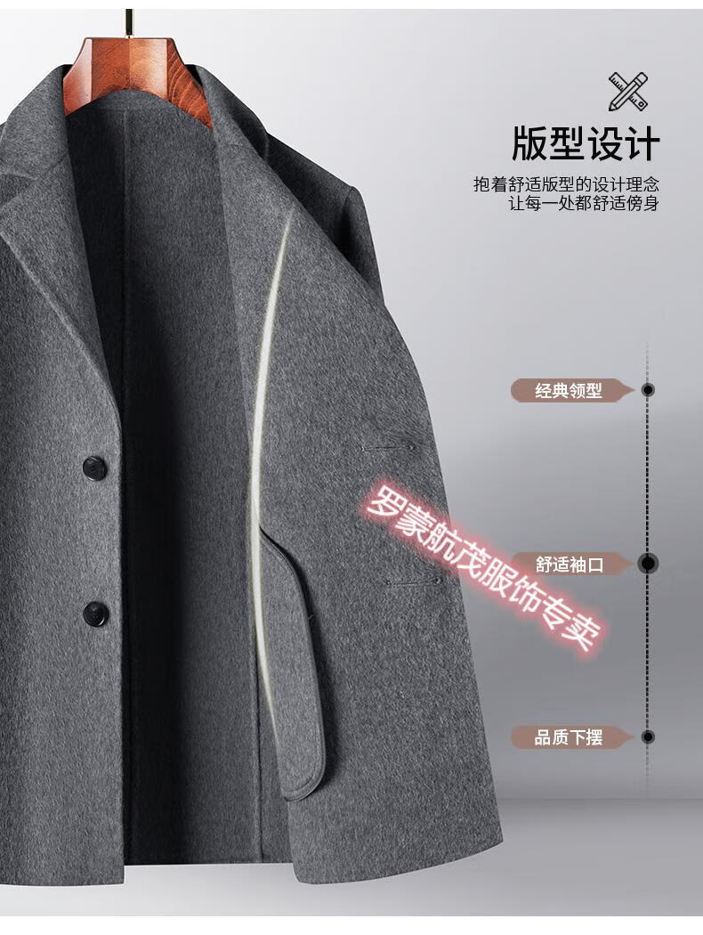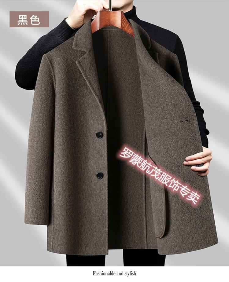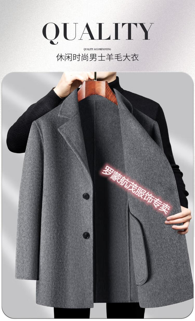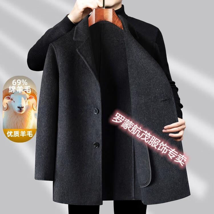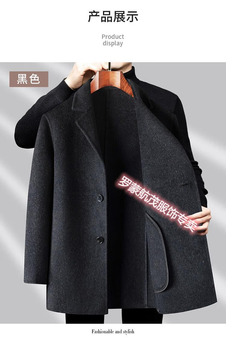 ROMON Light Luxury Autumn and Winter New Men's Wool Coat Extra Large Medium and Long Business Double-sided Wool Woolen Coat Light Luxury High-end-Black-High-end Brand M