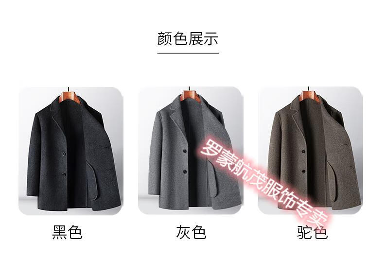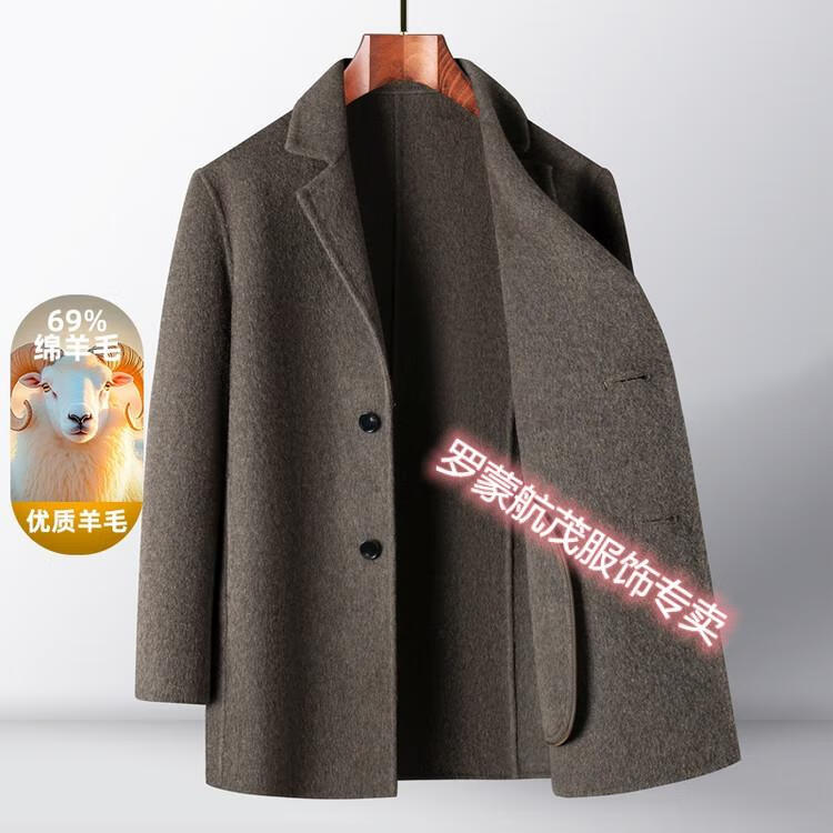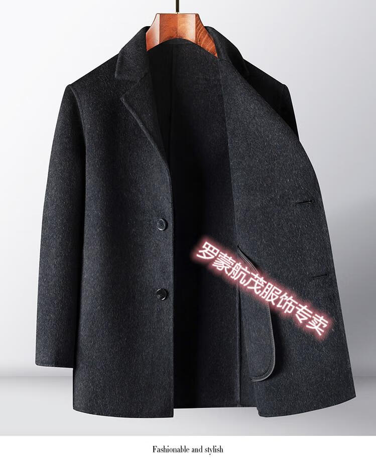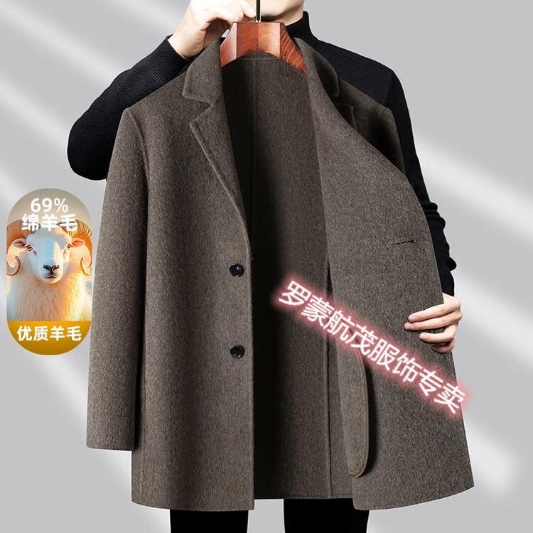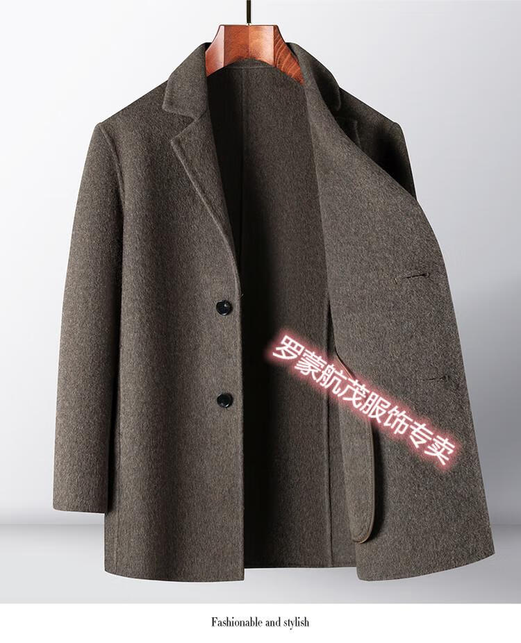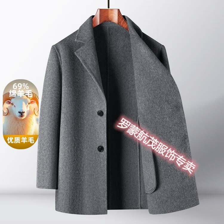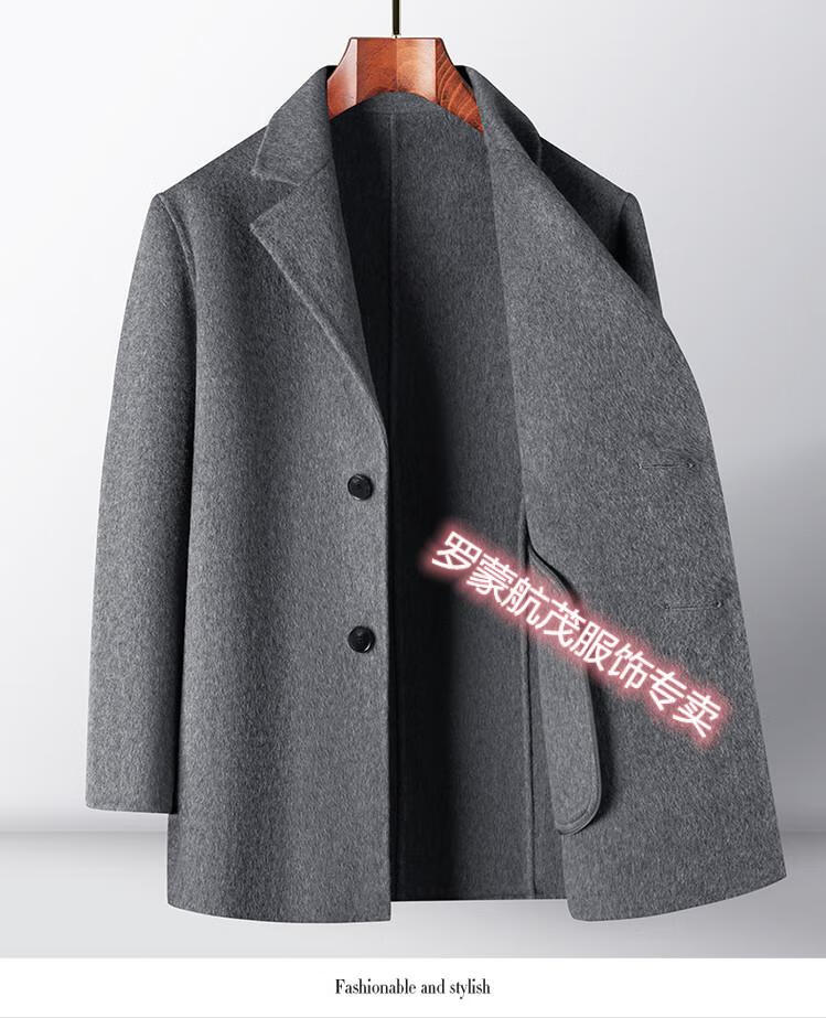 ROMON Light Luxury Autumn and Winter New Men's Wool Coat Extra Large Medium and Long Business Double-sided Wool Woolen Coat Light Luxury High-end-Black-High-end Brand M