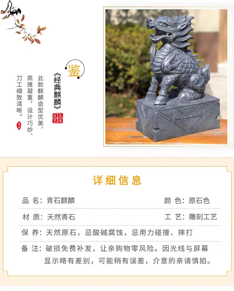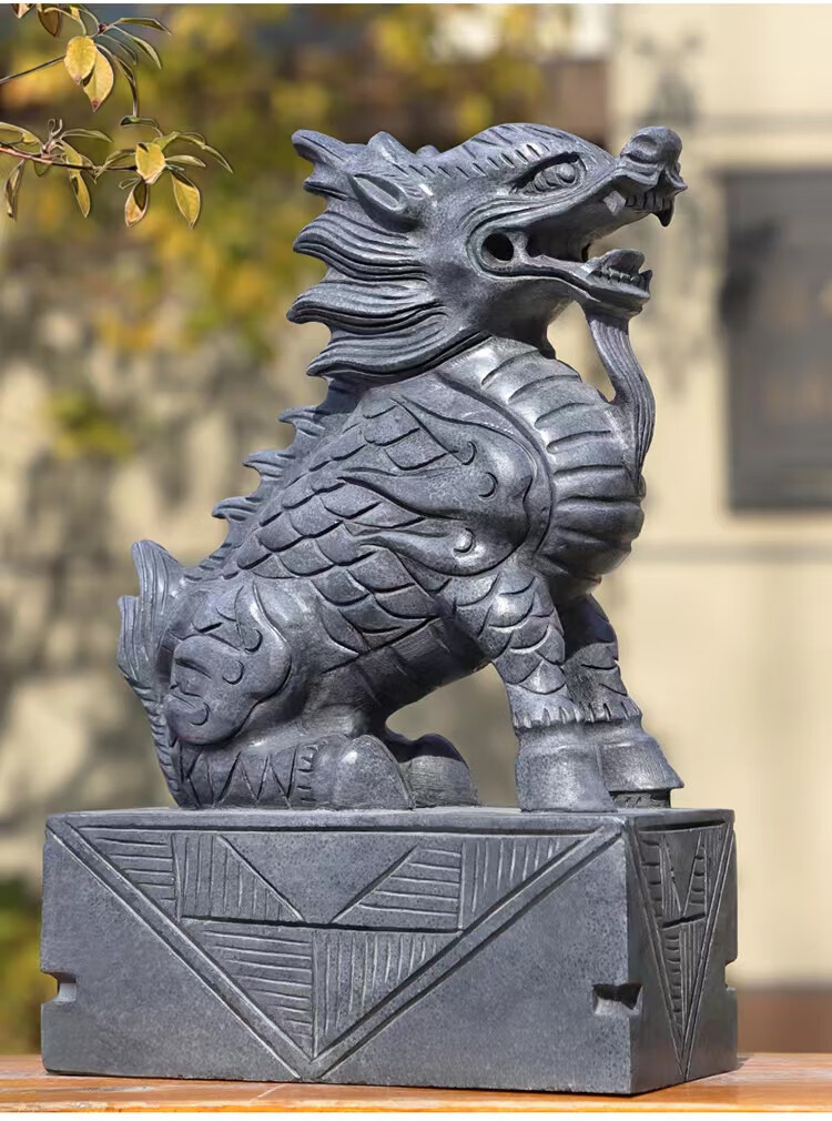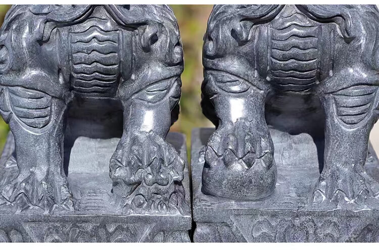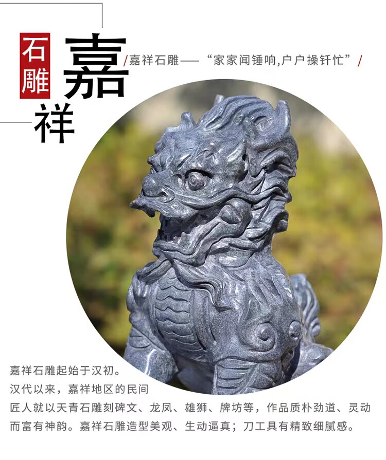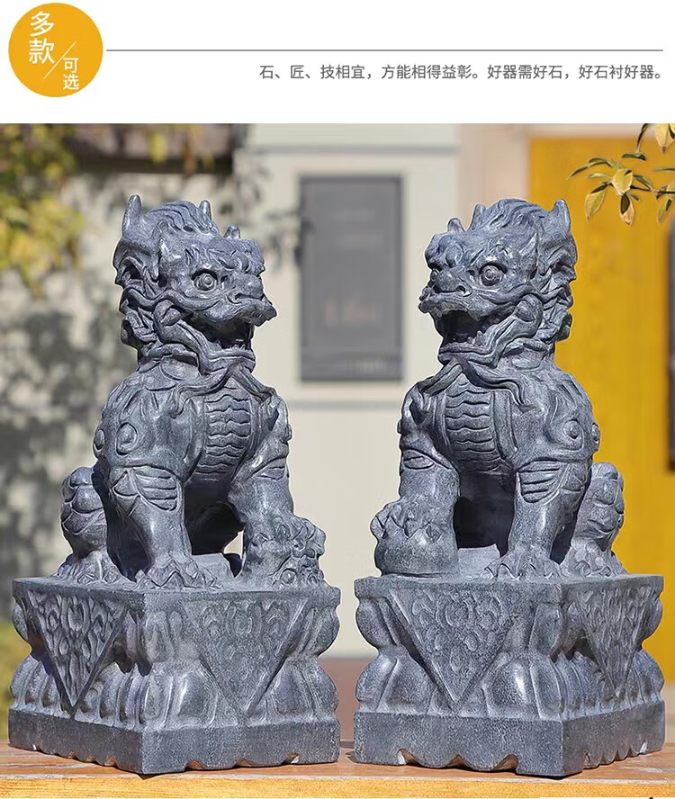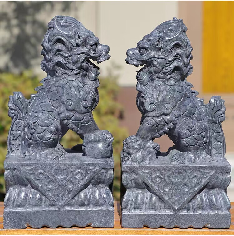 A pair of stone carvings and stone unicorns. A pair of bluestone carvings for town houses, home courtyards, outdoor fortune-seeking beasts, and villa entrance ornaments. Dragon claw unicorns are 75 meters long, 50 meters wide, and 15 meters high.