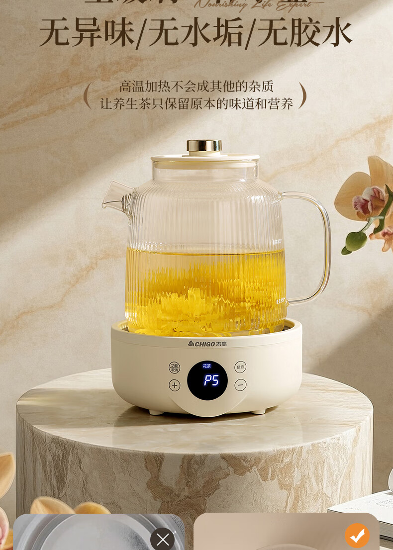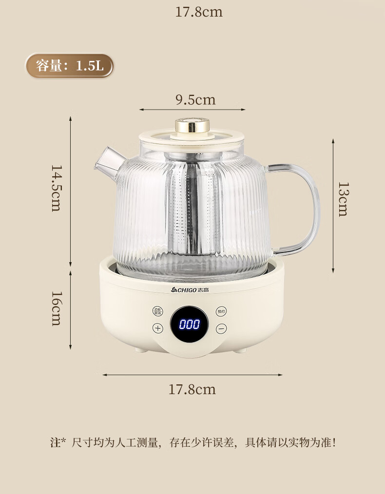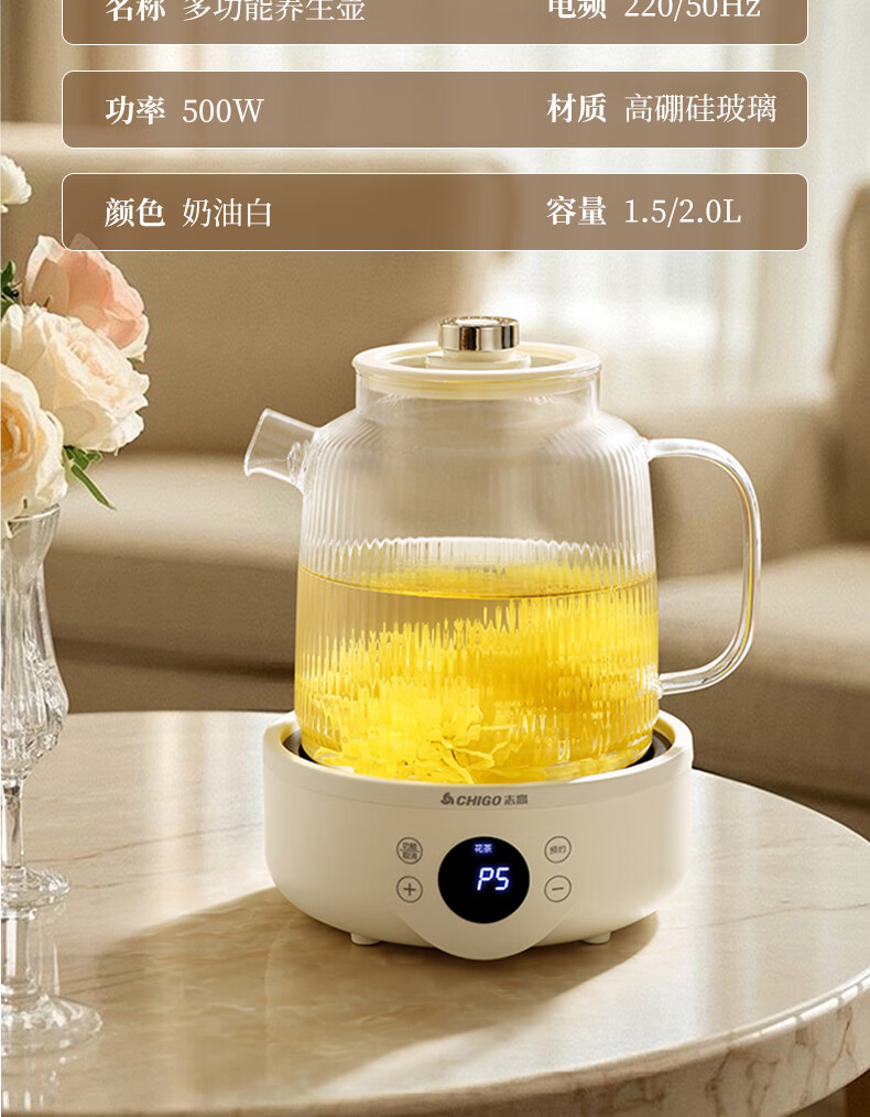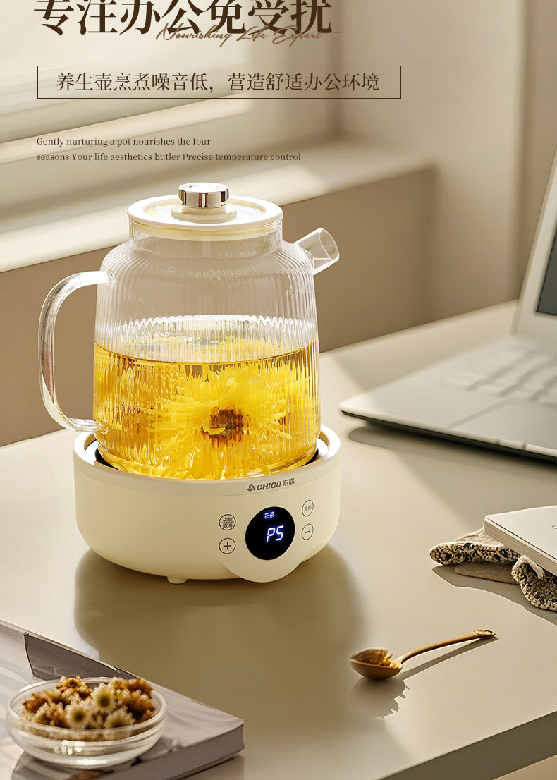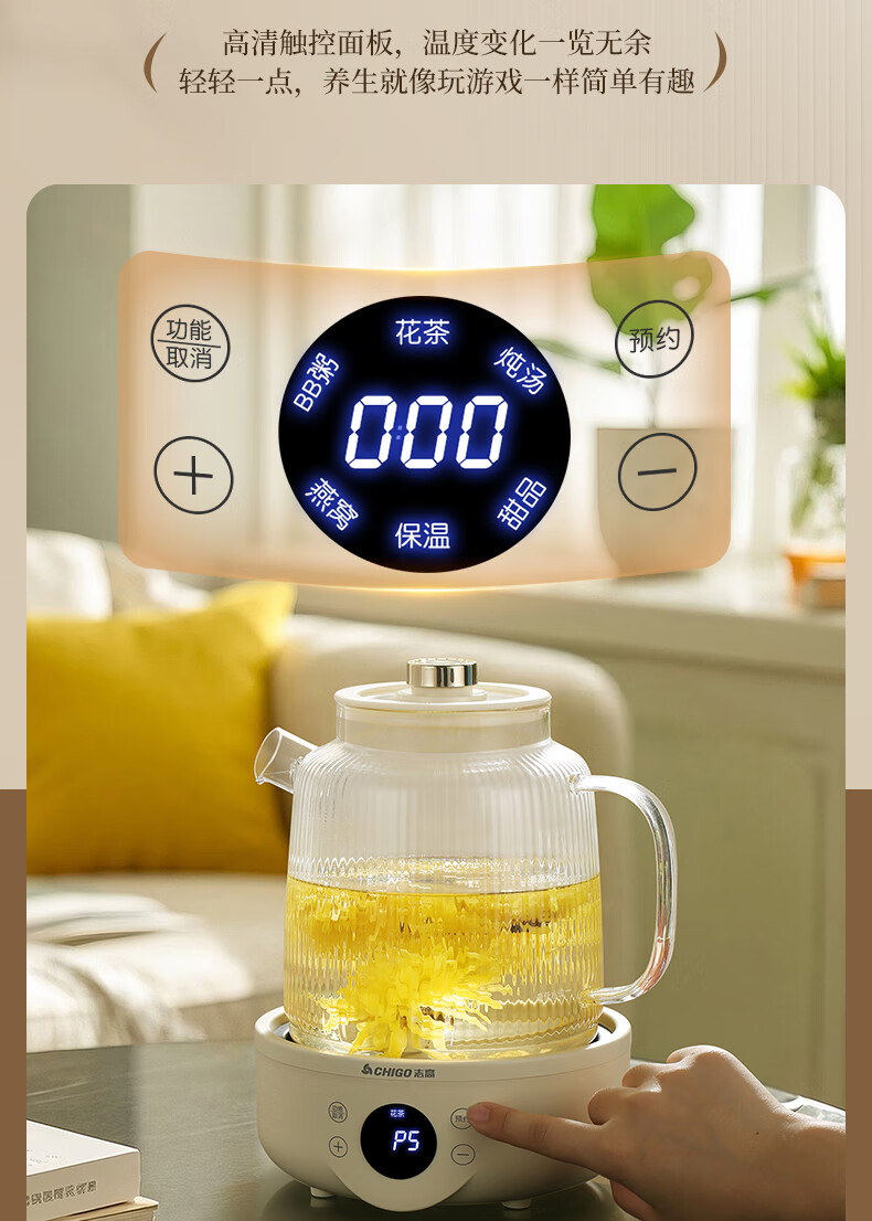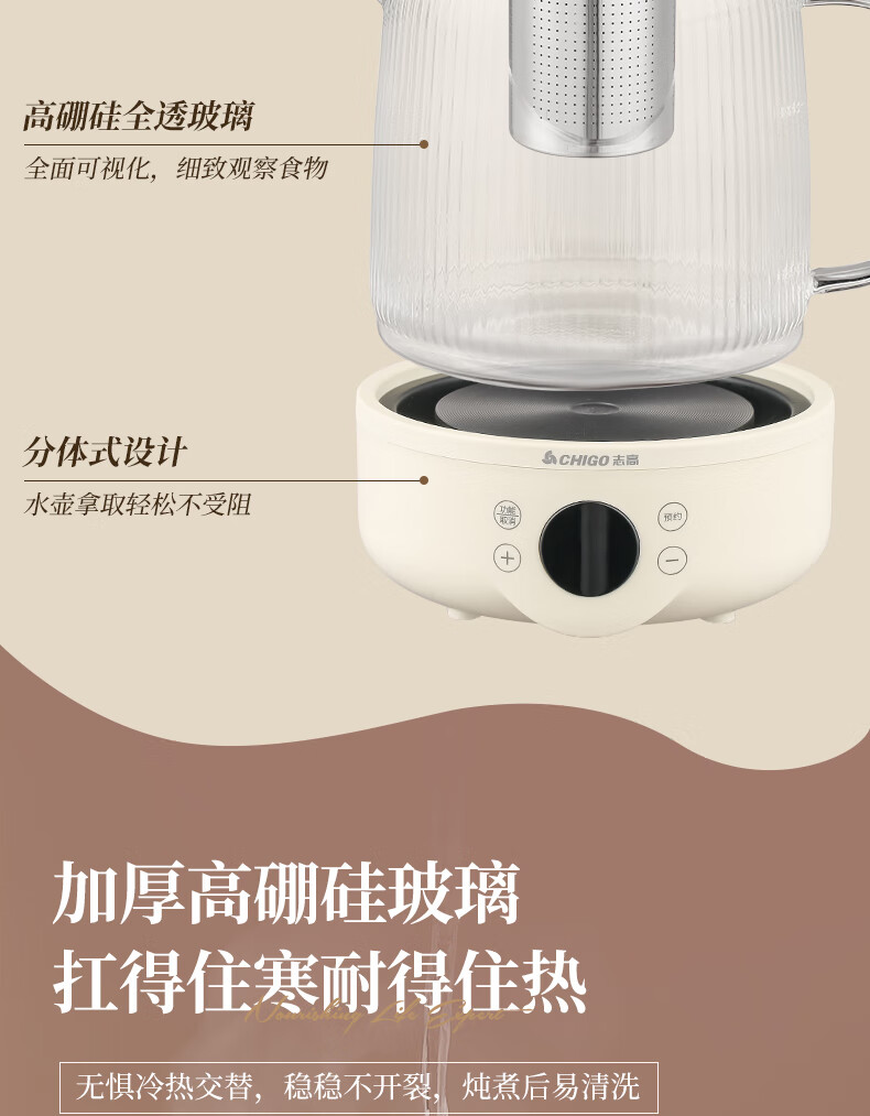 Chigo health pot flower tea brewing teapot all glass office mini health kettle for one person boiling kettle stew pot all in one small fully automatic constant temperature pot tea maker electric stew cup 1.5L - striped glass pot - mechanical knob model + 304 filter