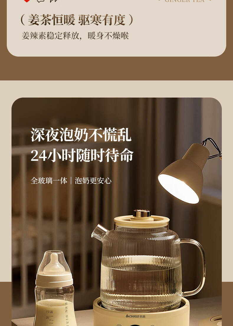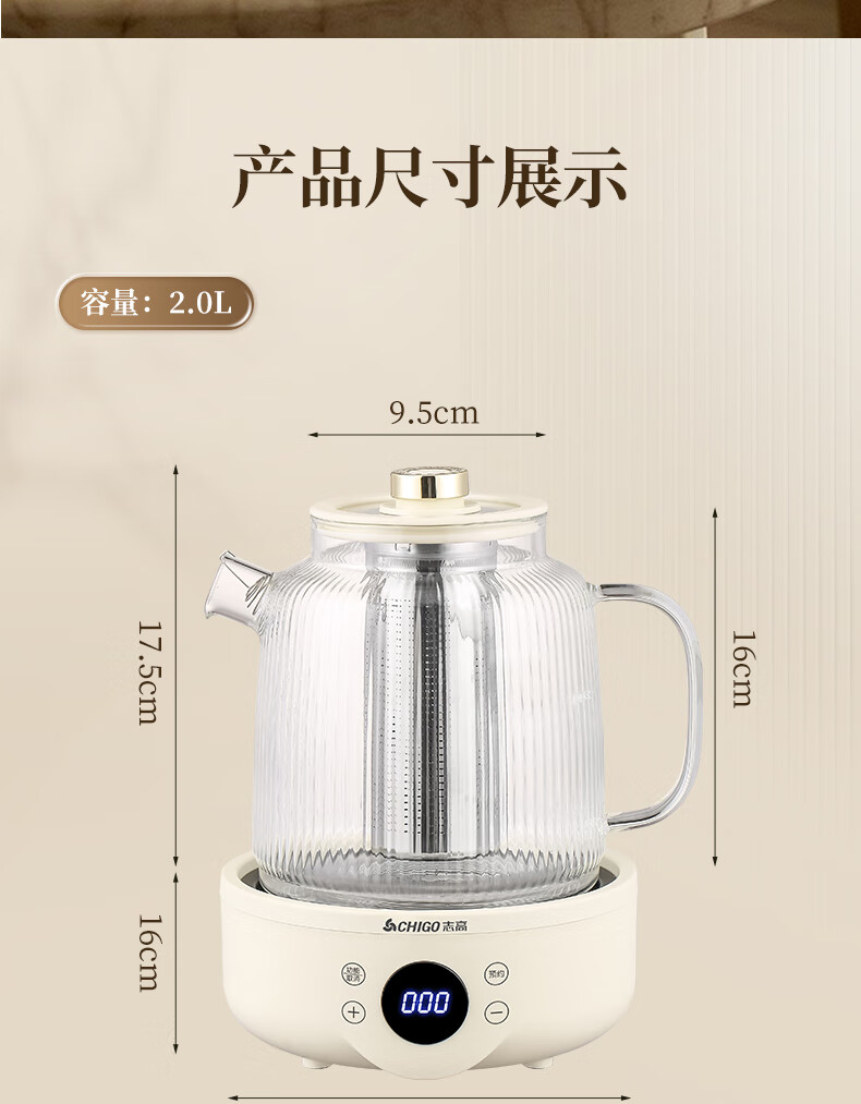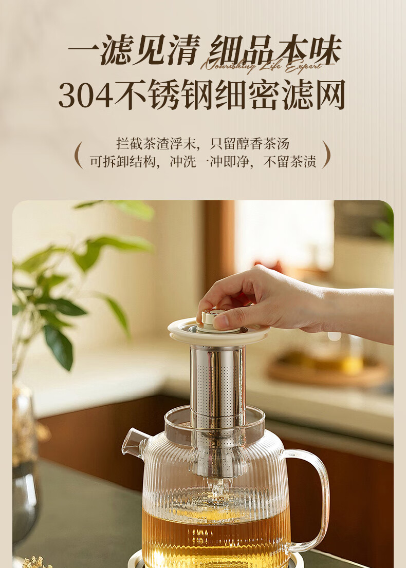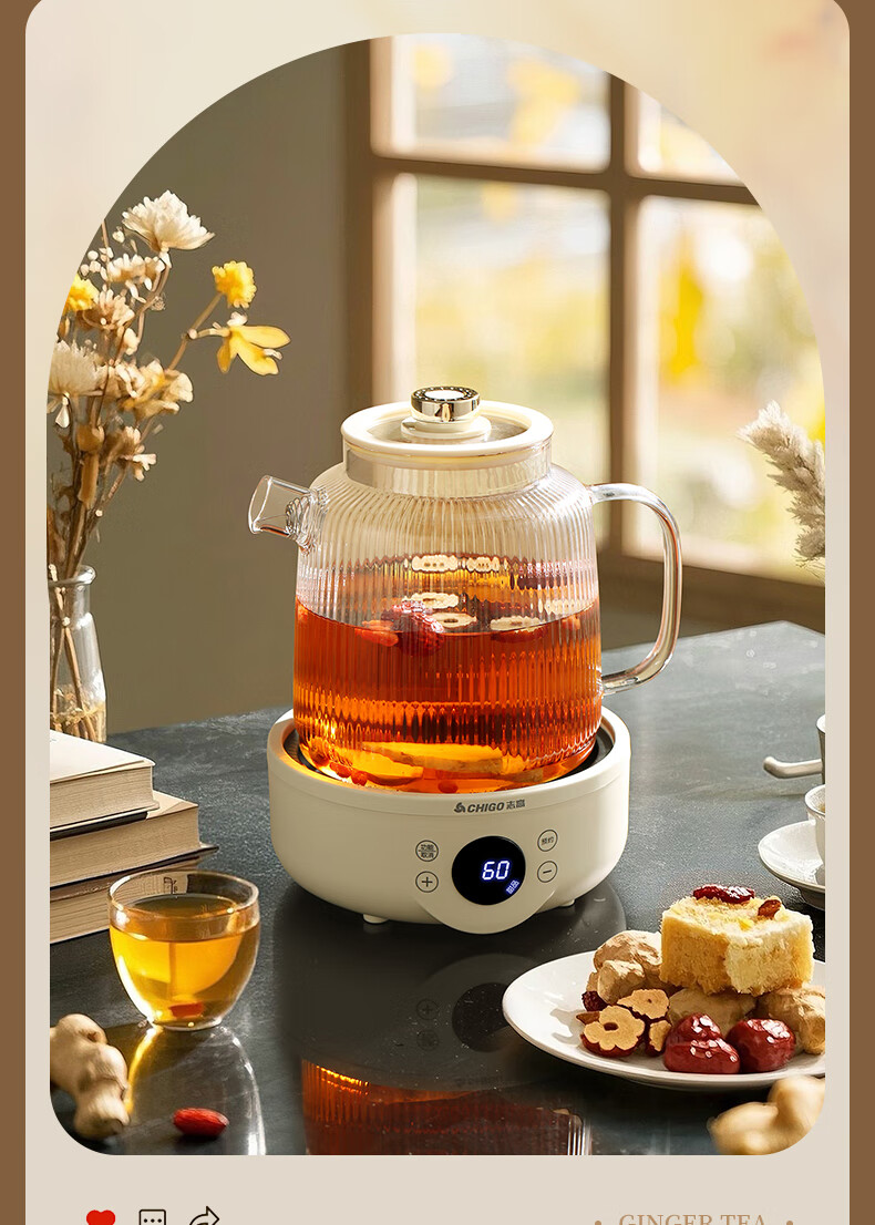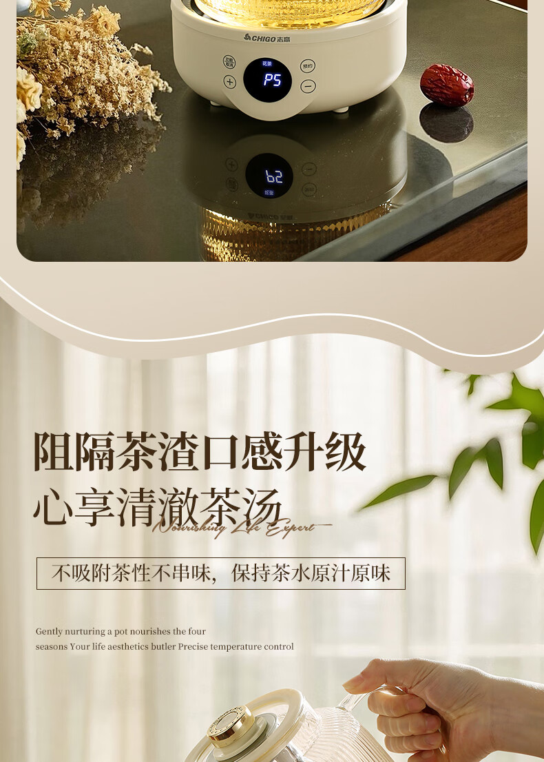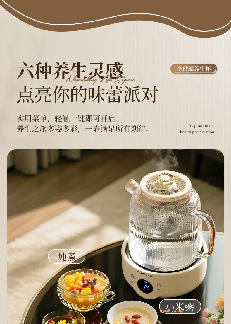 Chigo health pot flower tea brewing teapot all glass office mini health kettle for one person boiling kettle stew pot all in one small fully automatic constant temperature pot tea maker electric stew cup 1.5L - striped glass pot - mechanical knob model + 304 filter