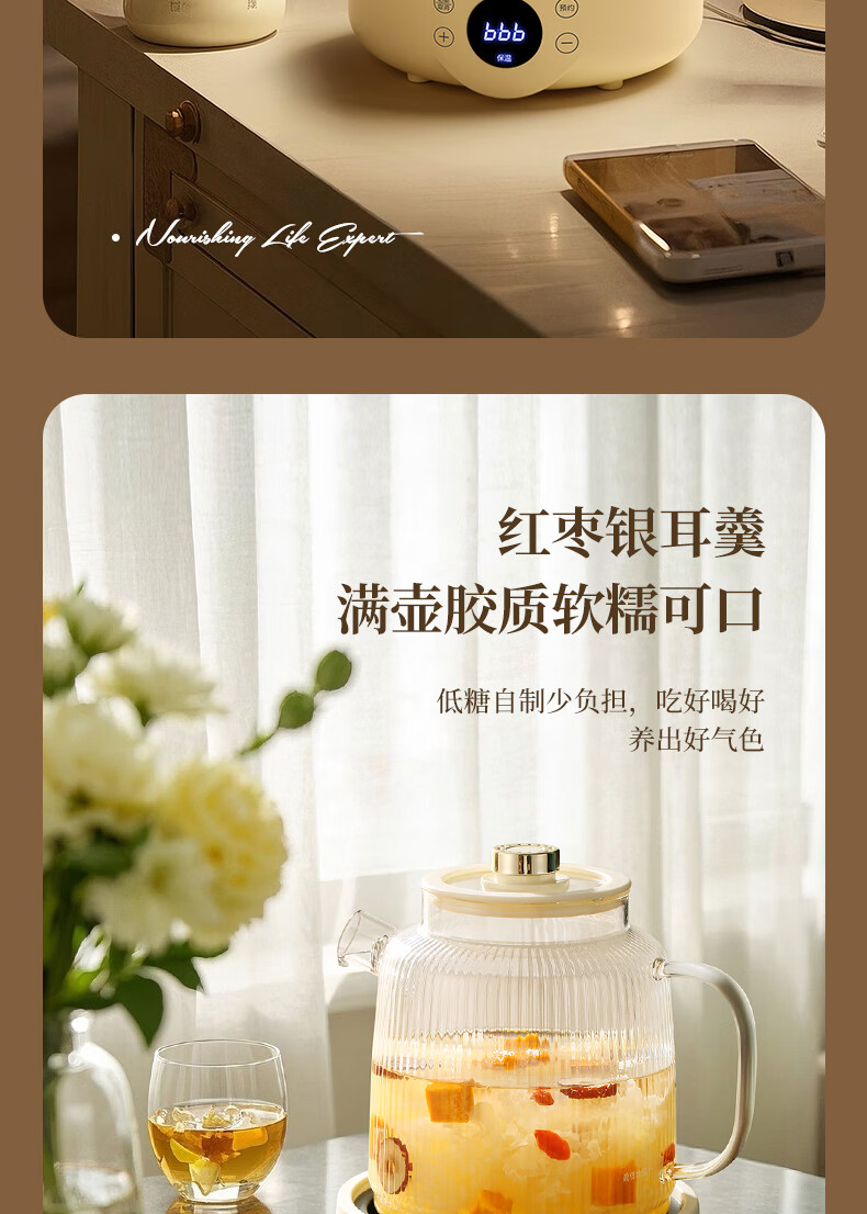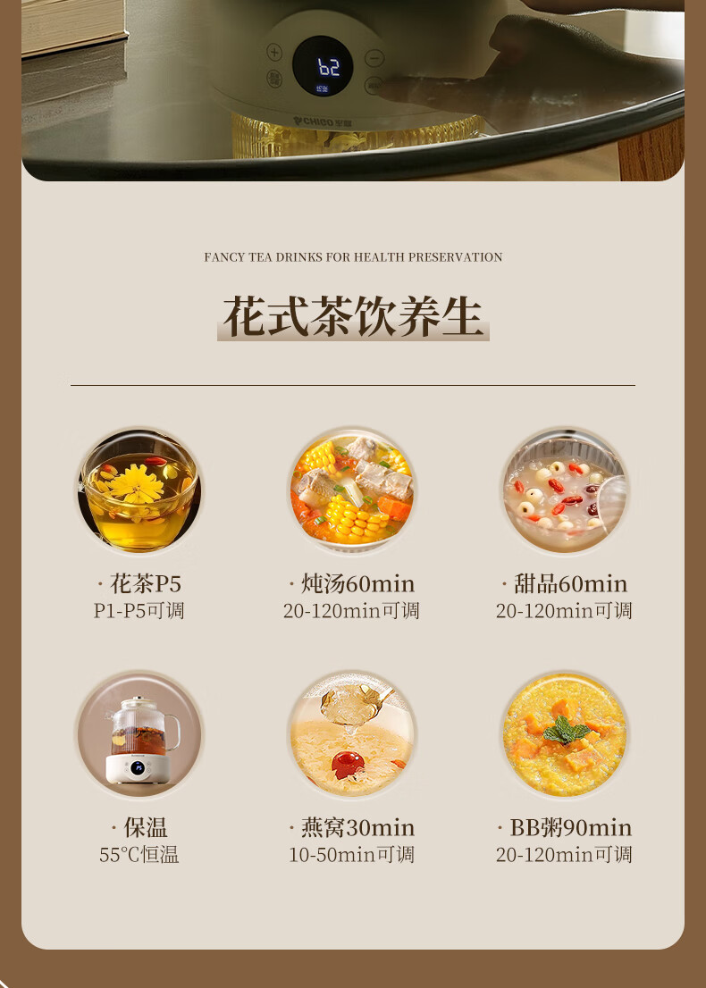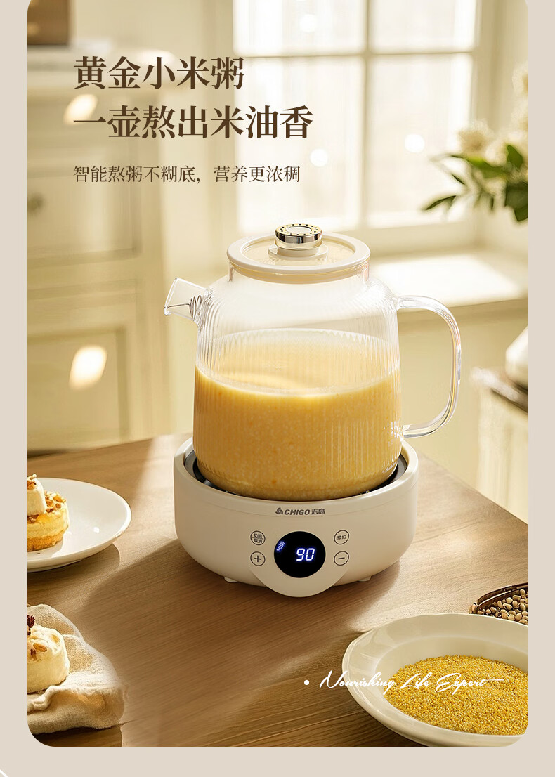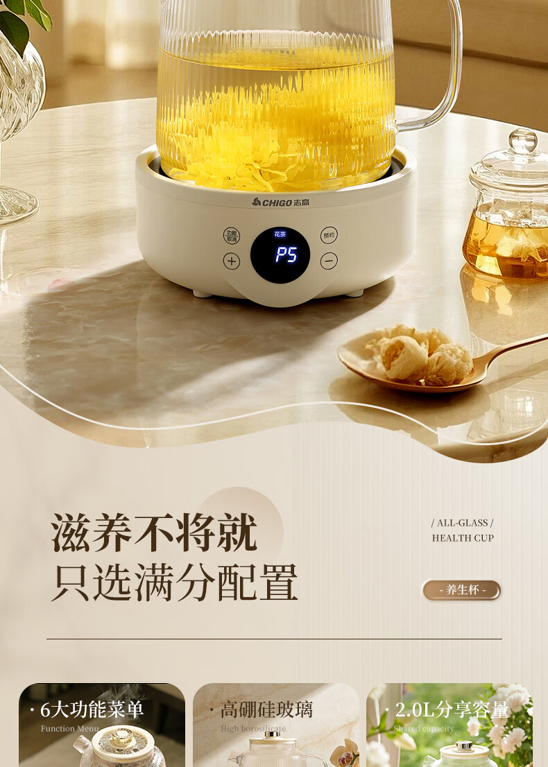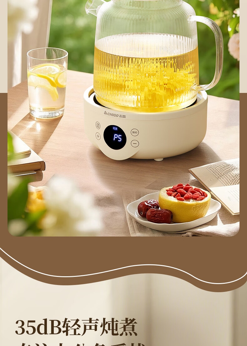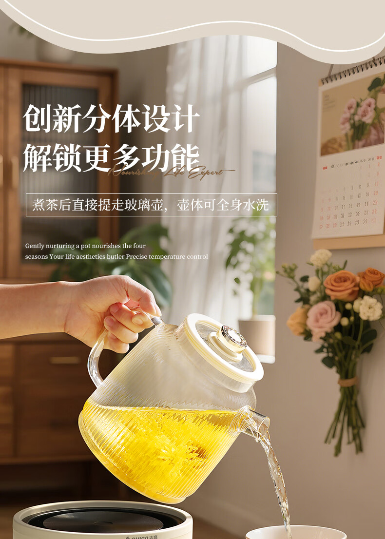 Chigo health pot flower tea brewing teapot all glass office mini health kettle for one person boiling kettle stew pot all in one small fully automatic constant temperature pot tea maker electric stew cup 1.5L - striped glass pot - mechanical knob model + 304 filter