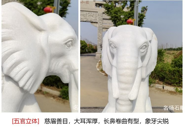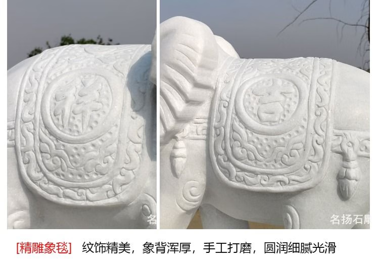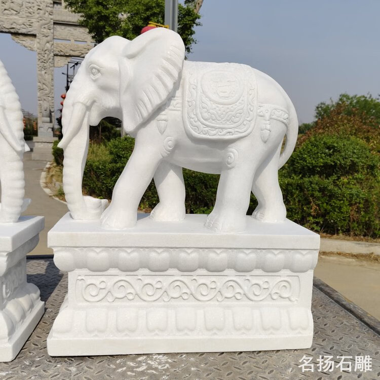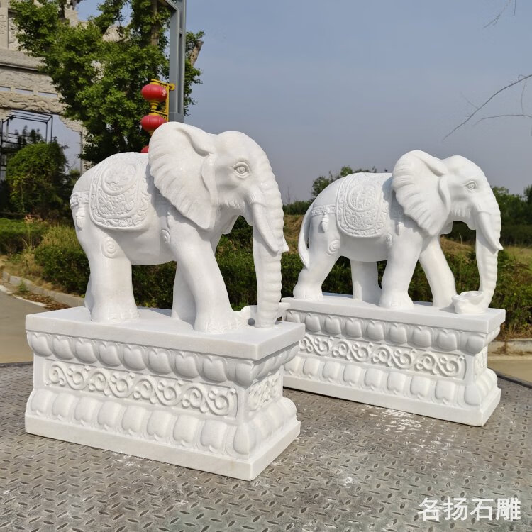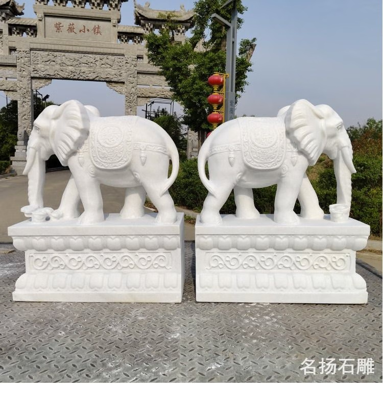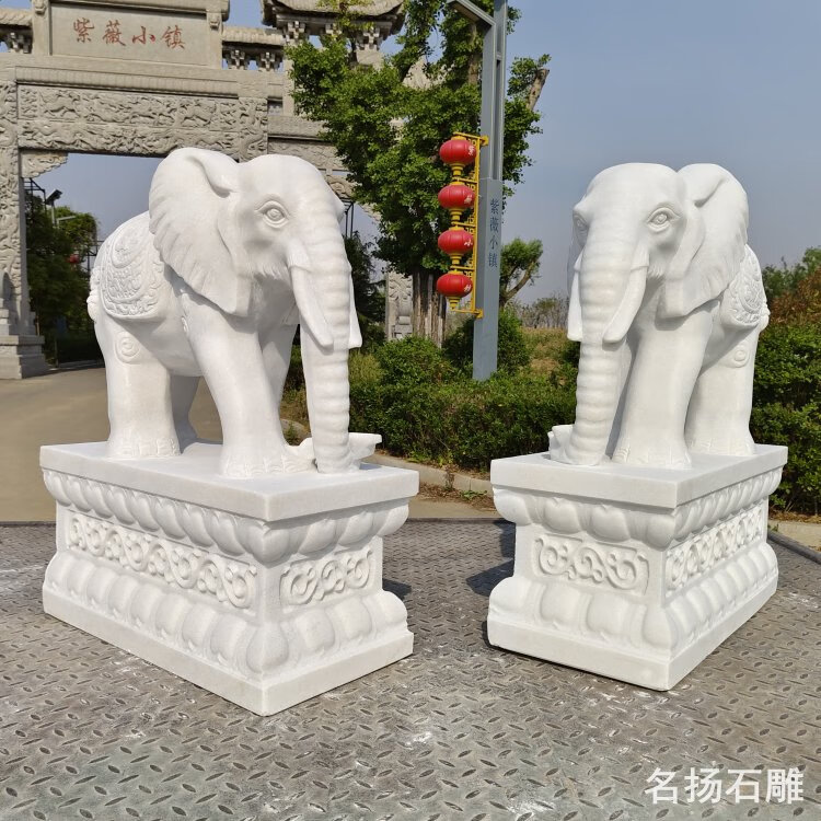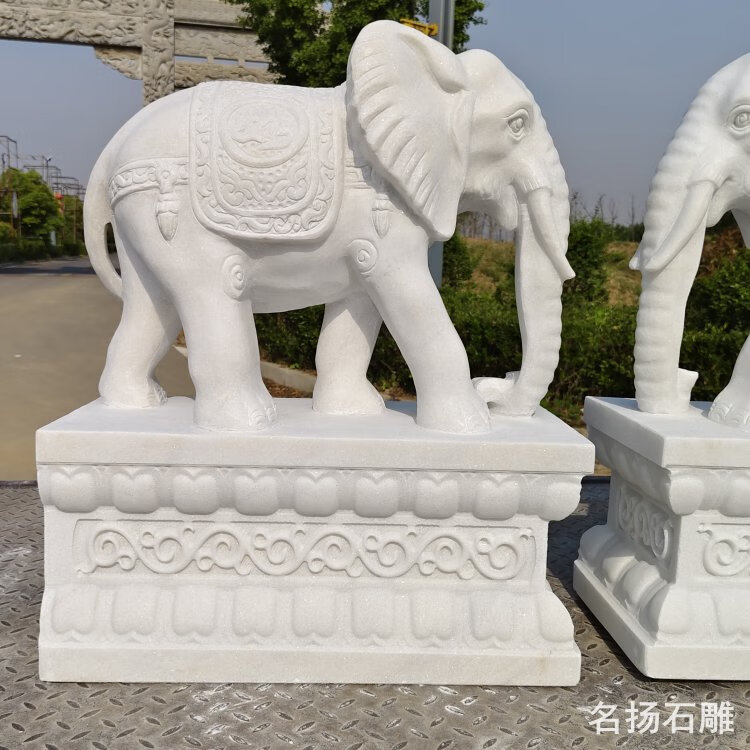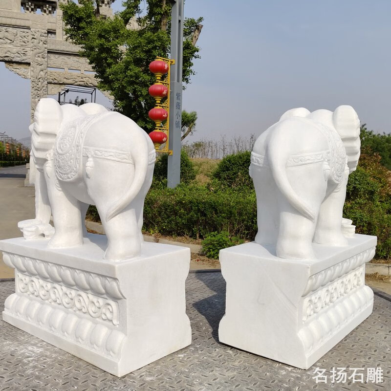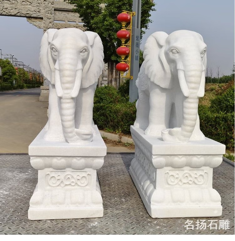 A pair of stone carved white marble elephant ornaments for household company courtyard gates, stone carved bluestone water-absorbing elephants, 12 meters high, 95 wide, 45 centimeters wide, a pair