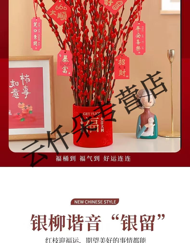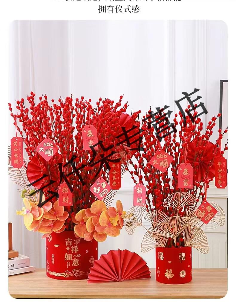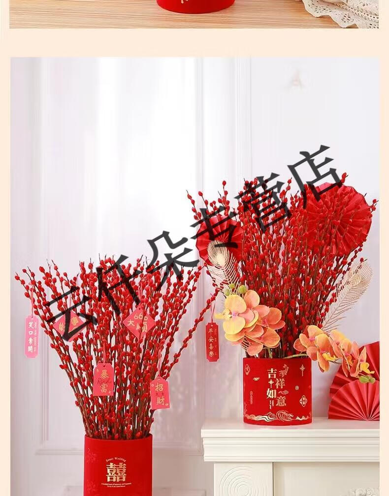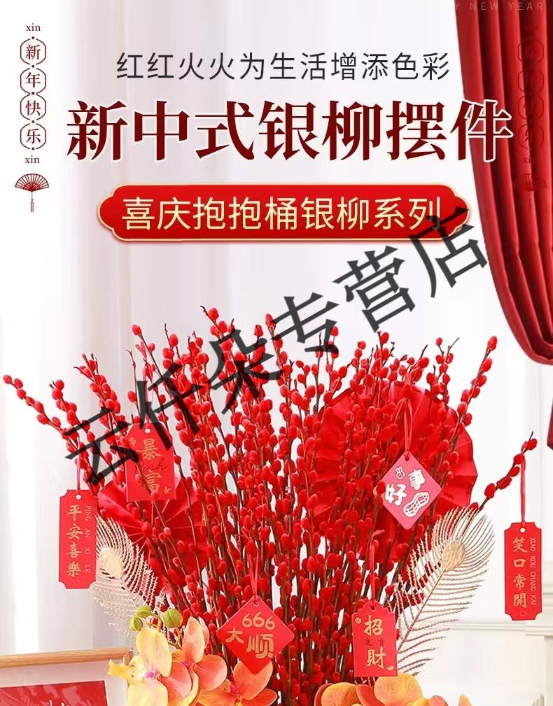 Fortune Bucket Silver Willow Red Dried Flowers Real Flowers Fresh Branches Cold-resistant New Year's Eve Flowers Hydroponic Flowers Indoor Living Room Decorative Flowers Silver Willow 60 High 60 Count + Auspicious Ruyi Fortune Bucket B Set