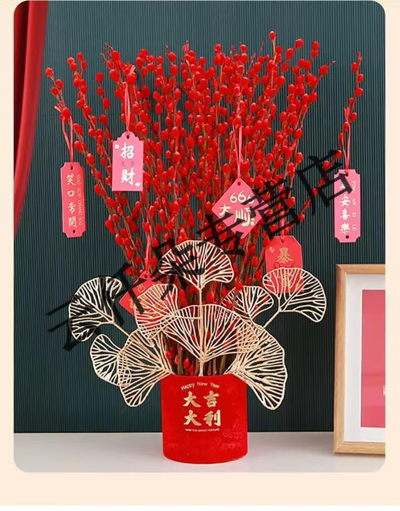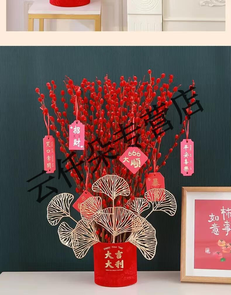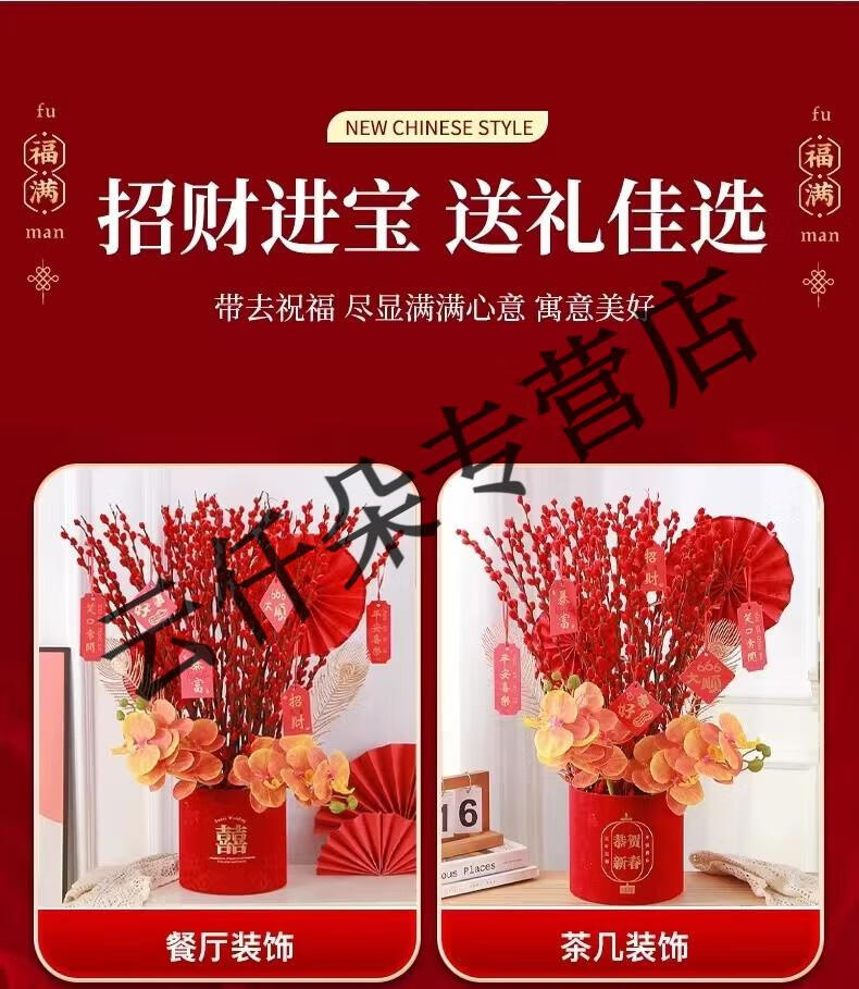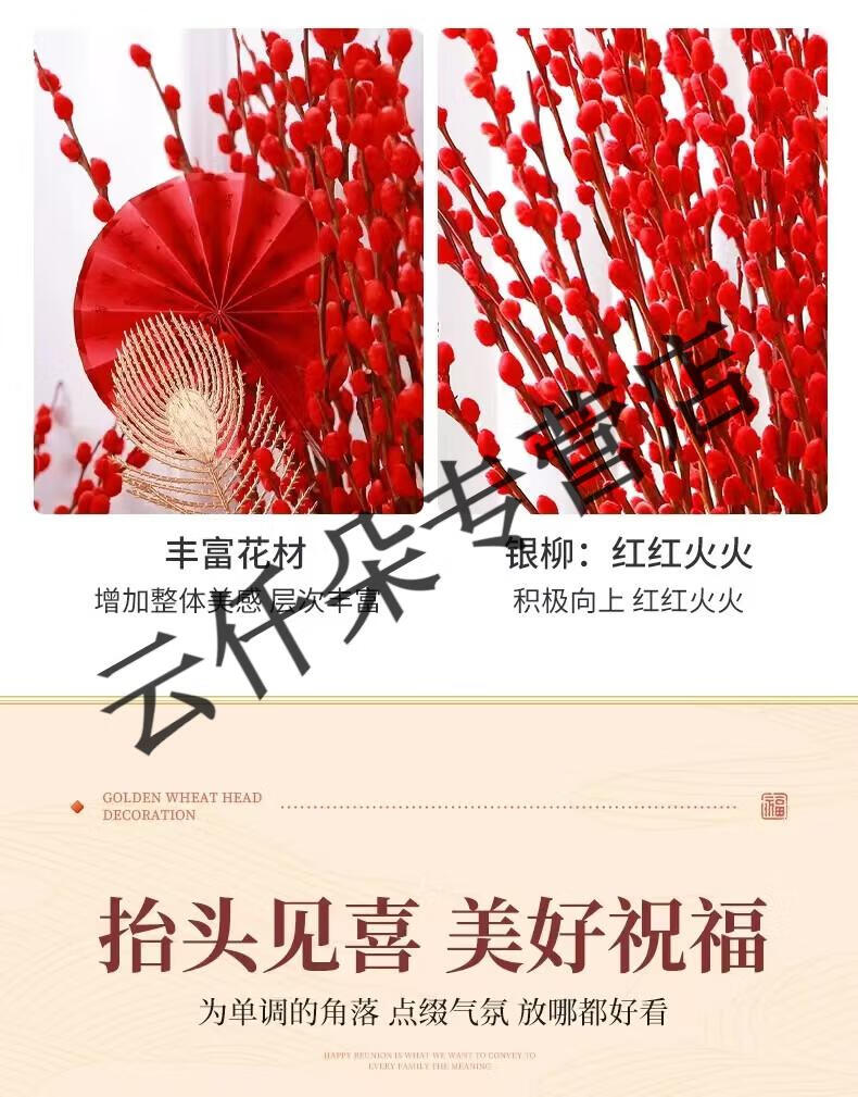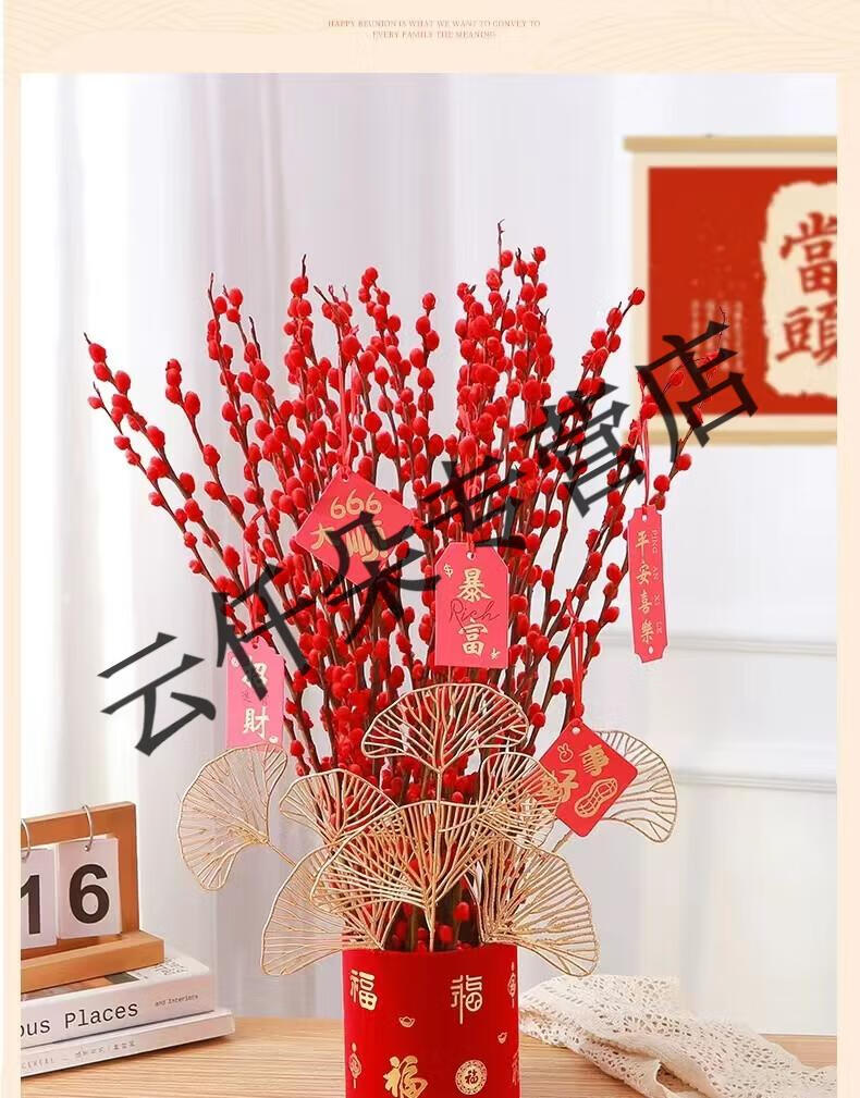 Fortune Bucket Silver Willow Red Dried Flowers Real Flowers Fresh Branches Cold-resistant New Year's Eve Flowers Hydroponic Flowers Indoor Living Room Decorative Flowers Silver Willow 60 High 60 Count + Auspicious Ruyi Fortune Bucket B Set