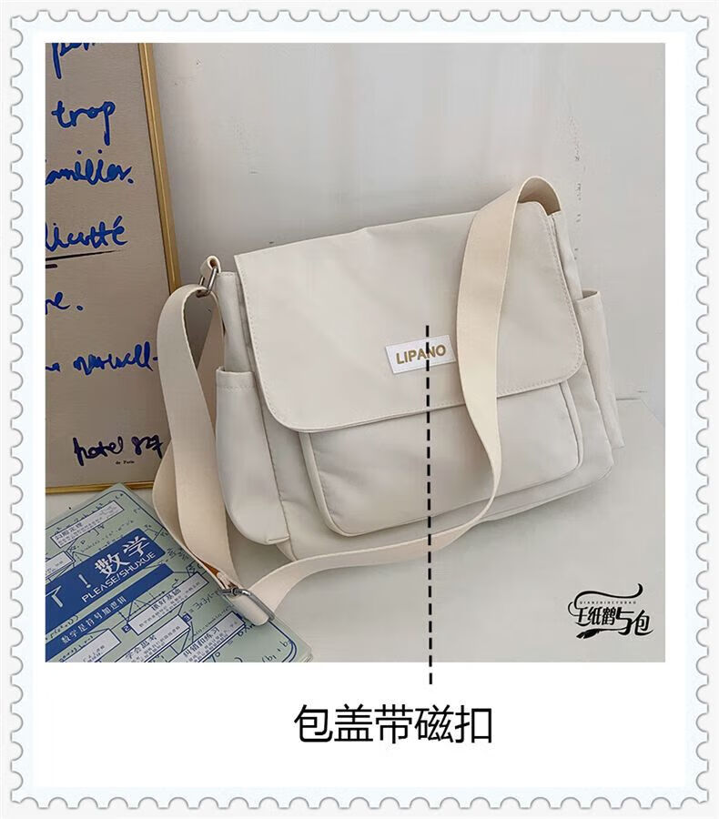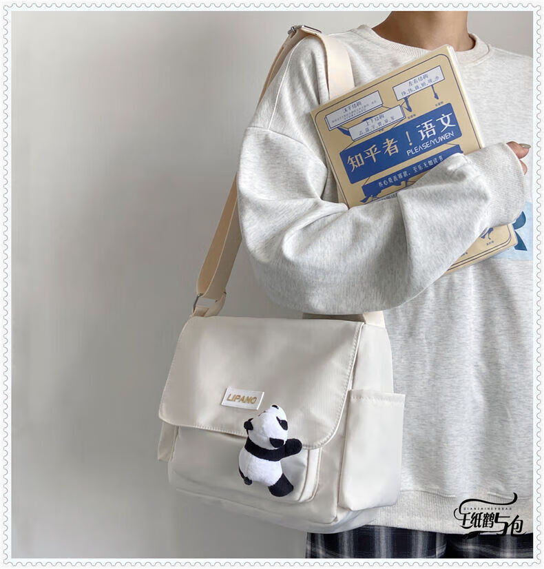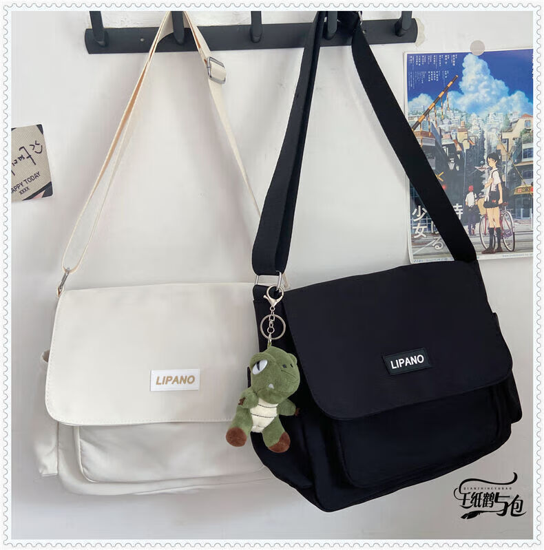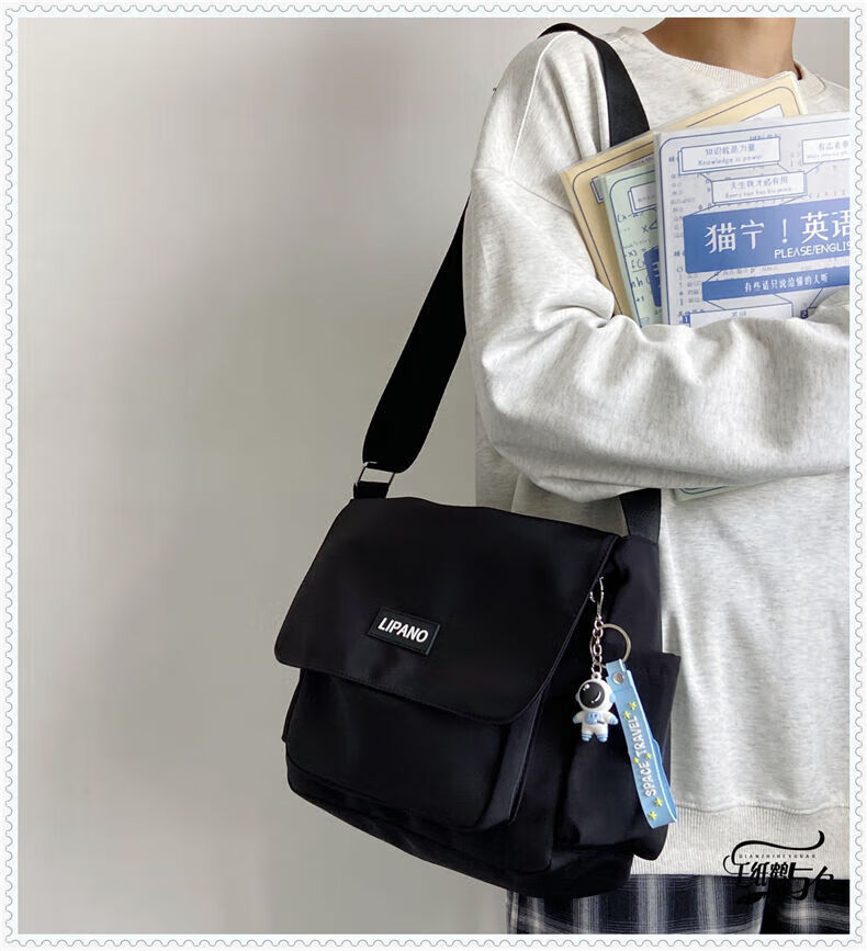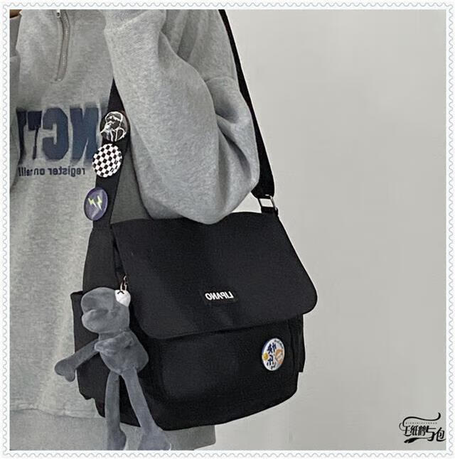 Kaooseen New Backpack Trendy Japanese Simple Versatile Crossbody Bag for Women and Men Korean Student Large Capacity Shoulder Postman 1314 Black Single Bag
