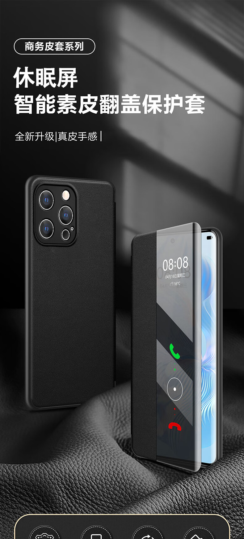 Nagato Aya suitable for Apple 14ProMax mobile phone case clamshell iPhone14Pro smart sleep window 14 business fourteen men 2025 new protective cover smart flip leather case/cowhide pattern/anti-fall and anti-fingerprint black Apple 14ProMax