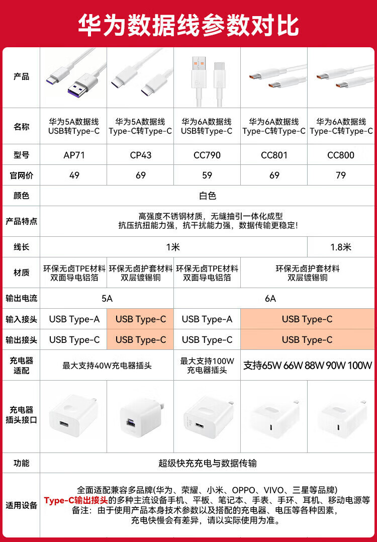 Huawei (HUAWEI) original 6a fast charging type-c data cable p60 50mate60 50 40nova11 10 9pro Honor 90 80 70x40 charger cable 66w flash charging cable original boxed Huawei original 6A data cable