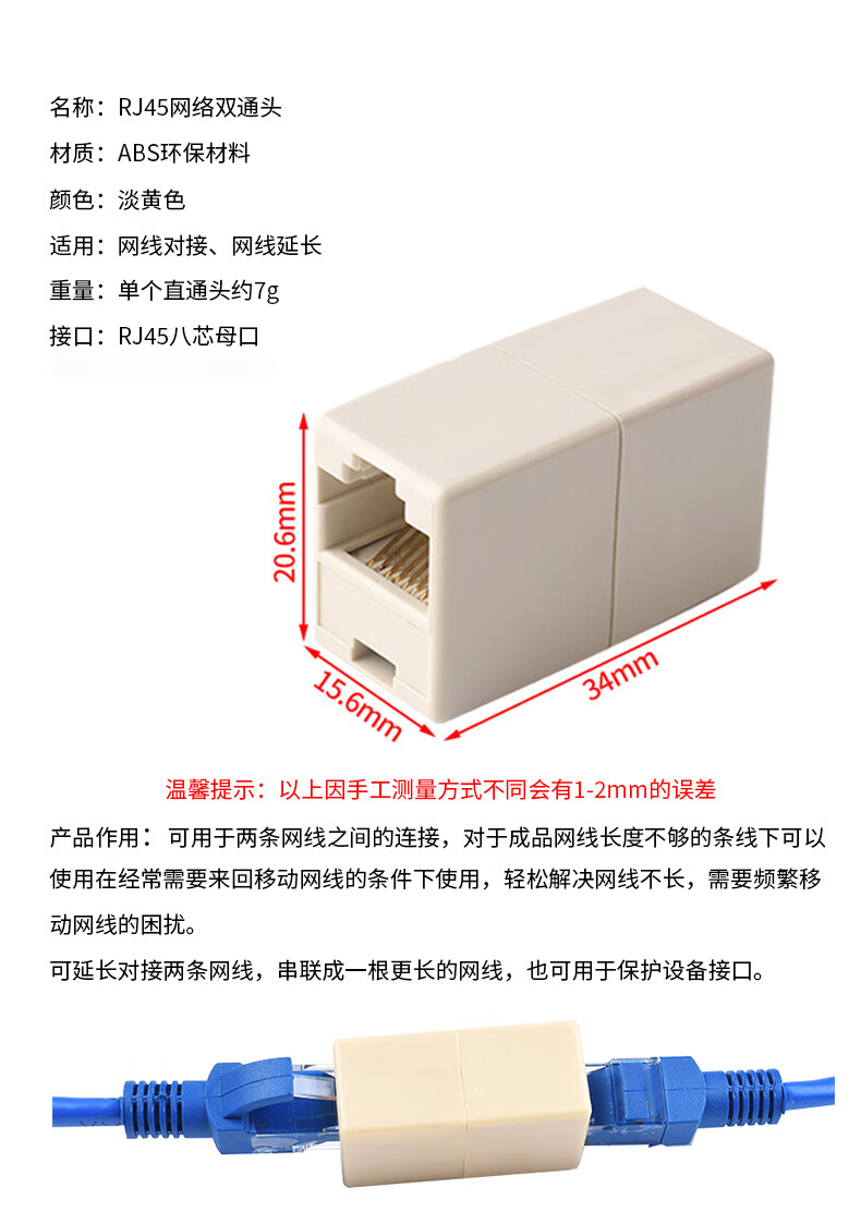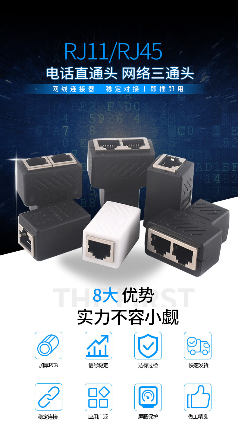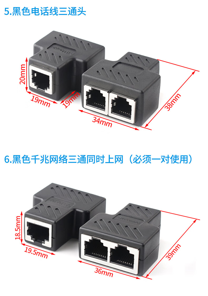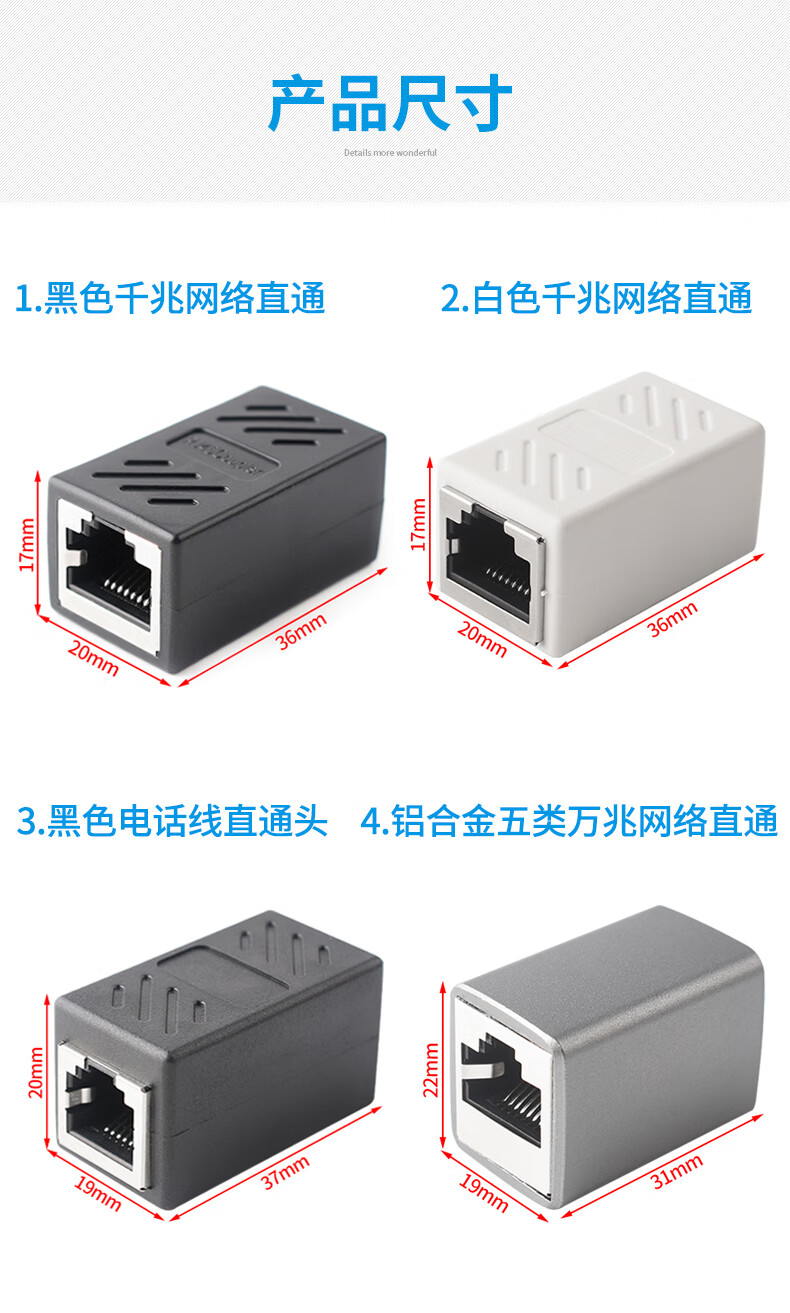 Network cable connector extender adapter RJ45 network Gigabit dual-pass broadband crystal head to interface straight-through head Black with shielded Gigabit network tee No Specifications