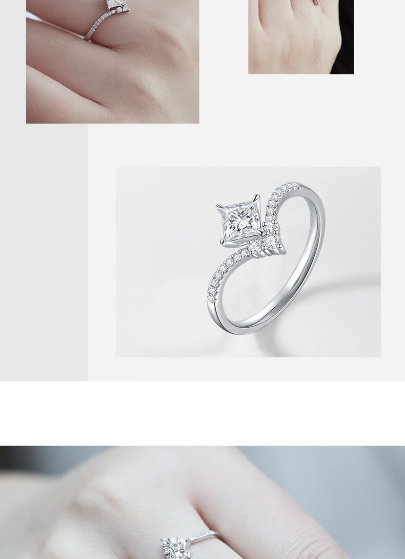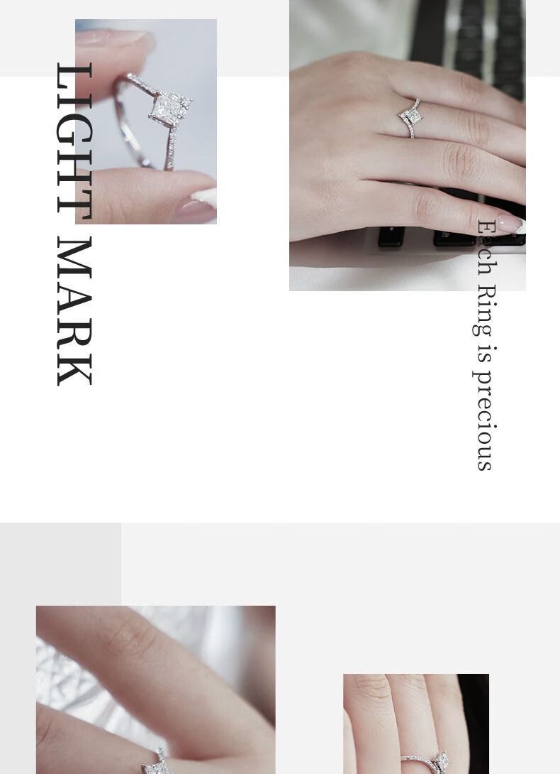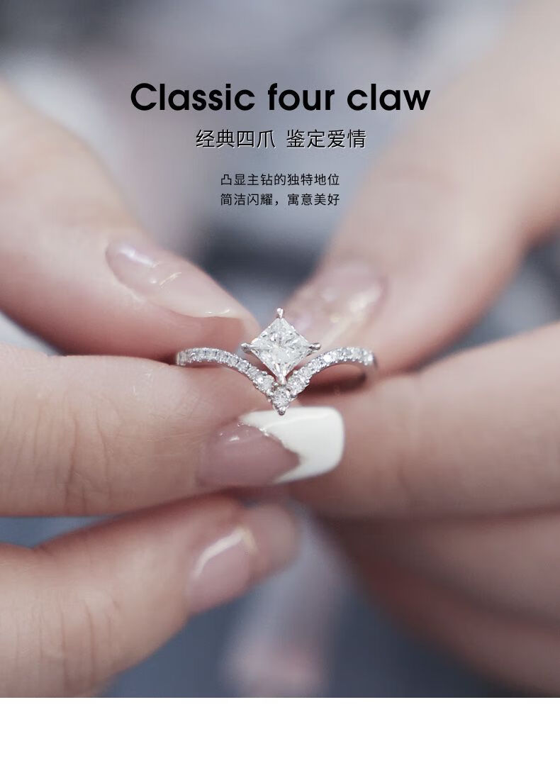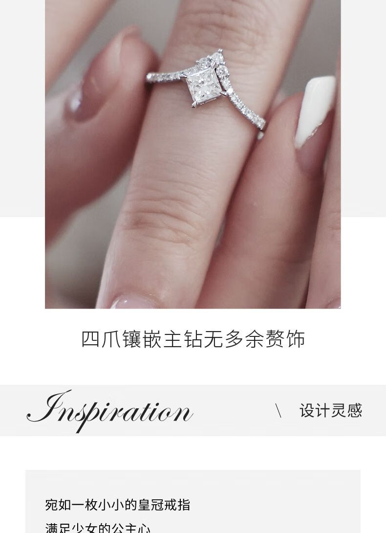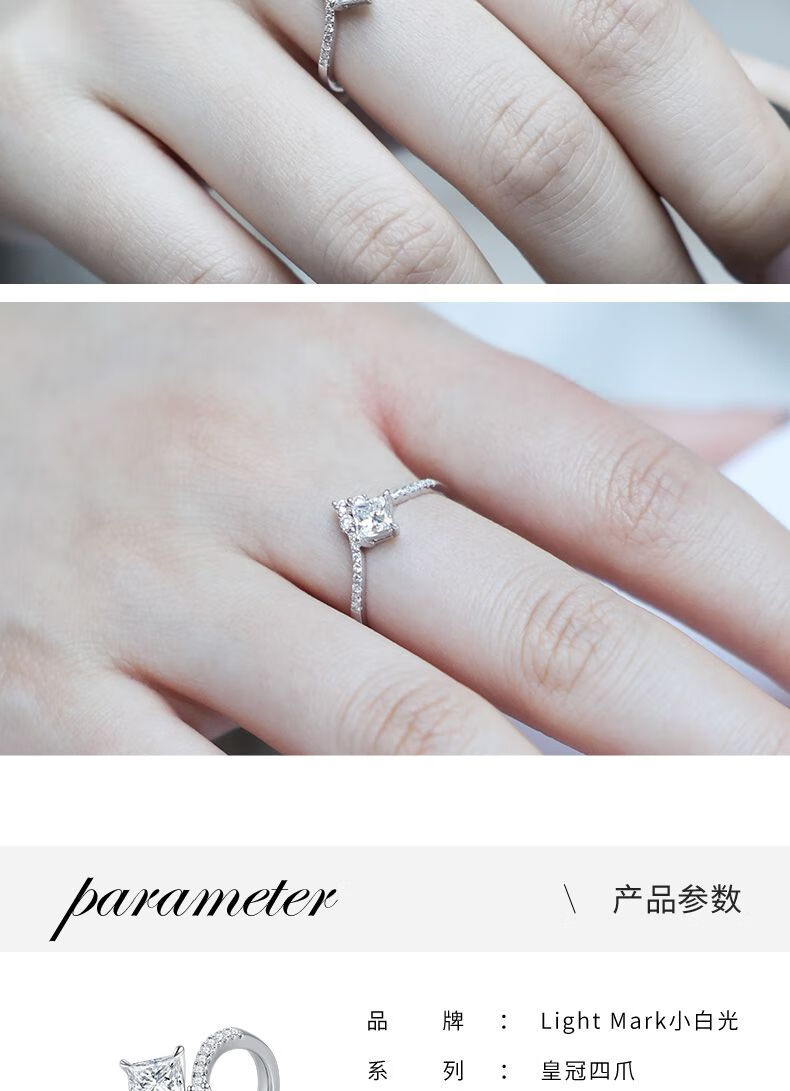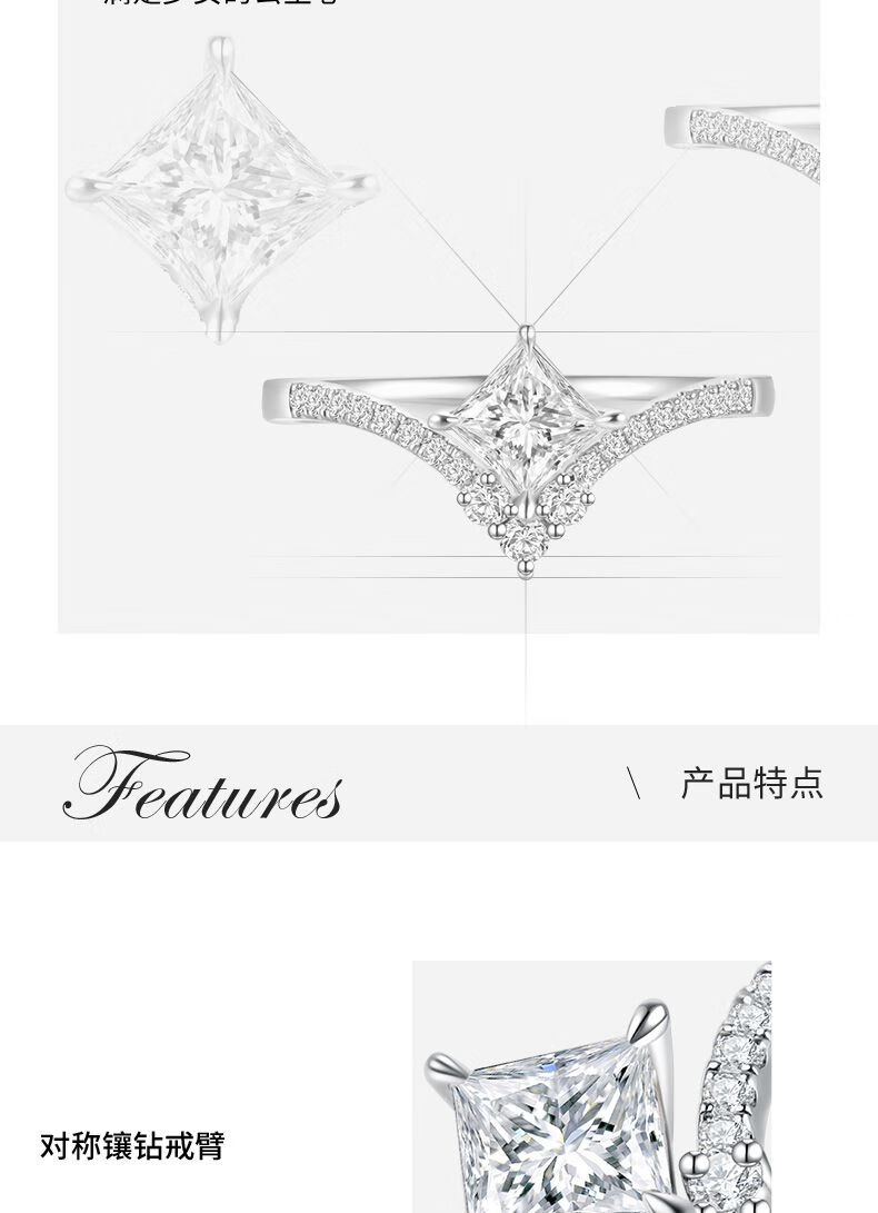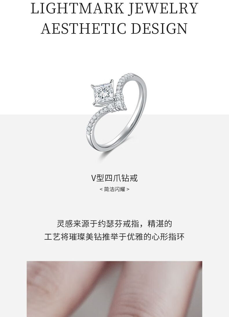 Small white light (light mark) LightMark small white light 18K gold diamond ring V-shaped arm princess diamond F-G color_SI clarity ZJRW001414 main diamond 50 points