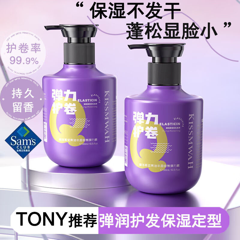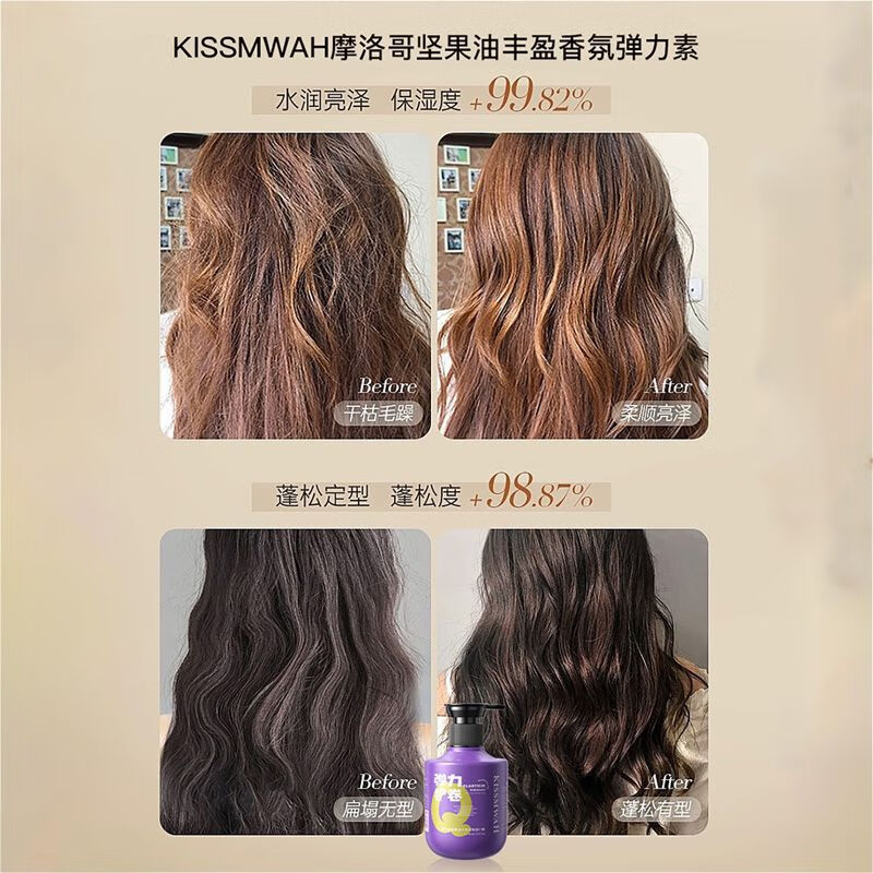 KISSMWAH Moroccan elastin genuine curl-protecting hair care curly hair no-wash styling long-lasting fragrance perm dyeing fluffy repair frizzy hair one shot of three plump fragrance elastin 300ml * 3 bottles perm dyeing repair fluffy hair in one shot