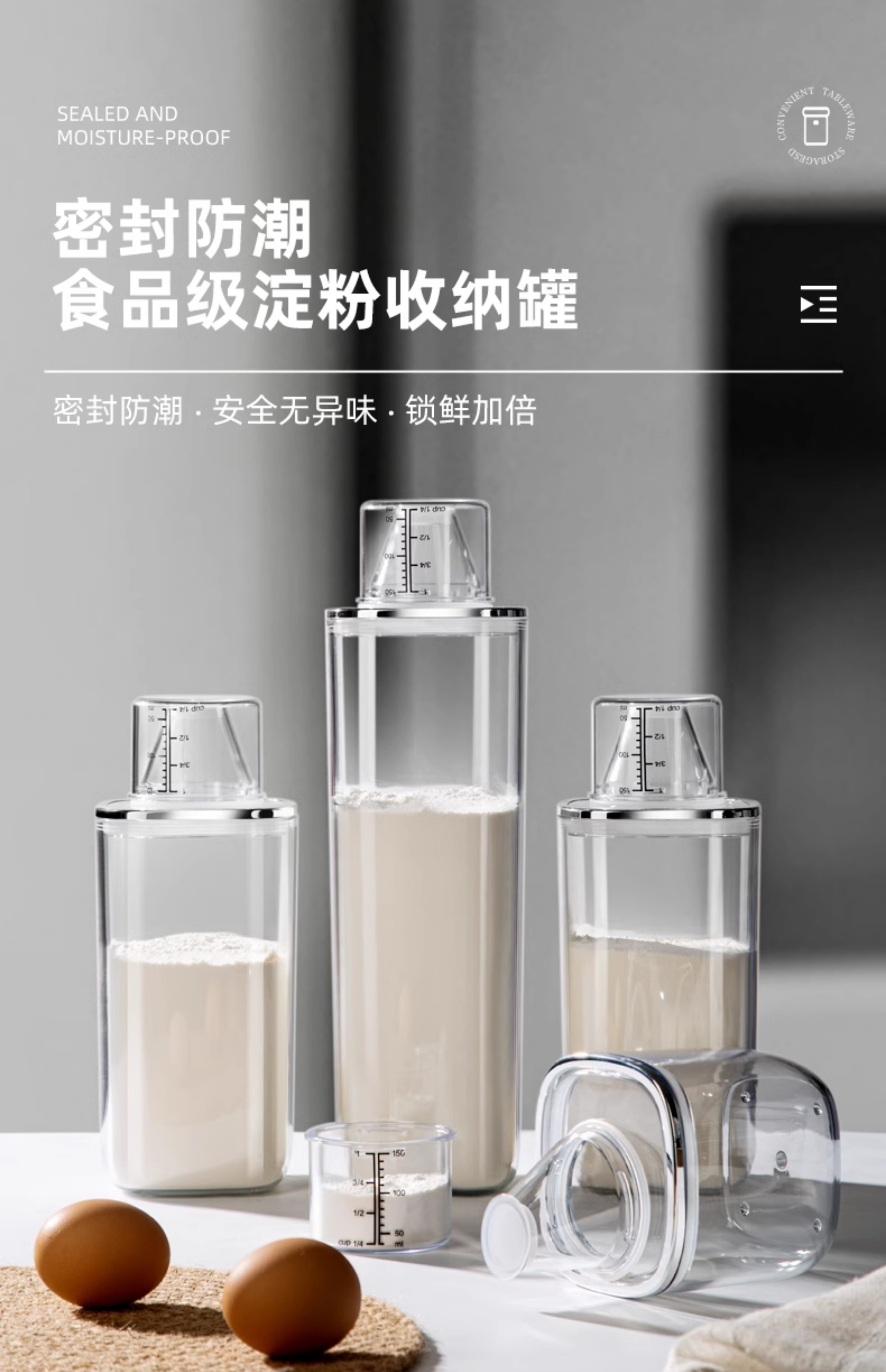 Newair sealed jar food-grade starch storage box cornstarch flour sugar storage storage jar whole grains kitchen packaging 1300ml-1 pack double sealed no Specifications