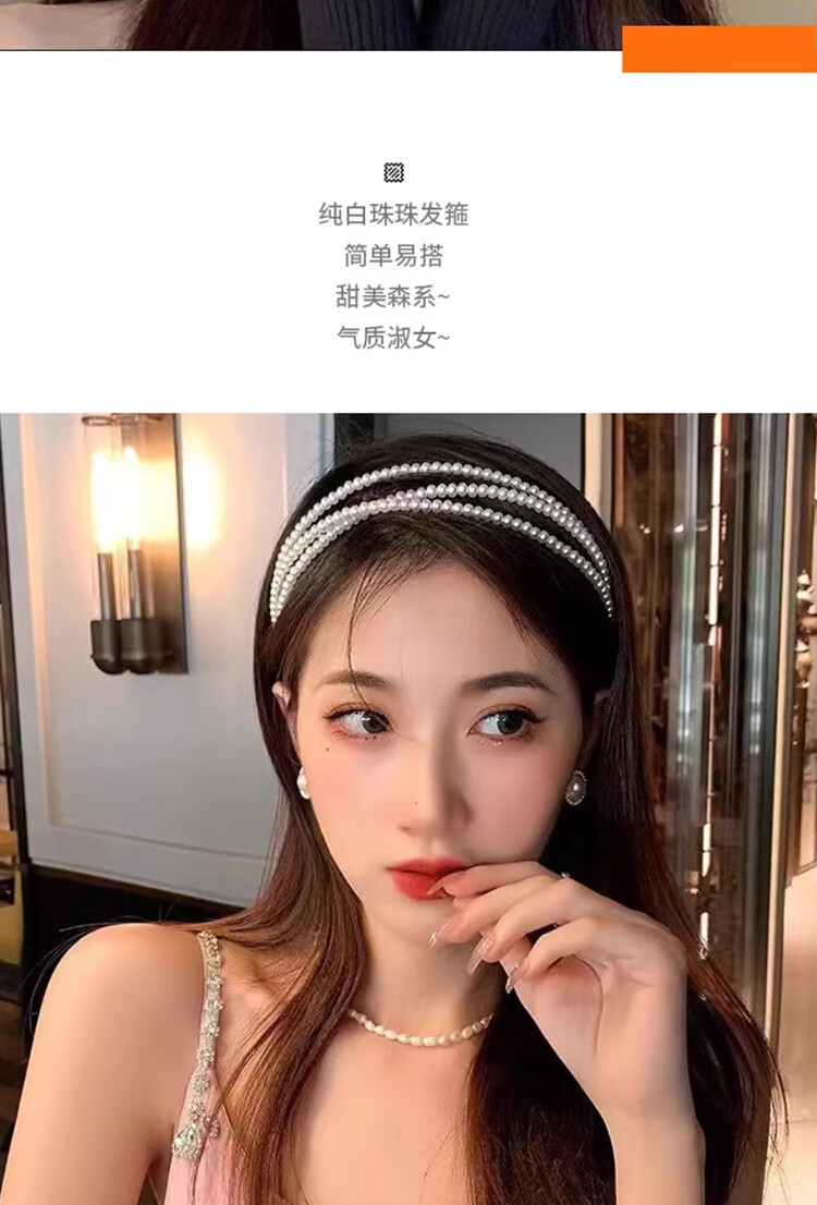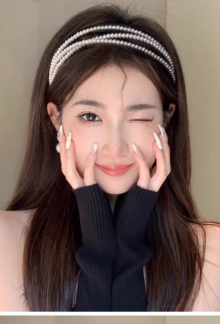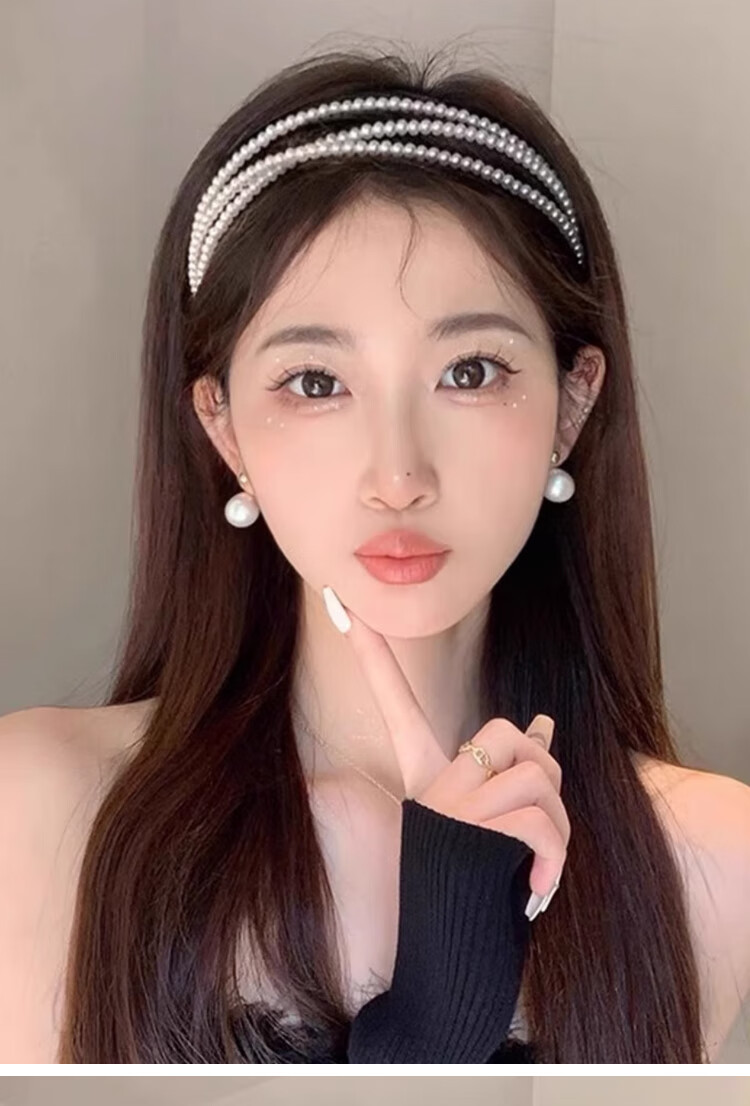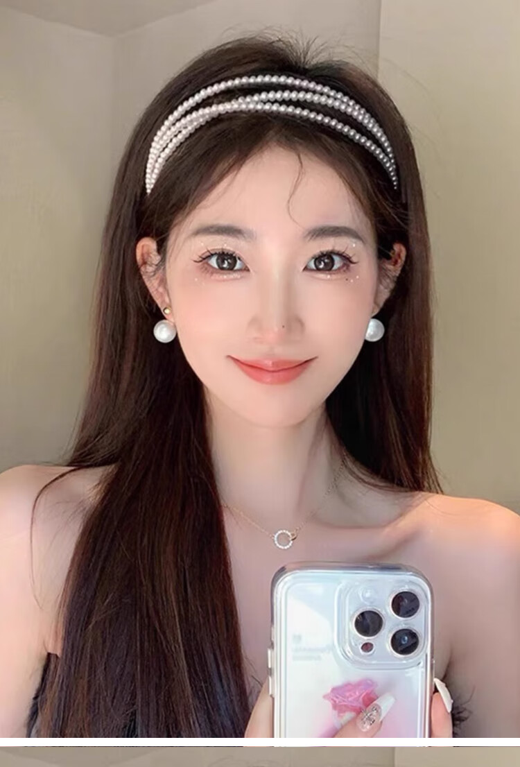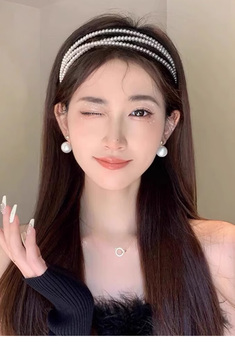 Mansheng Pearl Hairband Female Super Fairy 2026 New Internet Celebrity High-Quality High-Skull Headband for Going Out and Versatile Hairpin Card Headwear Three-layer Beaded Hairband Stars Same Style