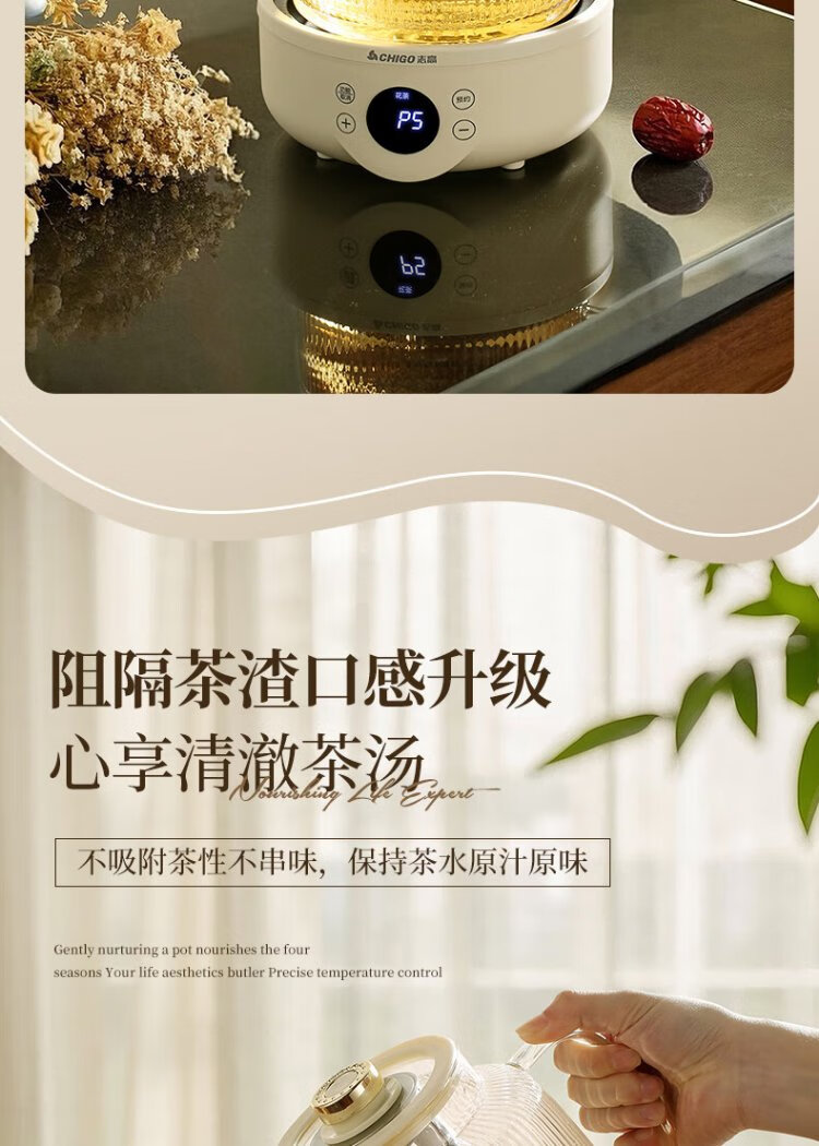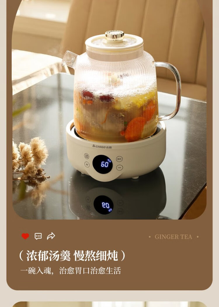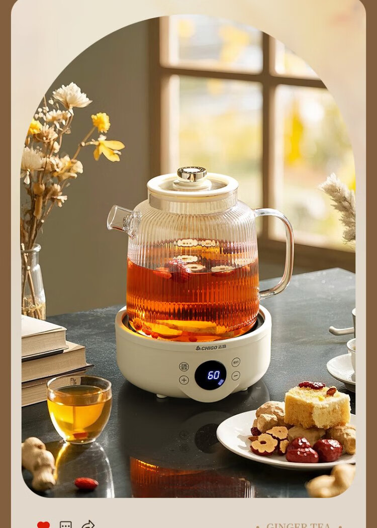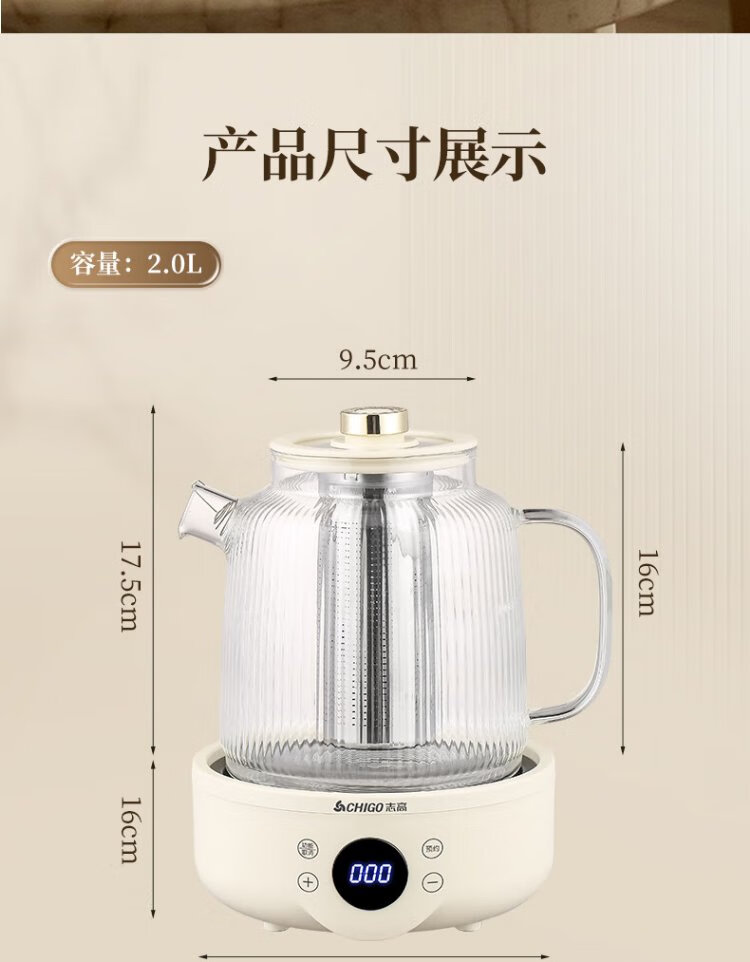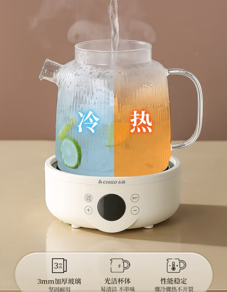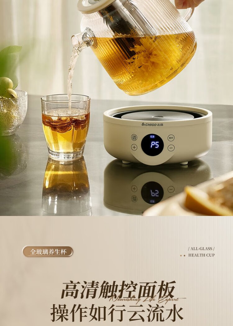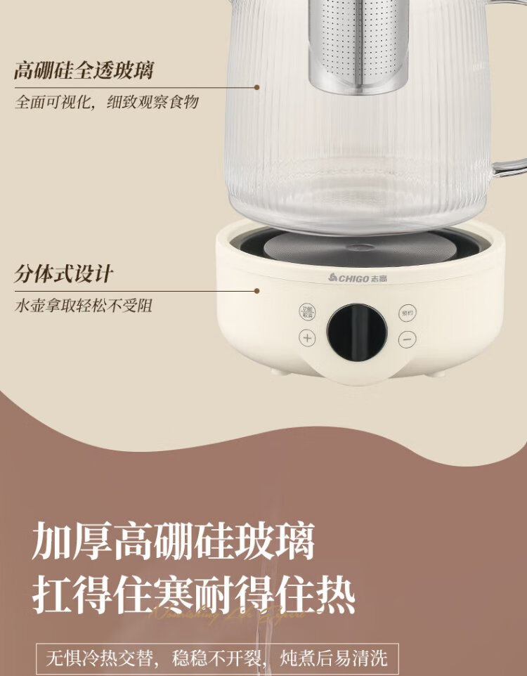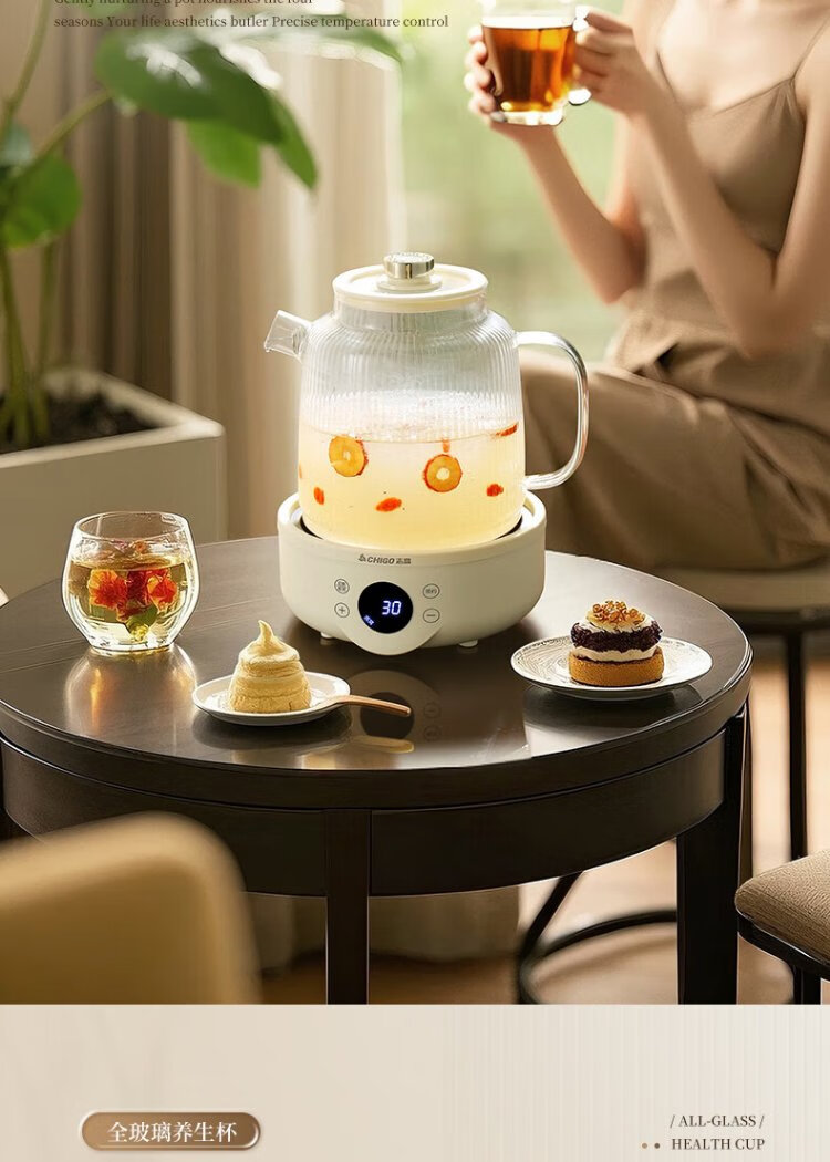 Chigo health pot all-glass health kettle tea boiler stewing all-in-one teapot office small mini flower teapot constant temperature pot home cooking health teapot 2L smart model with tea filter fully automatic multi-function