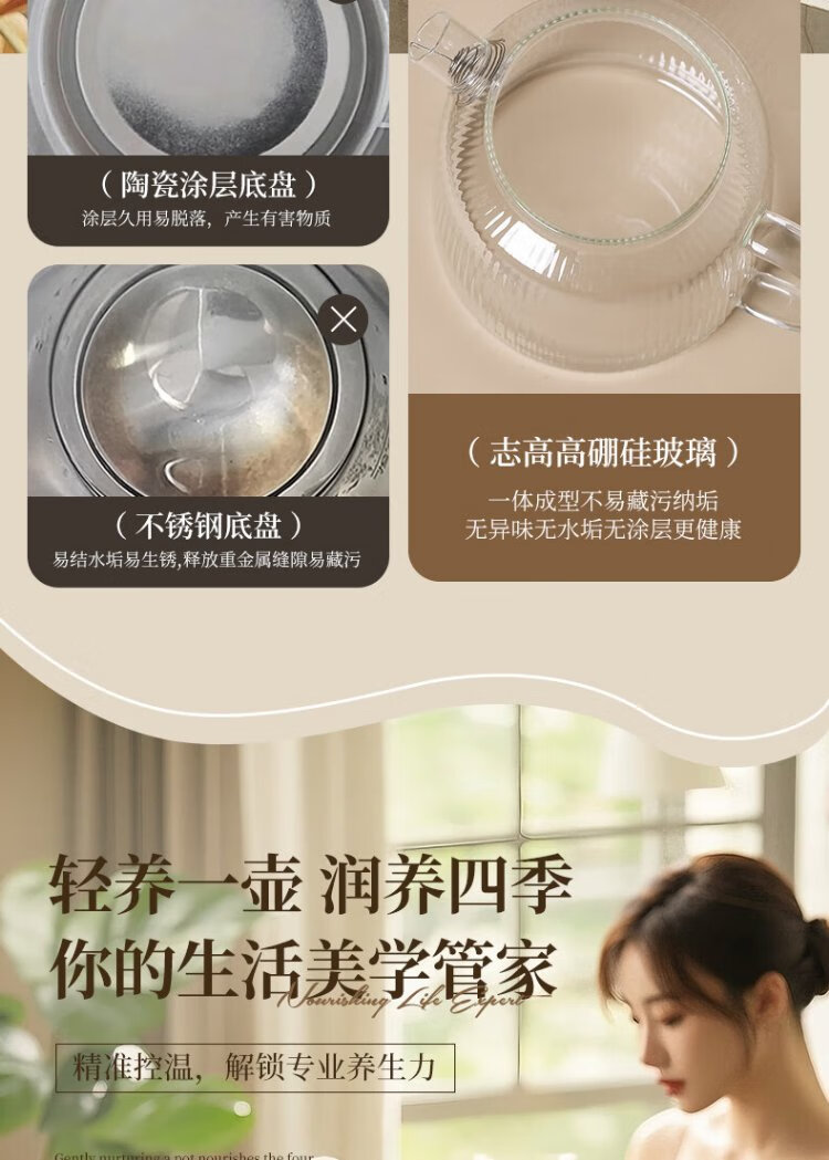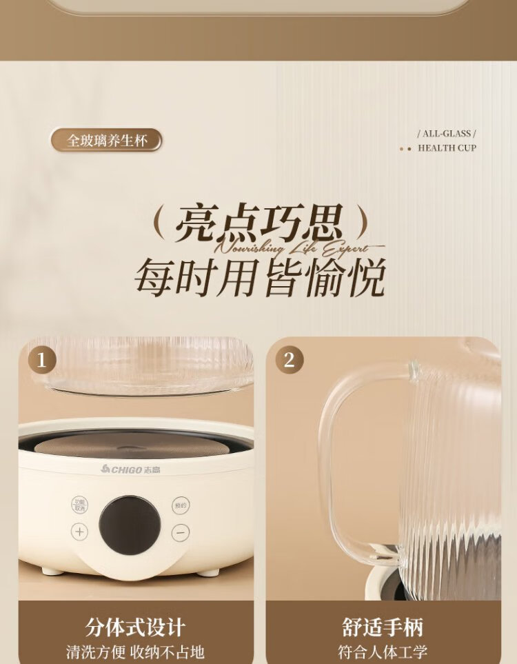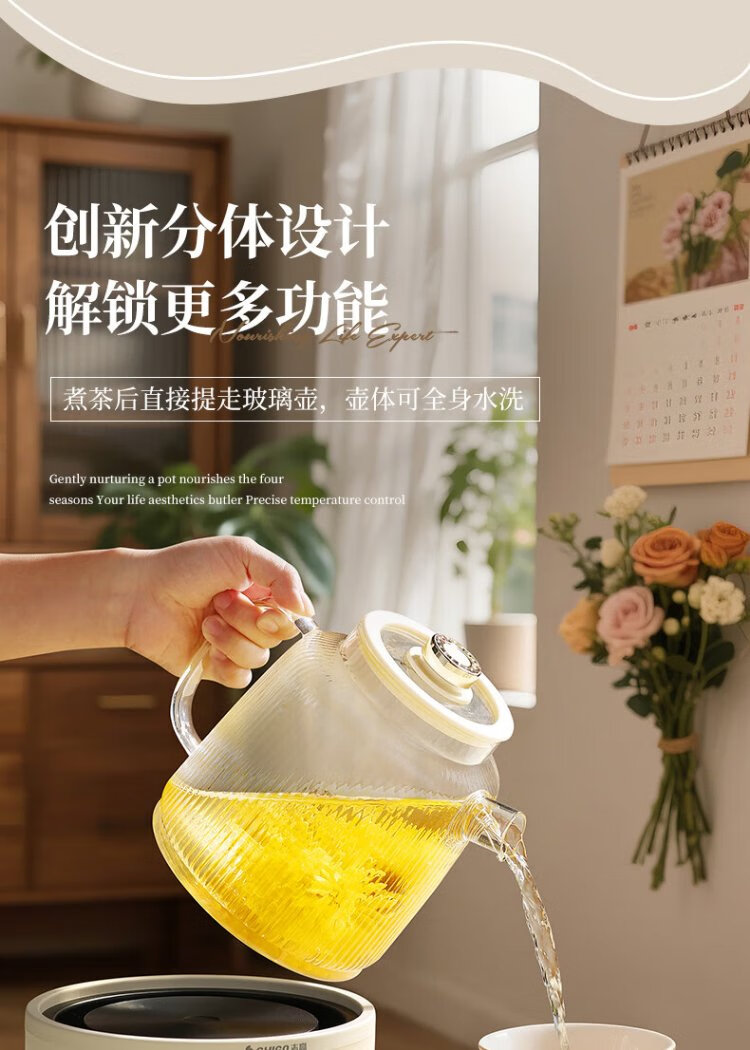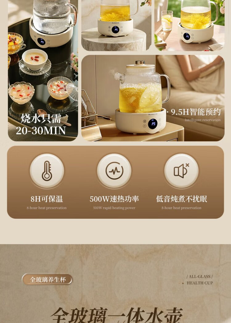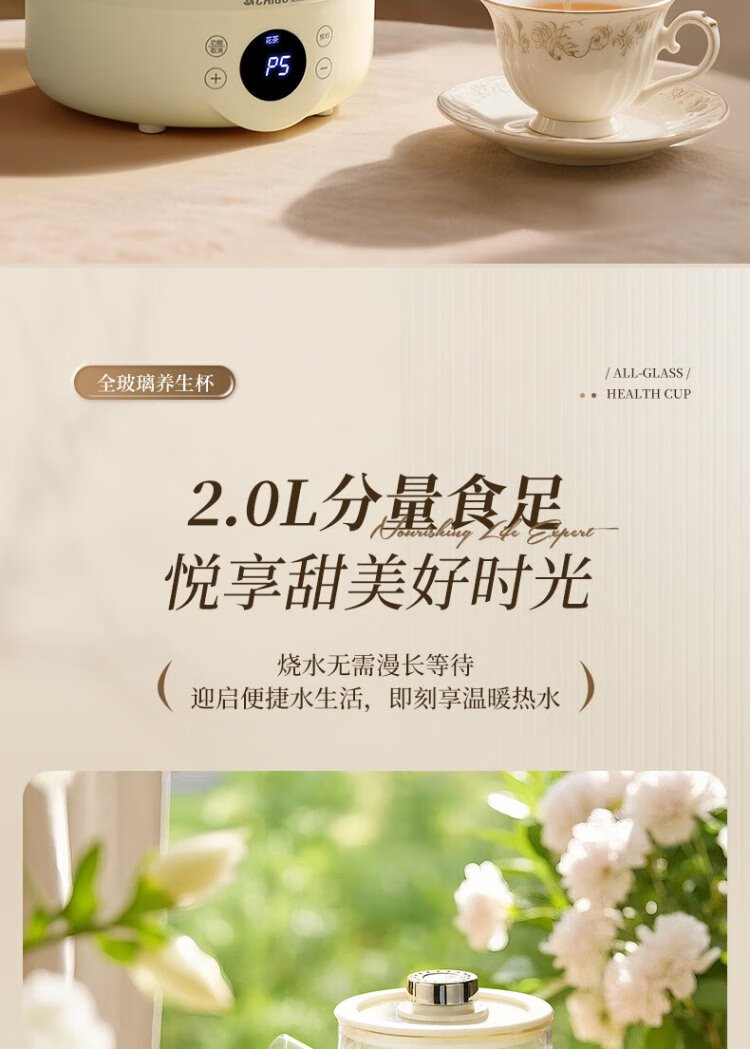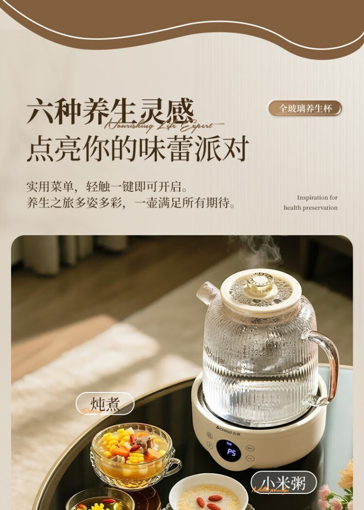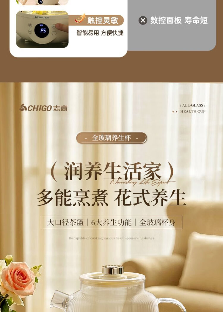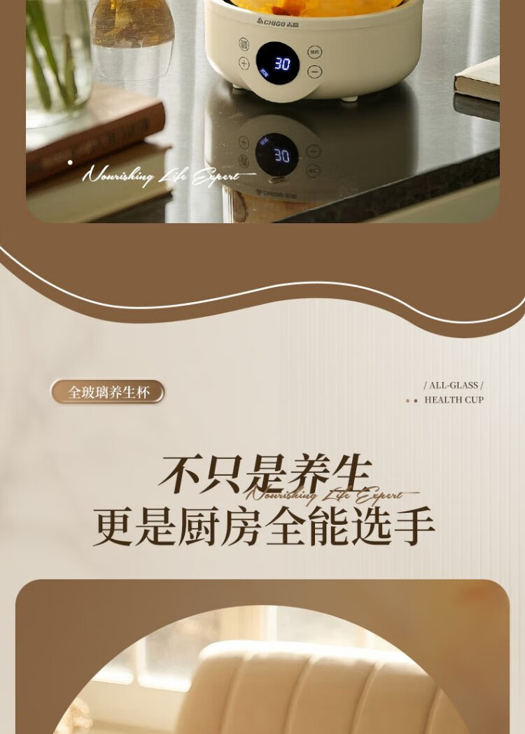 Chigo health pot all-glass health kettle tea boiler stewing all-in-one teapot office small mini flower teapot constant temperature pot home cooking health teapot 2L smart model with tea filter fully automatic multi-function