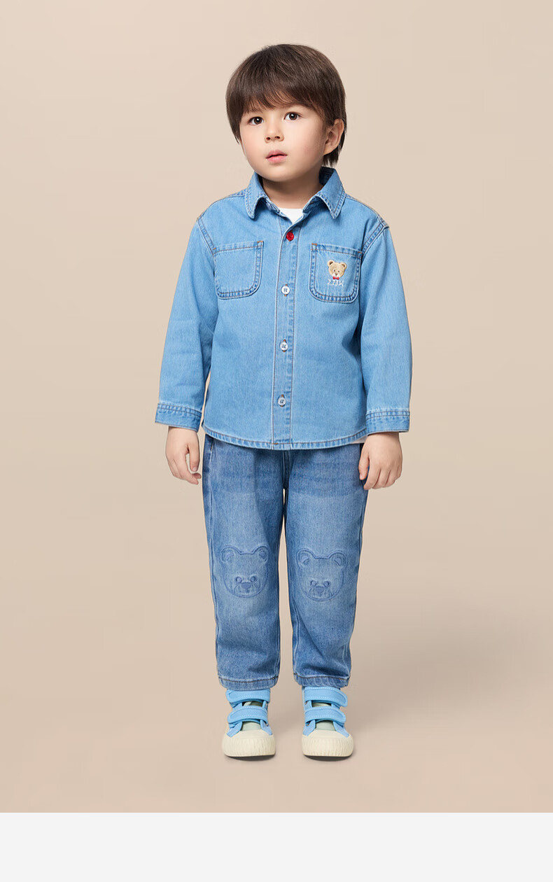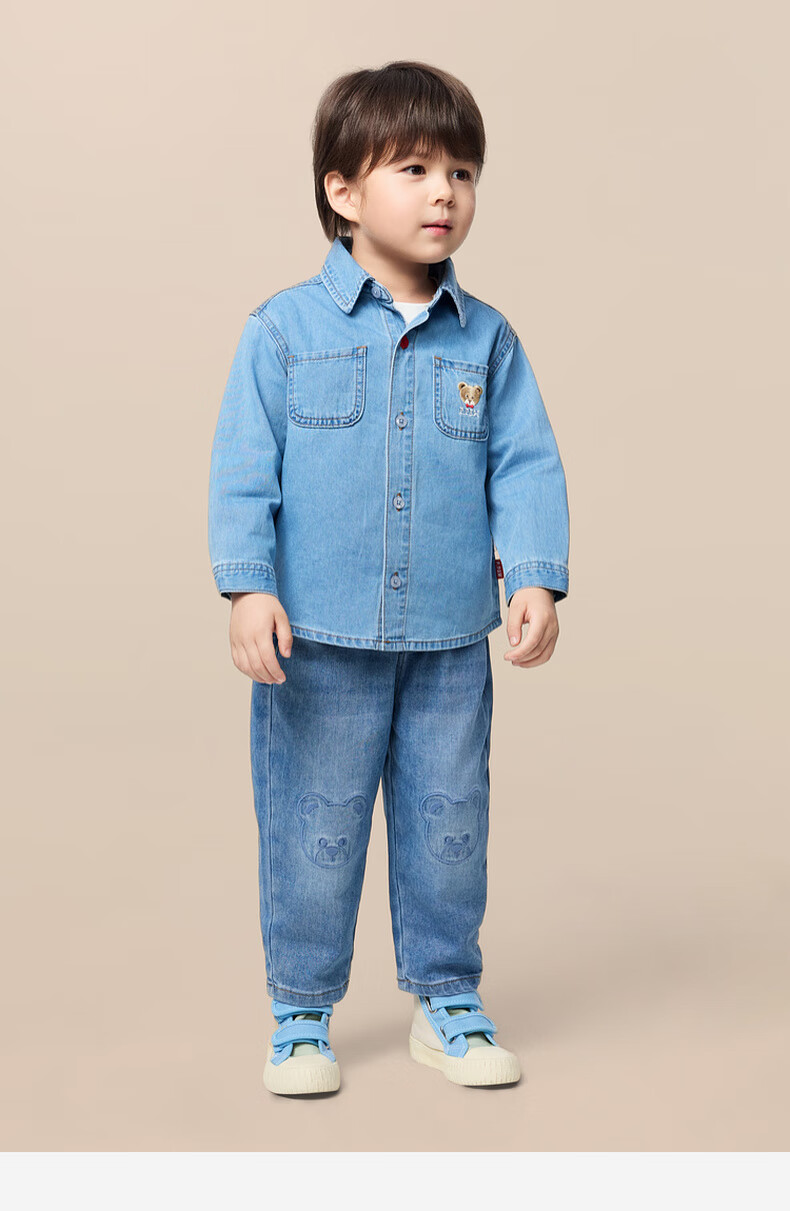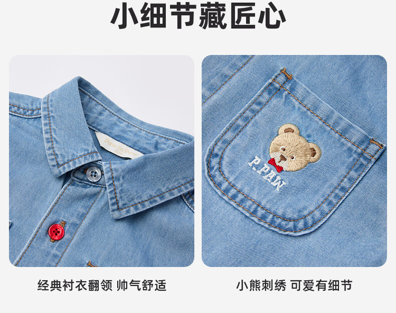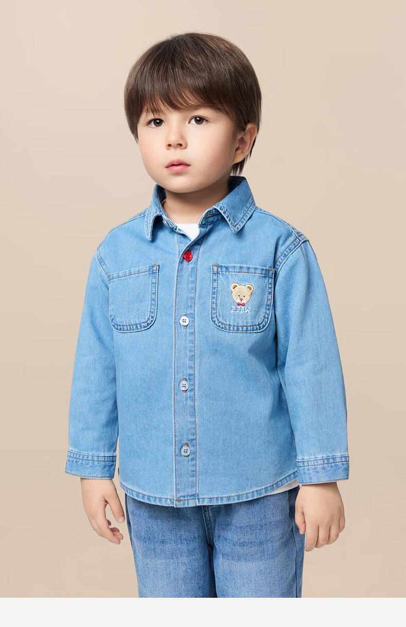 PawinPaw Cartoon Bear Children's Clothing 25th Autumn New Boy Denim Shirt Indigo Denim Blue/55 90